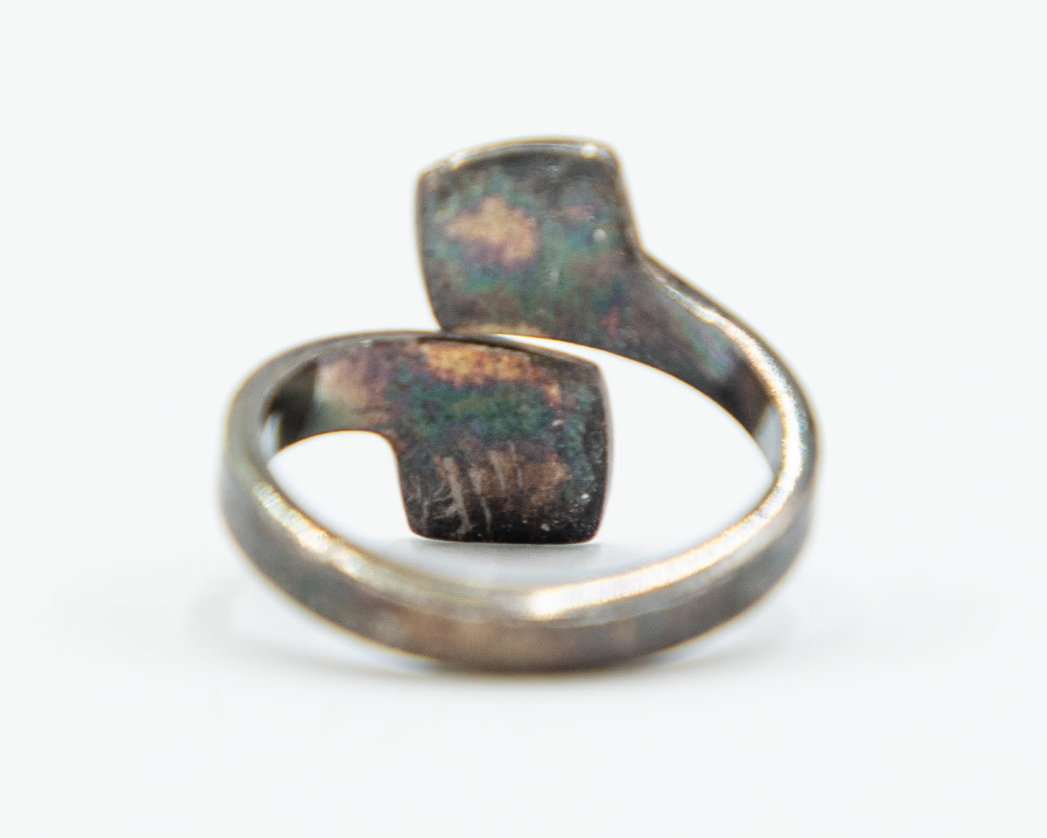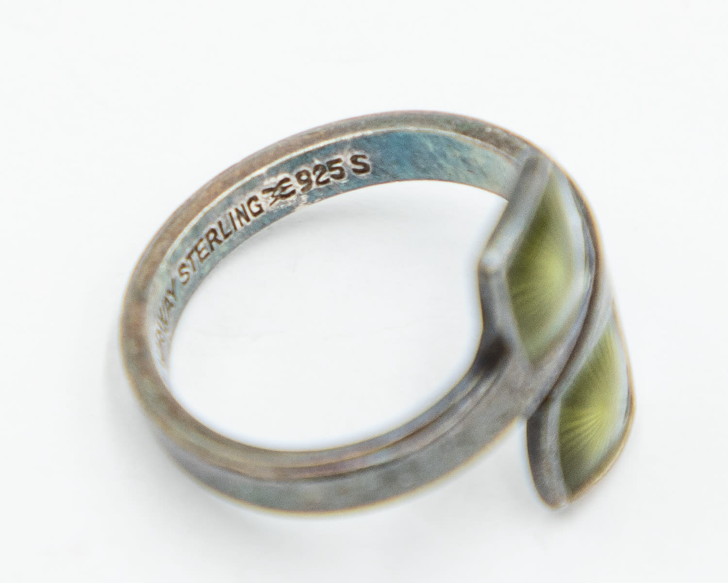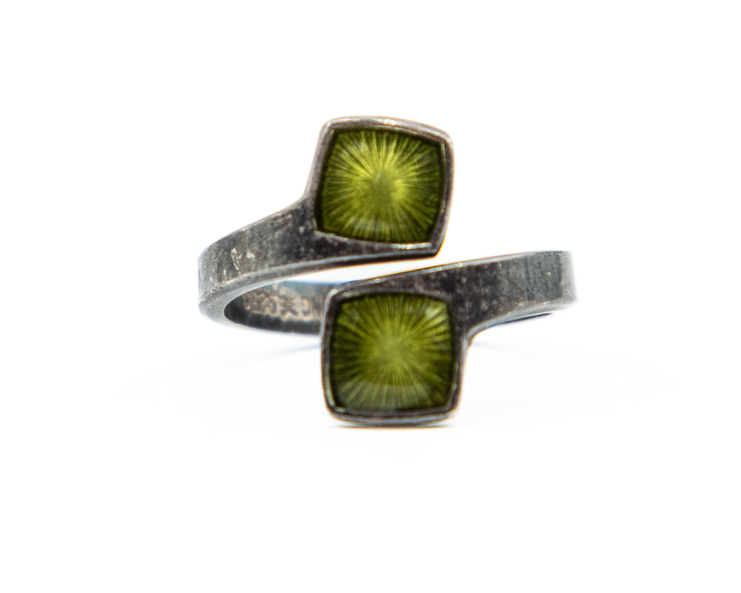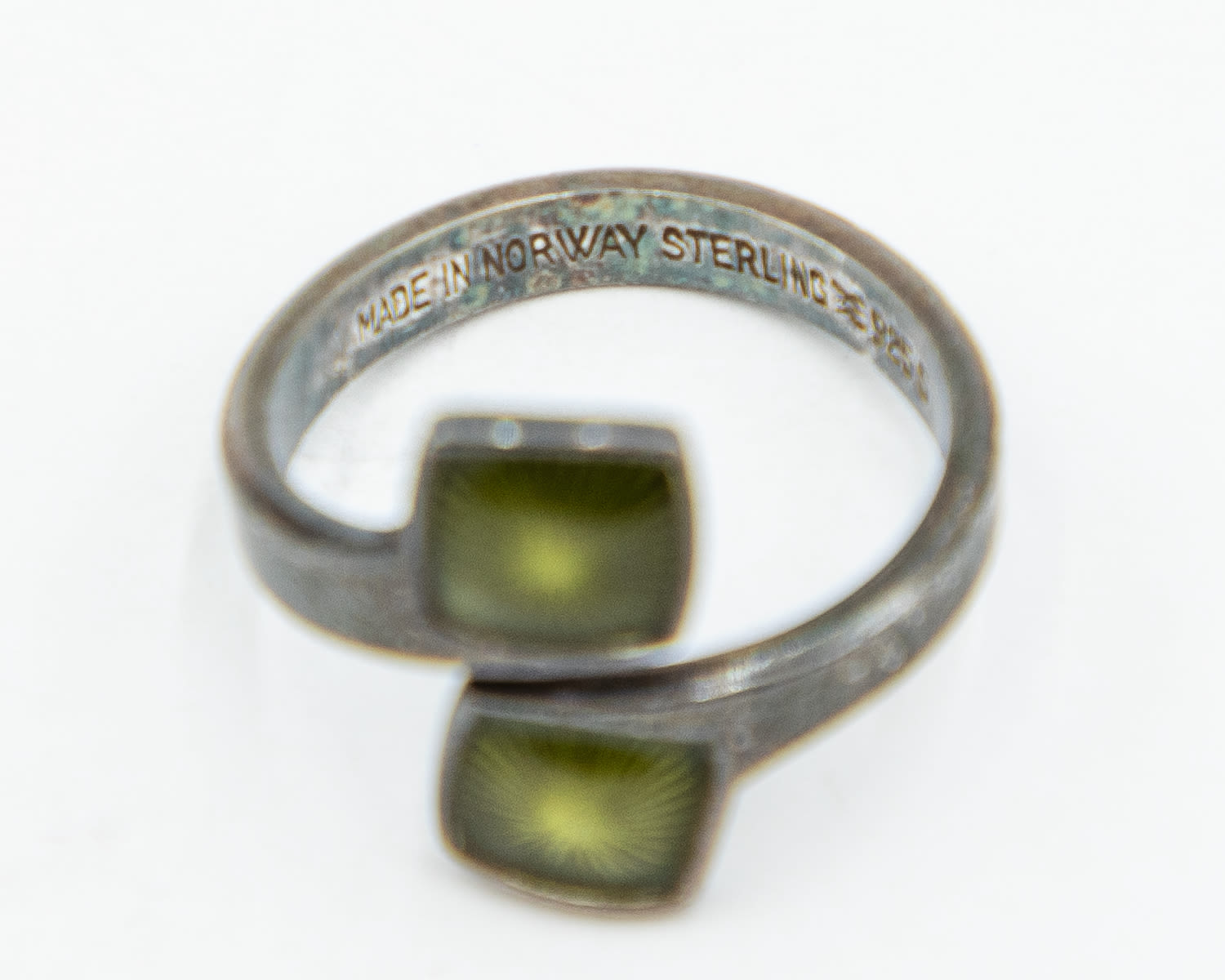 Aksel Holmsen Sterling Green Enamel Ring Sz 6.75, 4g
