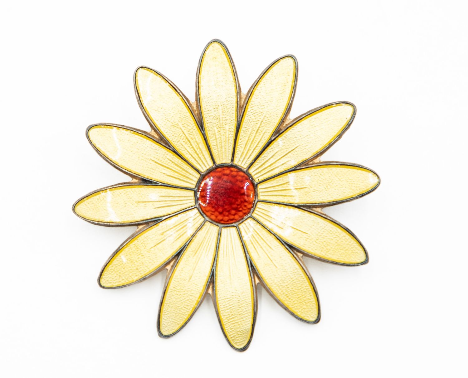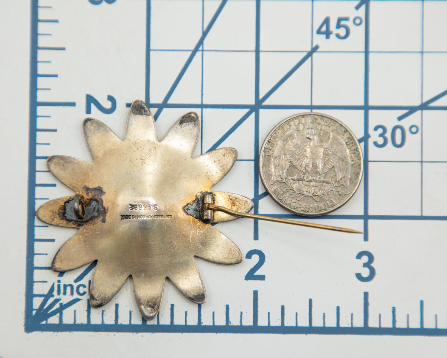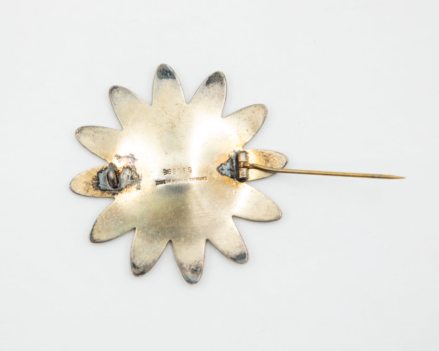 Aksel Holmsen Sterling Enamel Daisy Flower Brooch Norway 20g
