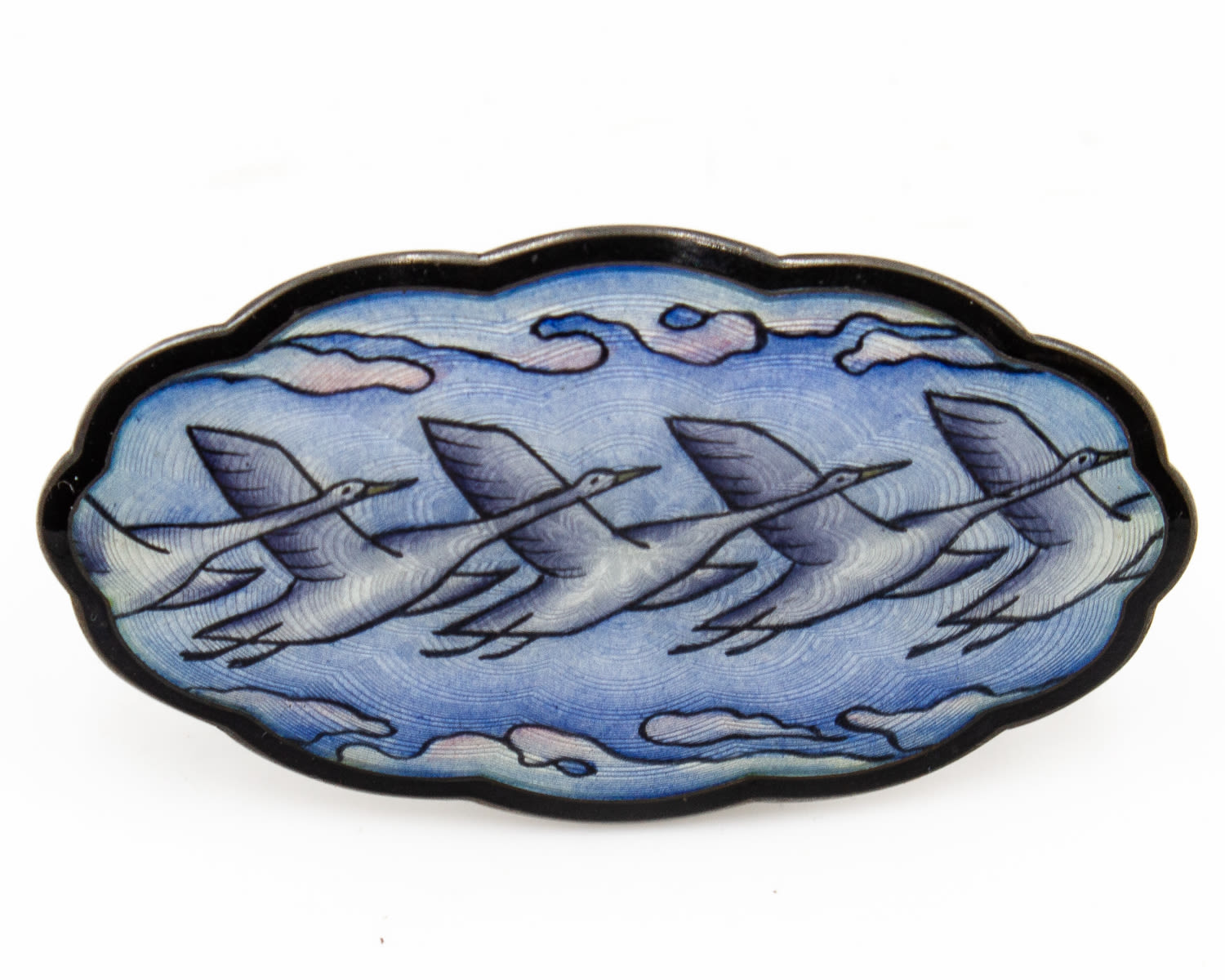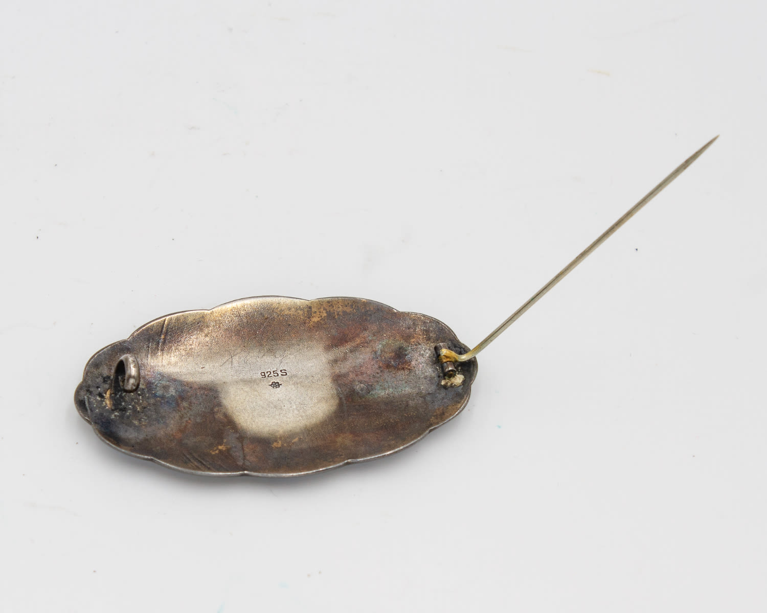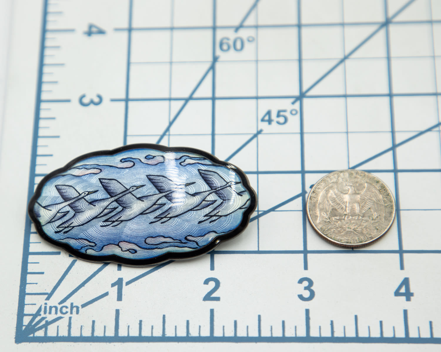 Scandinavian Enamel Sterling Goose Brooch 21g, pictogram signature