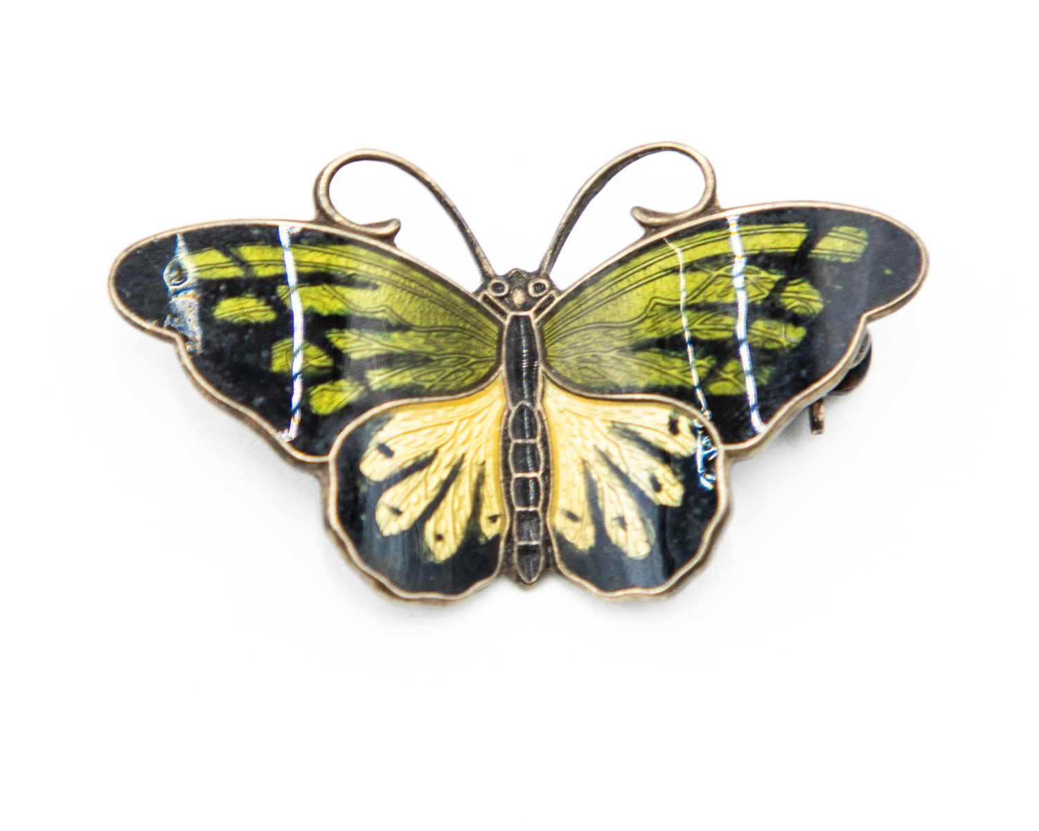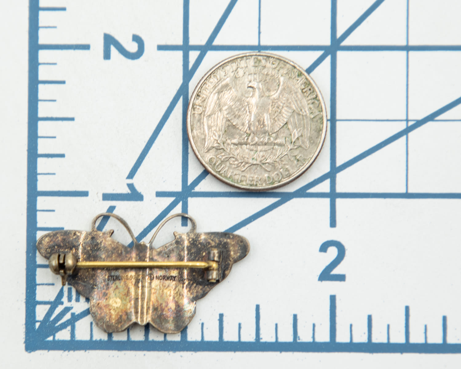 Hroar Prydz Norway Sterling Enamel Butterfly Brooch (Larger Green Black)