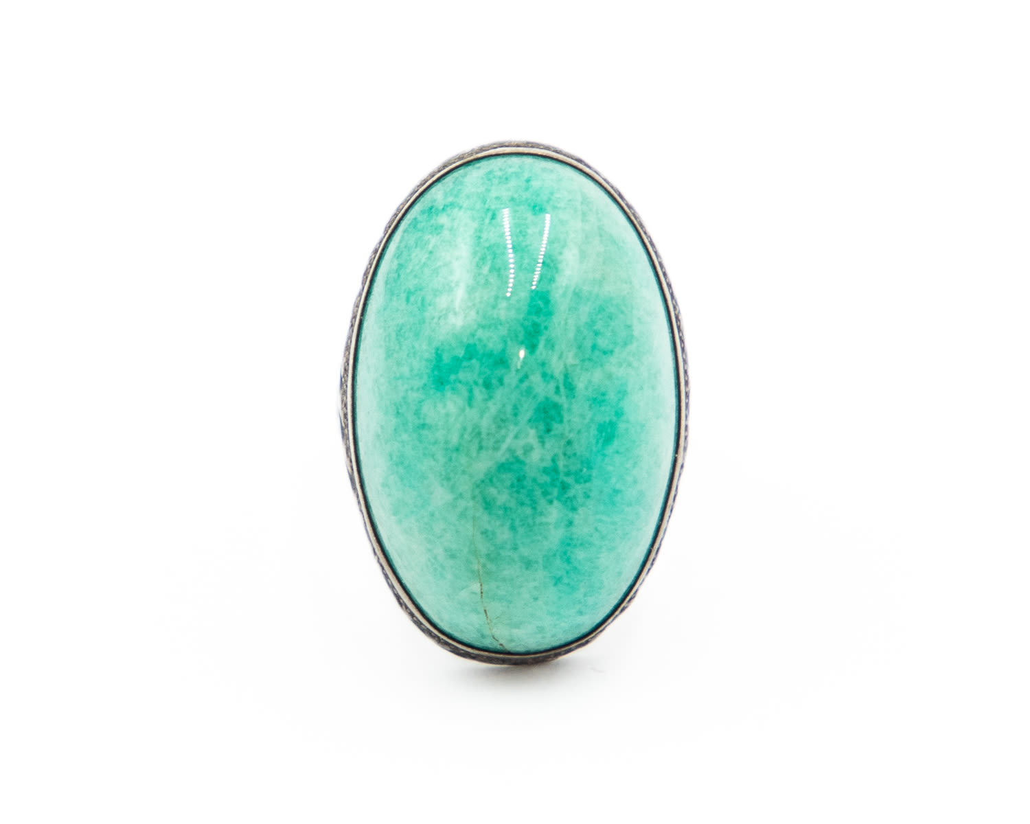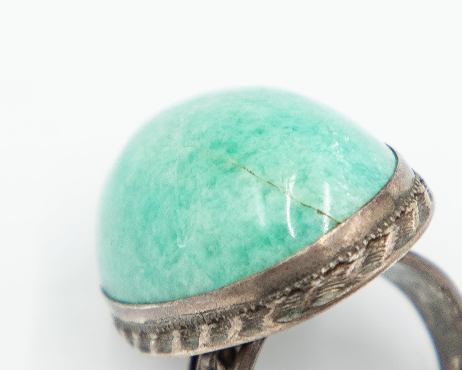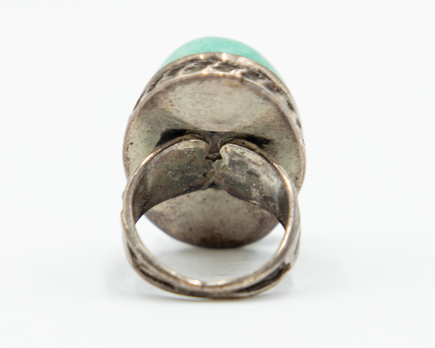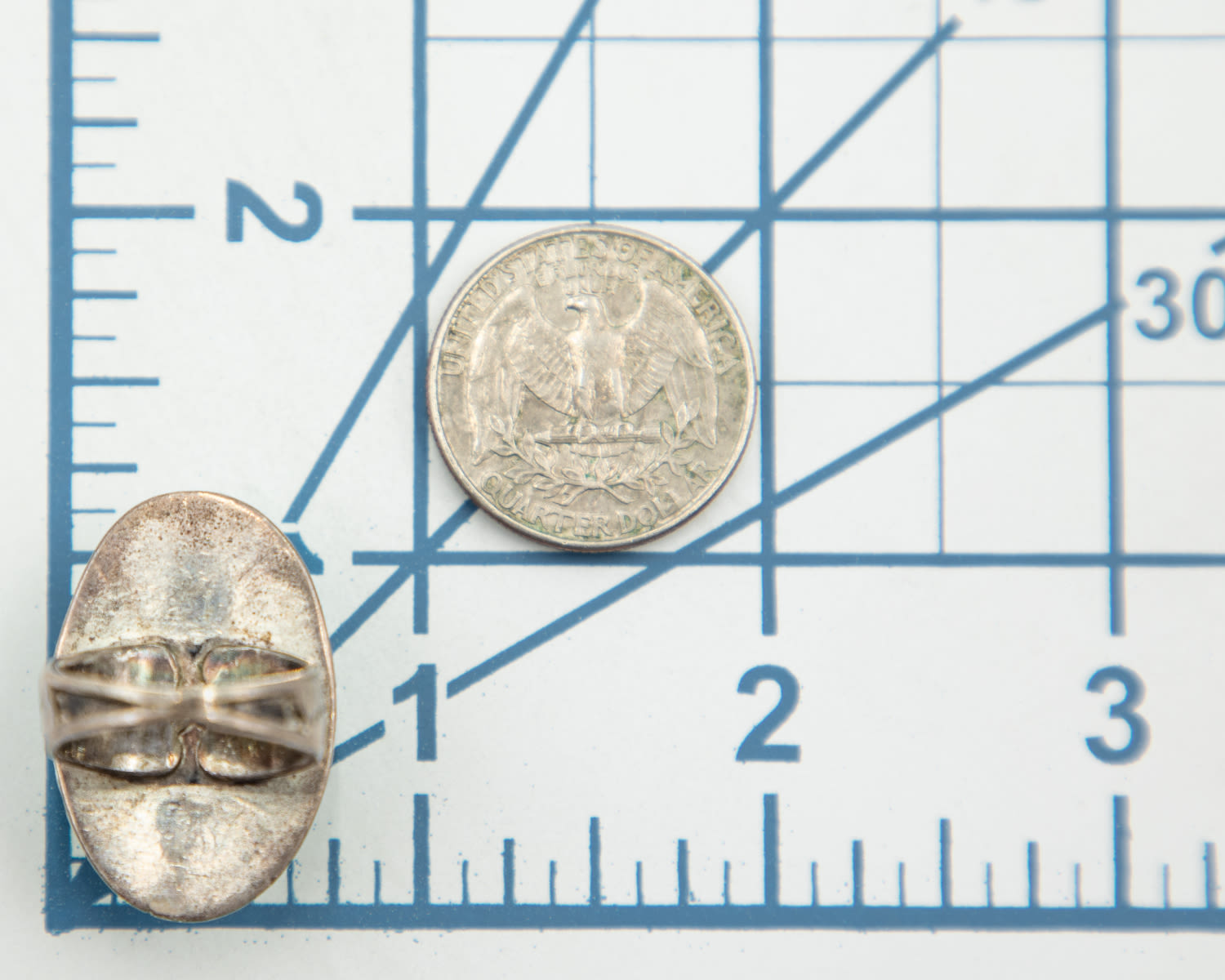 Sterling Aventurine Vintage Large Cabochon Ring Sz 6, 15g, Small Crack, Vintage Floral Band