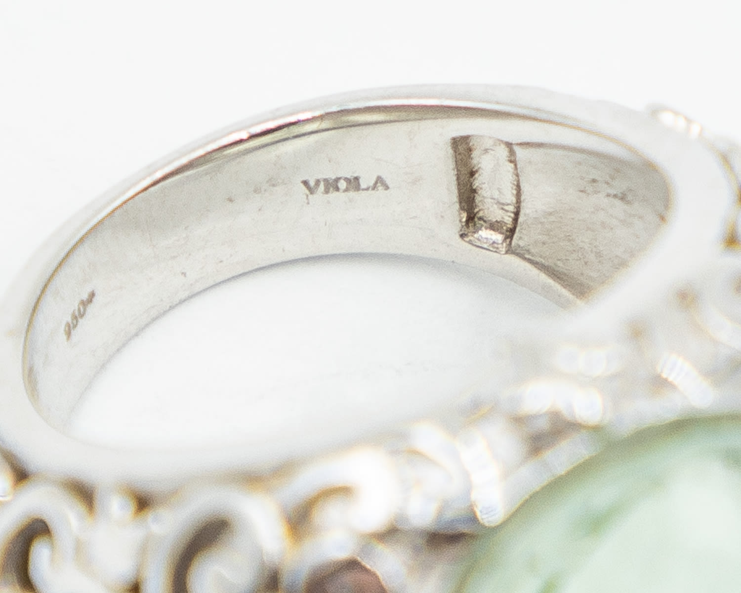 Viola Cushion Cut Stone 950 Cocktail Ring Sz. 6.5, 15.7g, As is, chip in stone