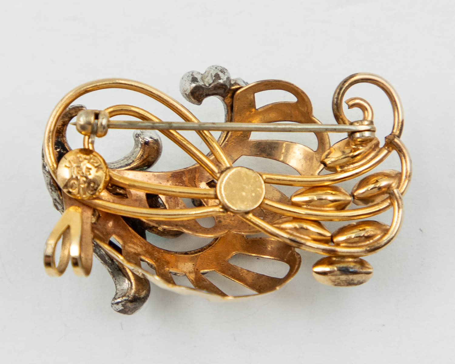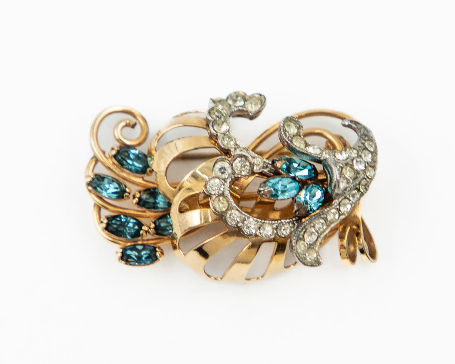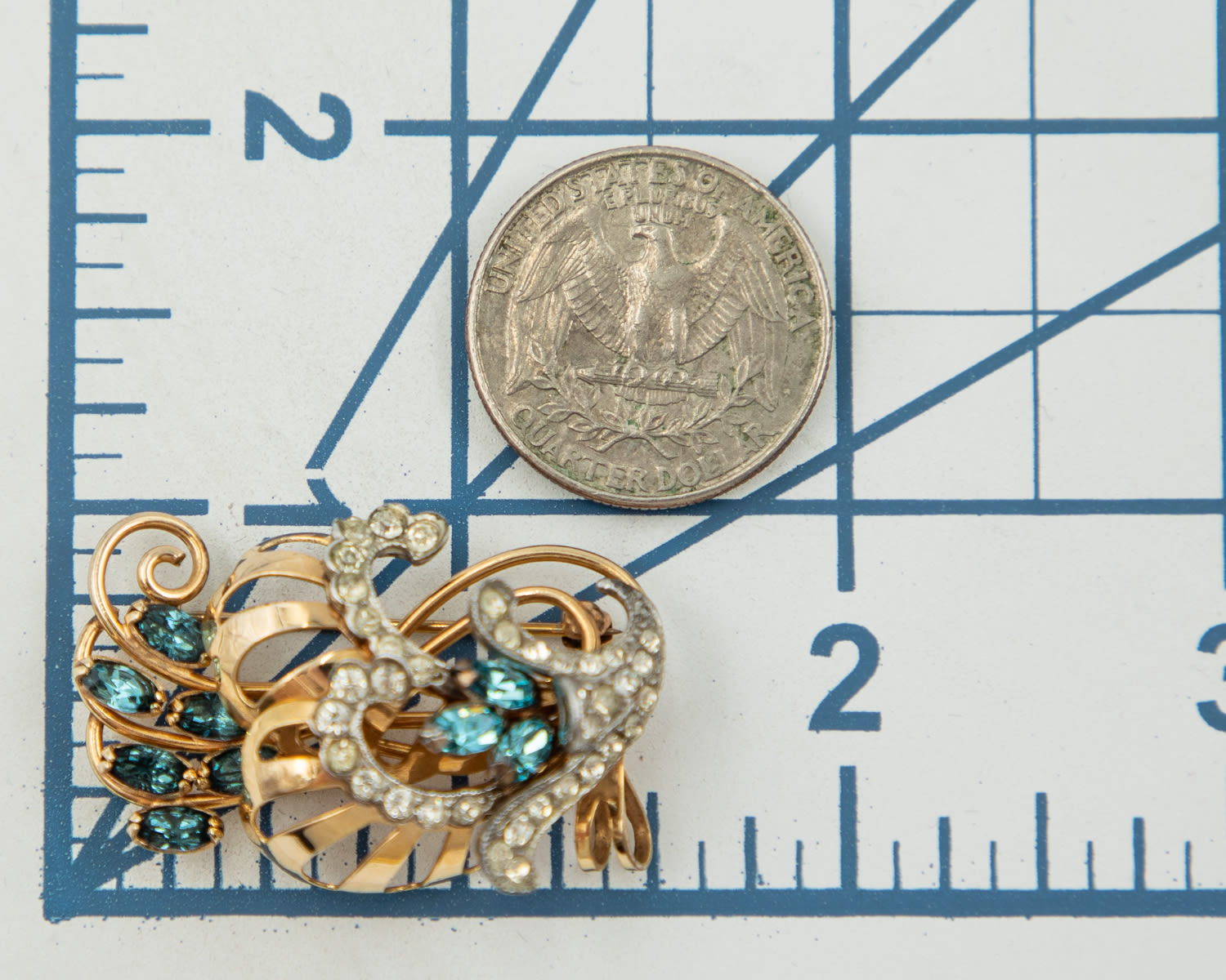 Charles Reis Vintage 12k Gold Filled Brooch Pin W/ Clear and Blue Rhinestones 9.2g