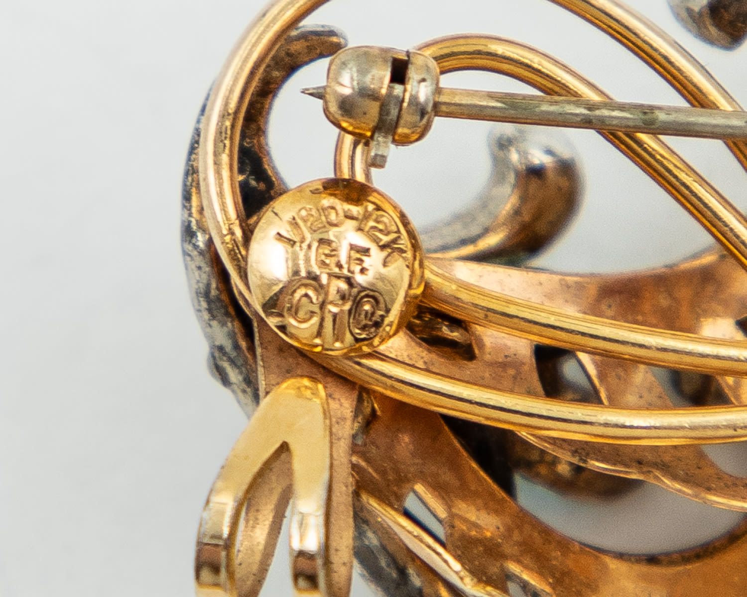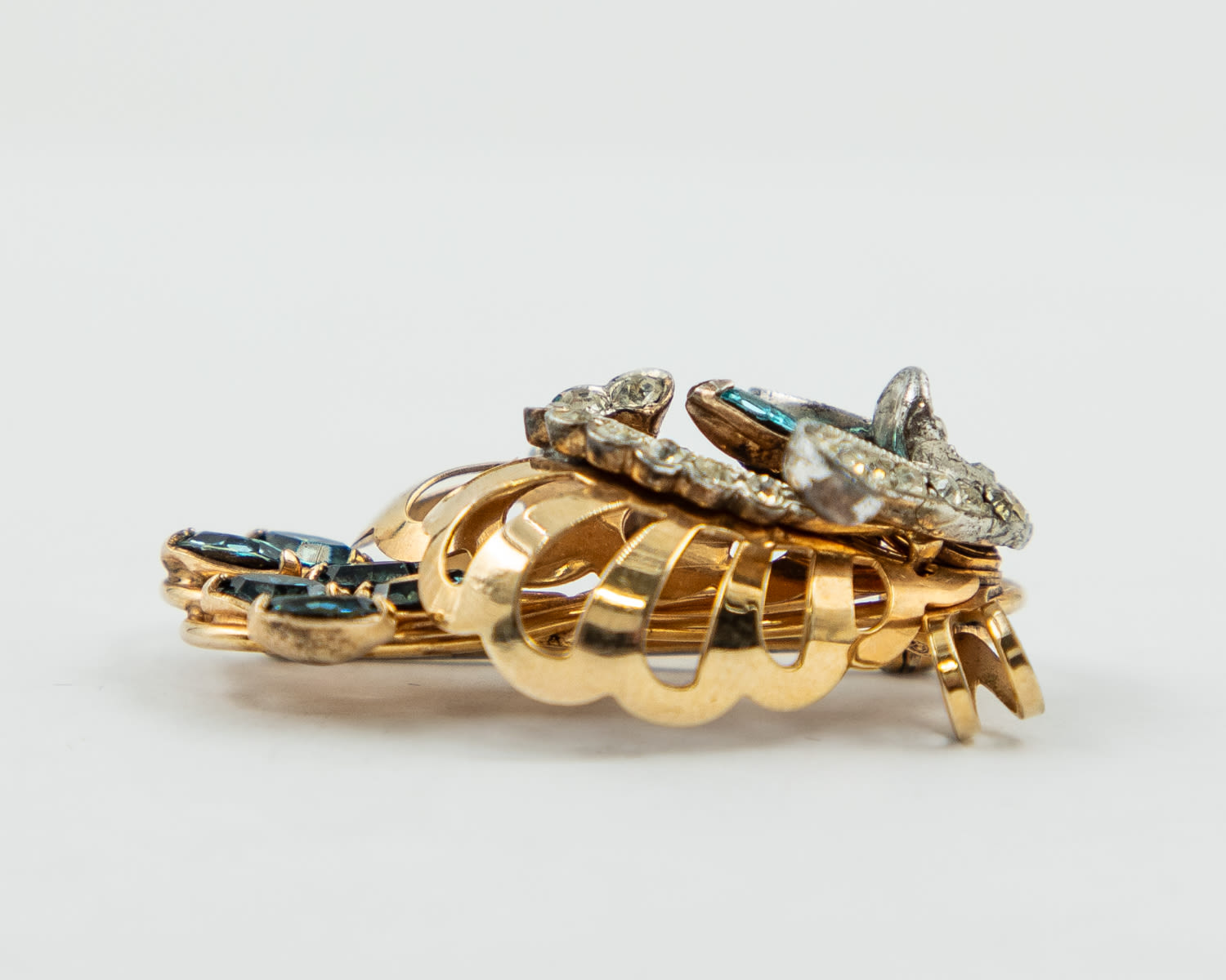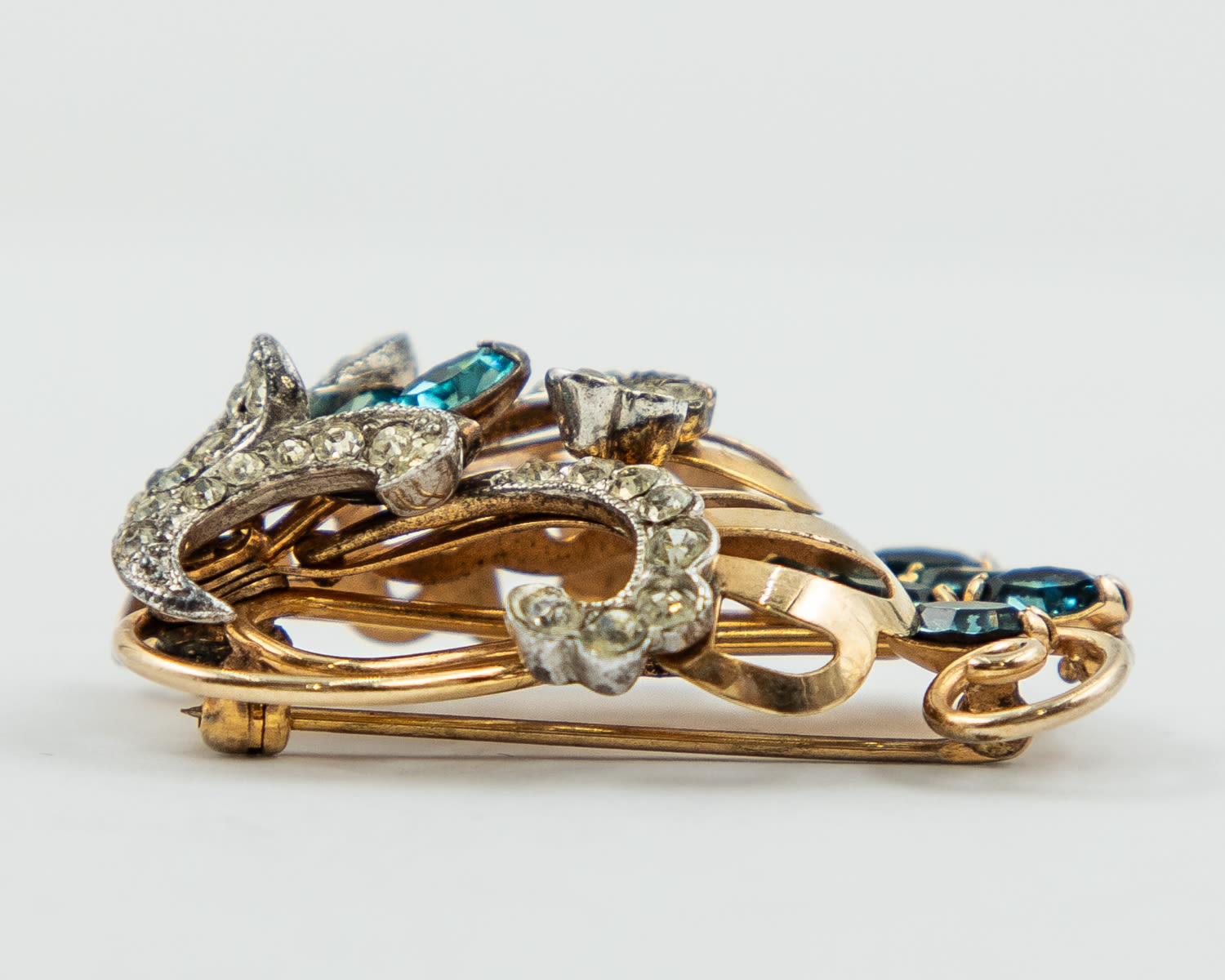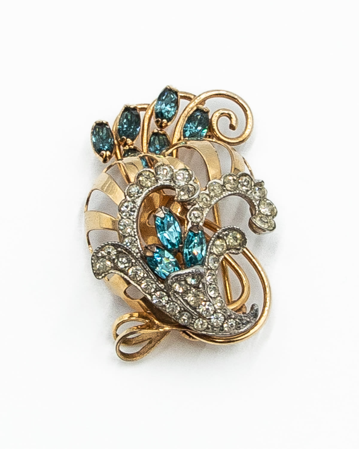 Charles Reis Vintage 12k Gold Filled Brooch Pin W/ Clear and Blue Rhinestones 9.2g