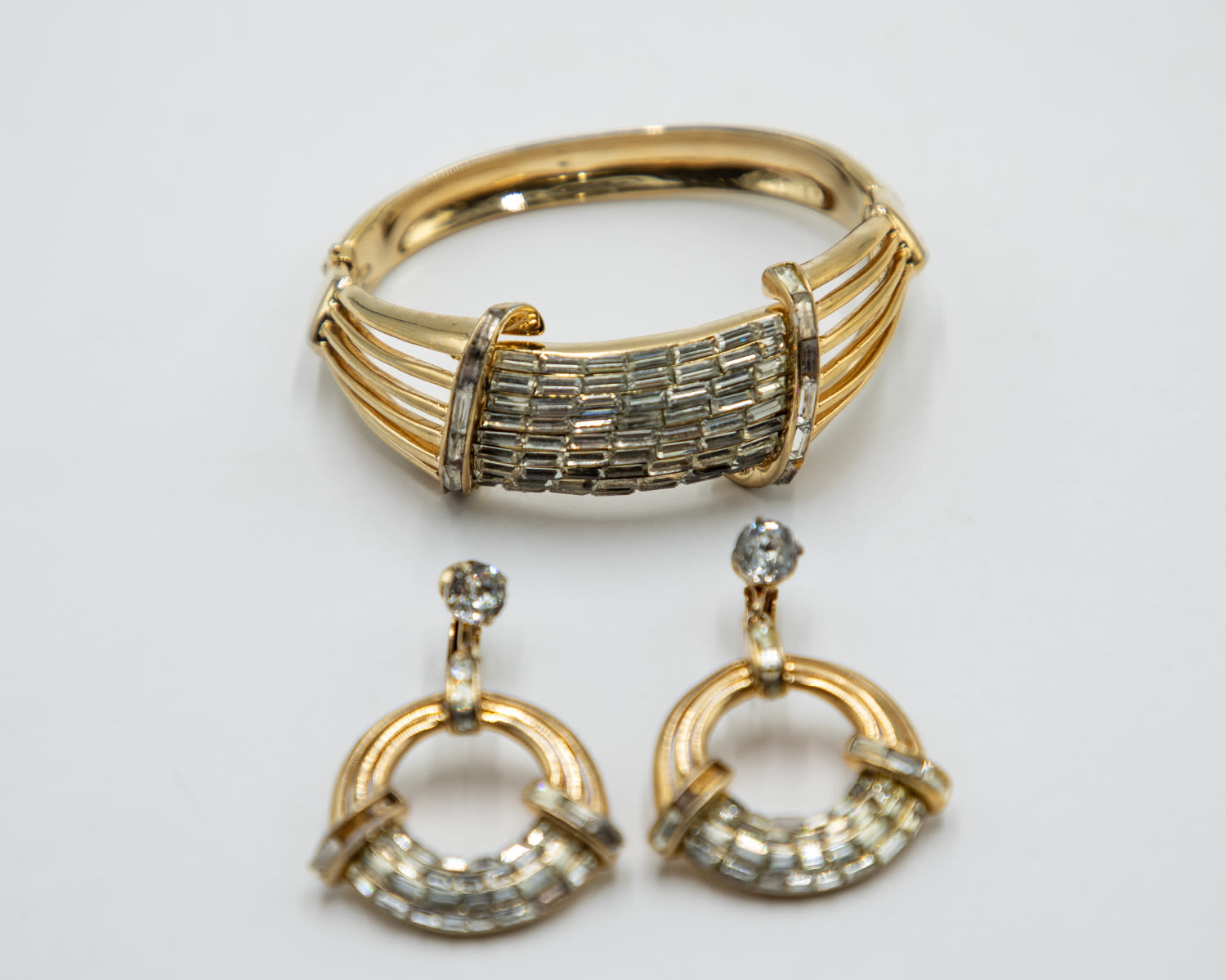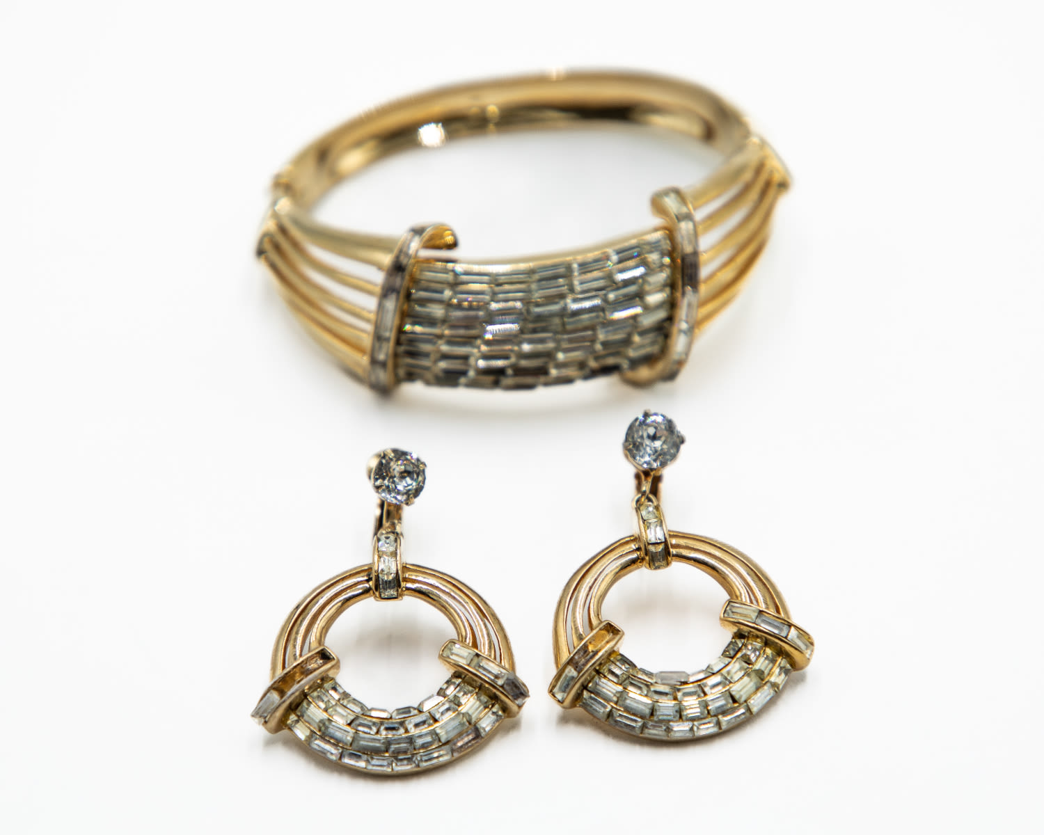 Vintage 1950’s Adolph Katz Corocraft Bracelet Earrings Set As IsMissing Rhinestones, previous owner made repairs