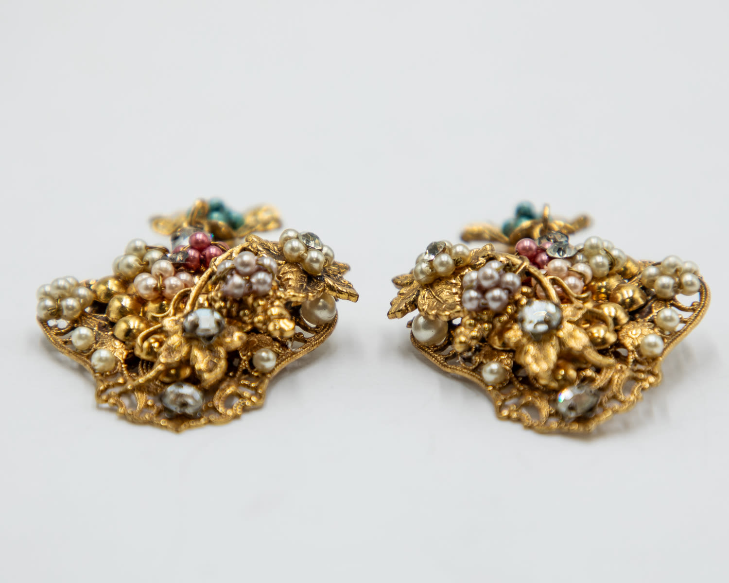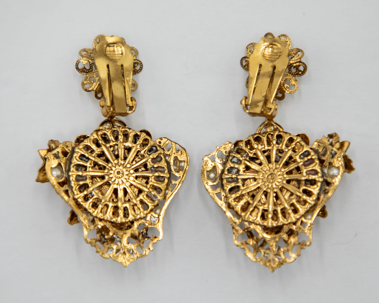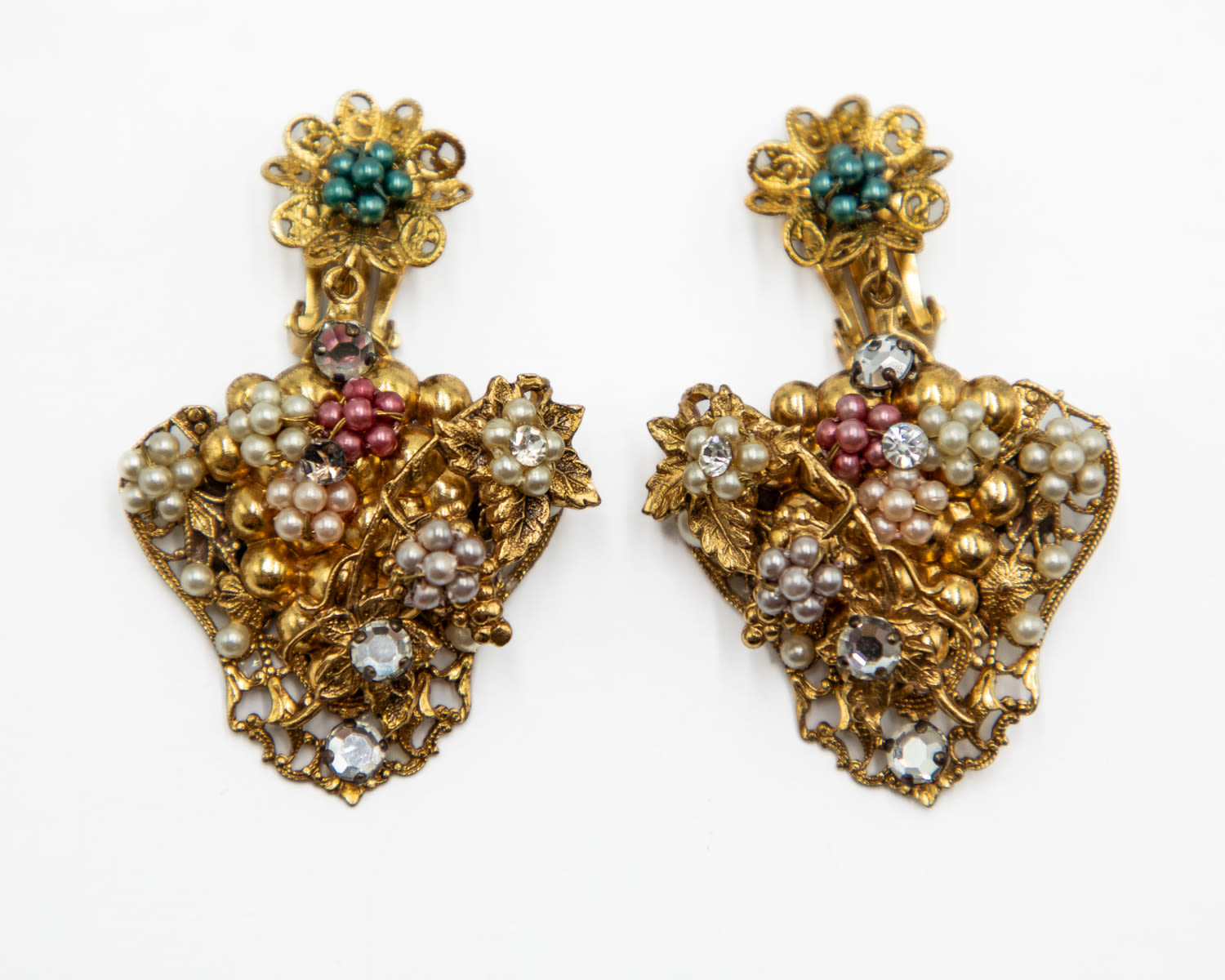 Vintage Rhinestone Faux Pearl Dangle EarringsMay be Demario
