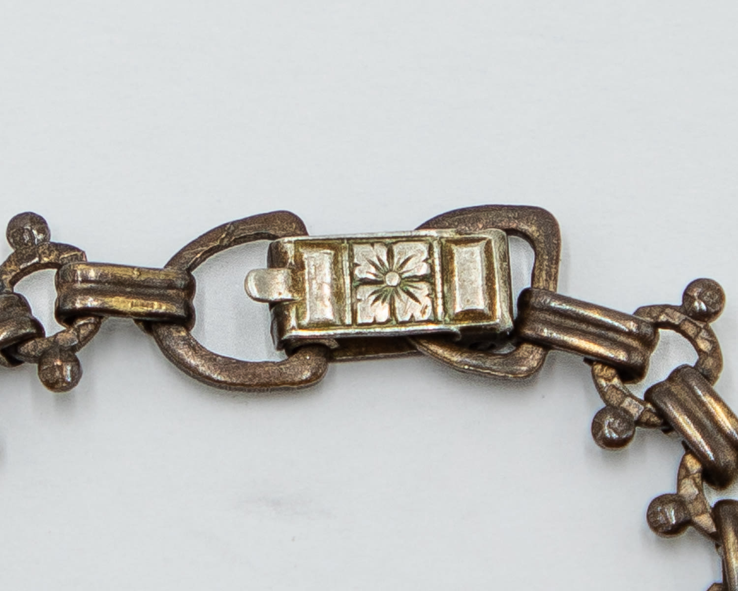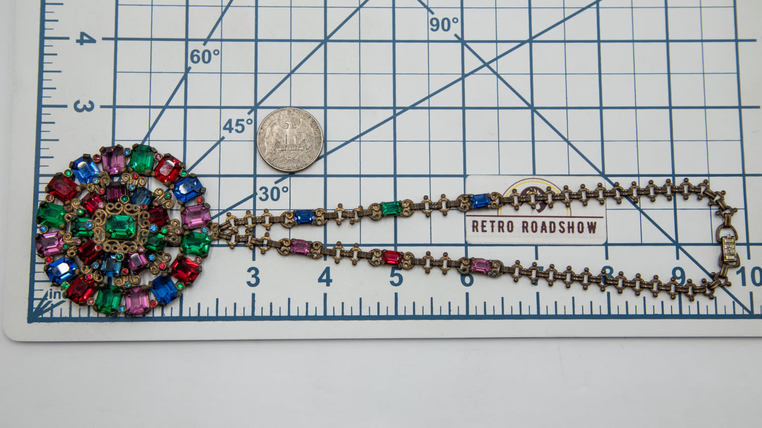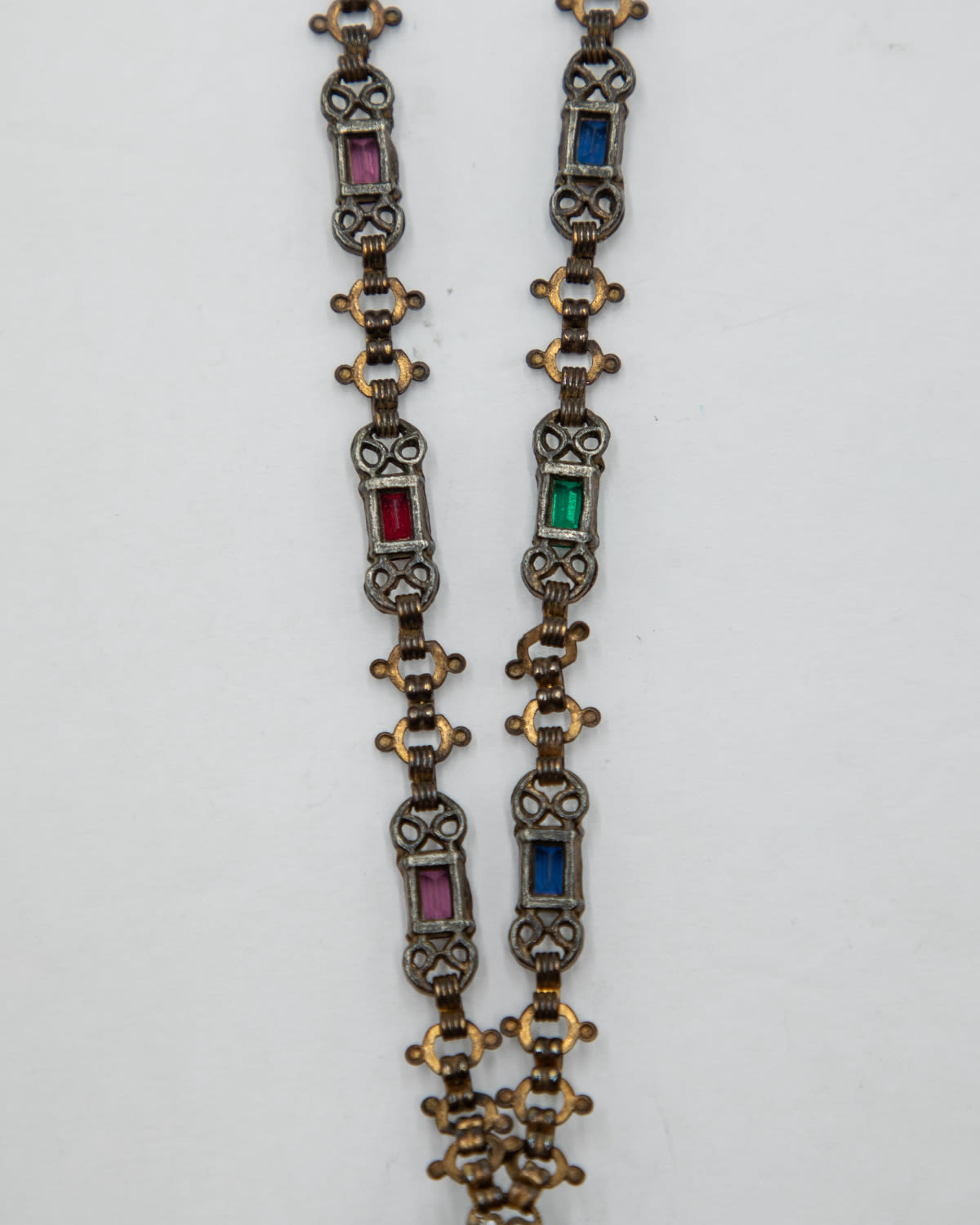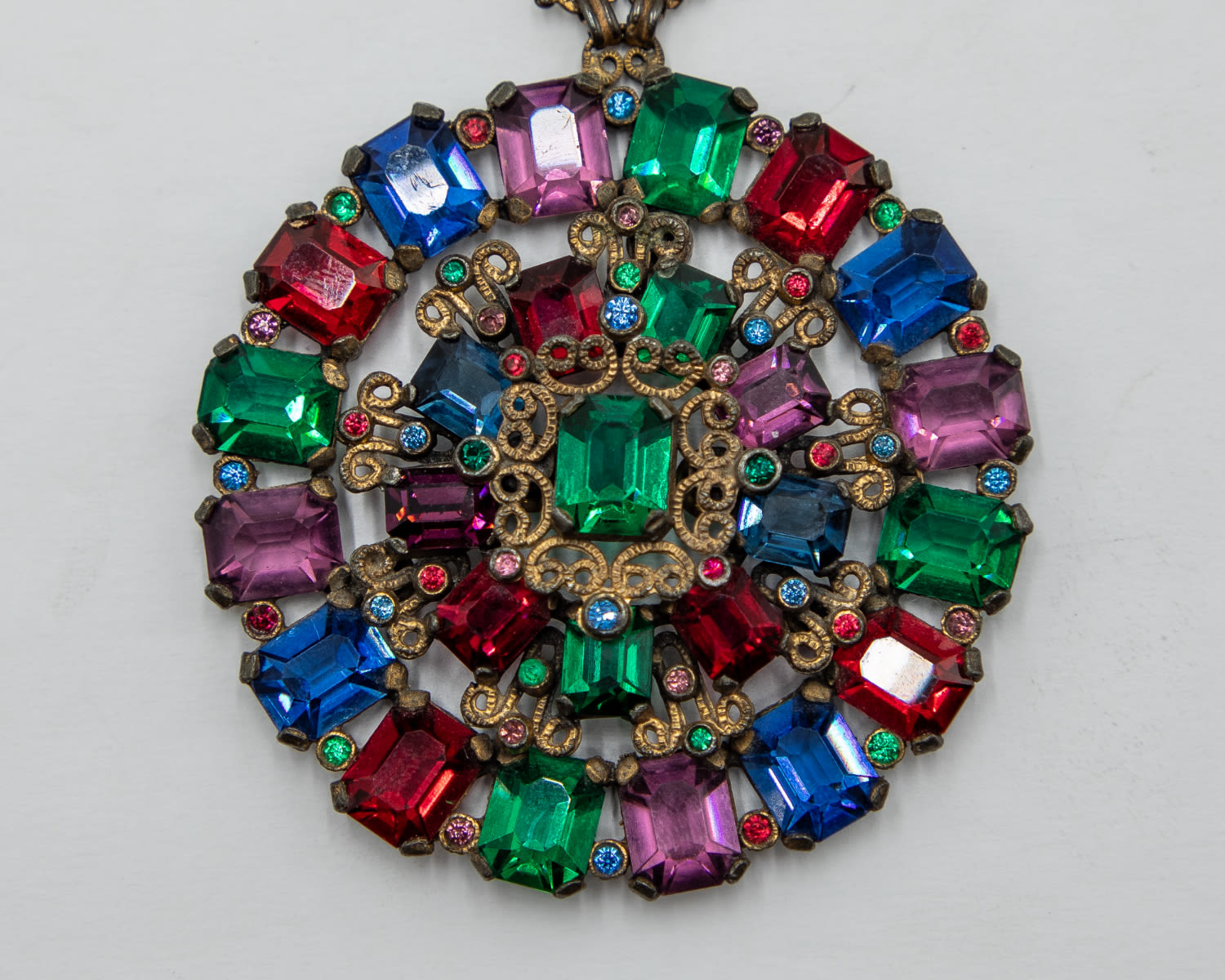 1920’s Czech Rhinestone Medallion NecklaceBeautiful floral stamping on original chain