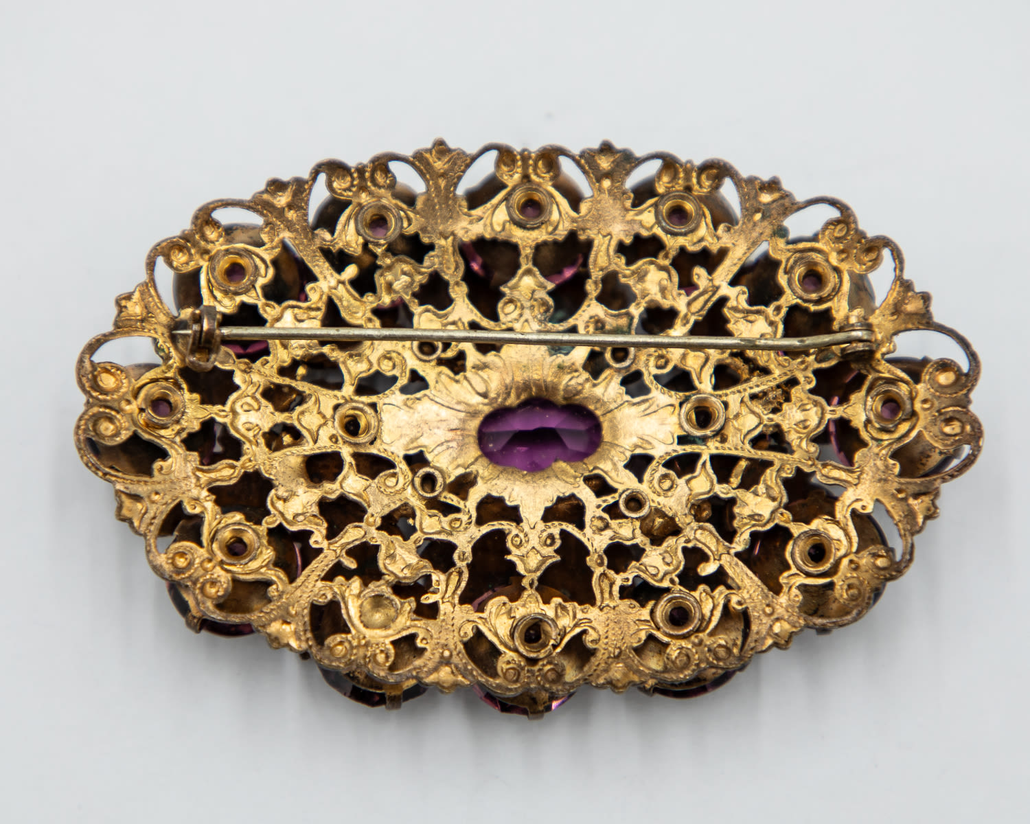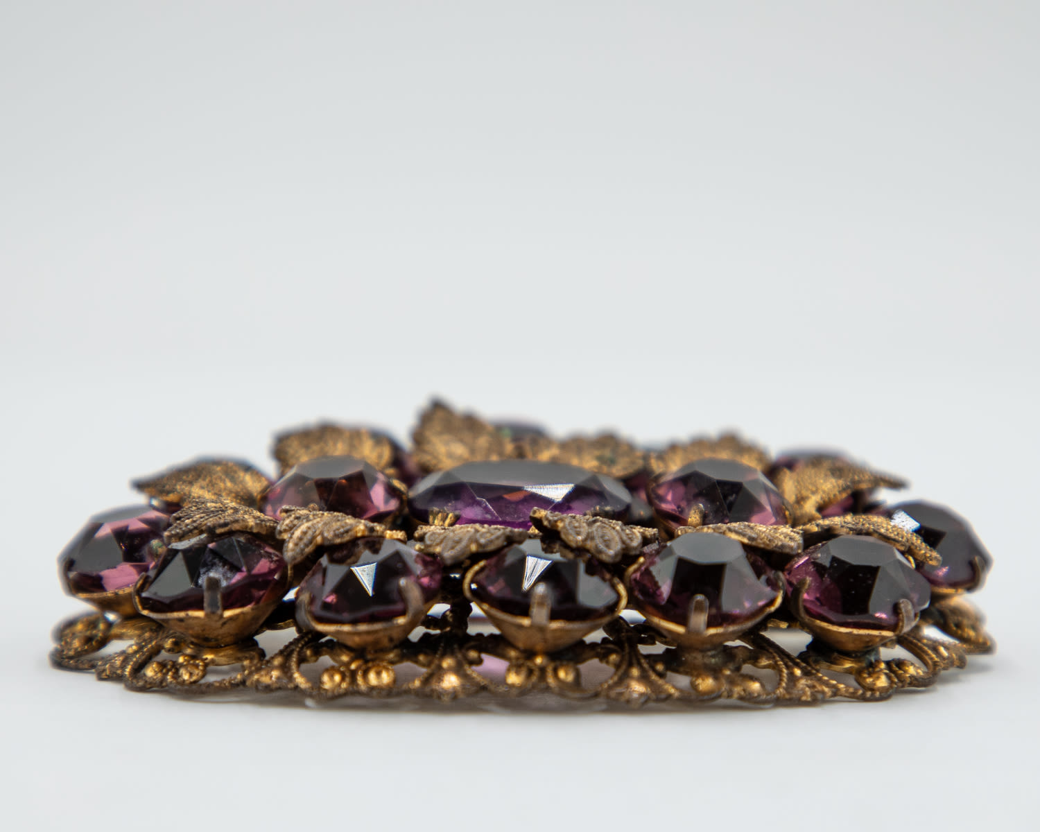 Huge Multi Level Czech Amethyst Rhinestone Brooch