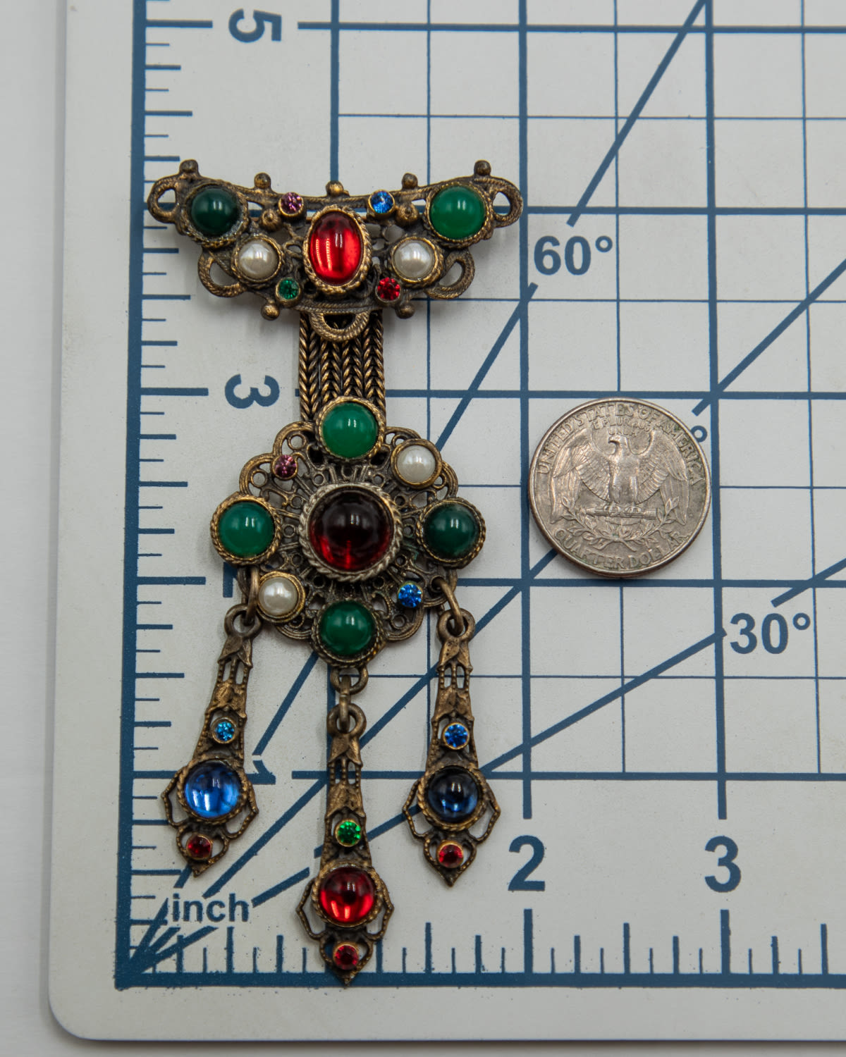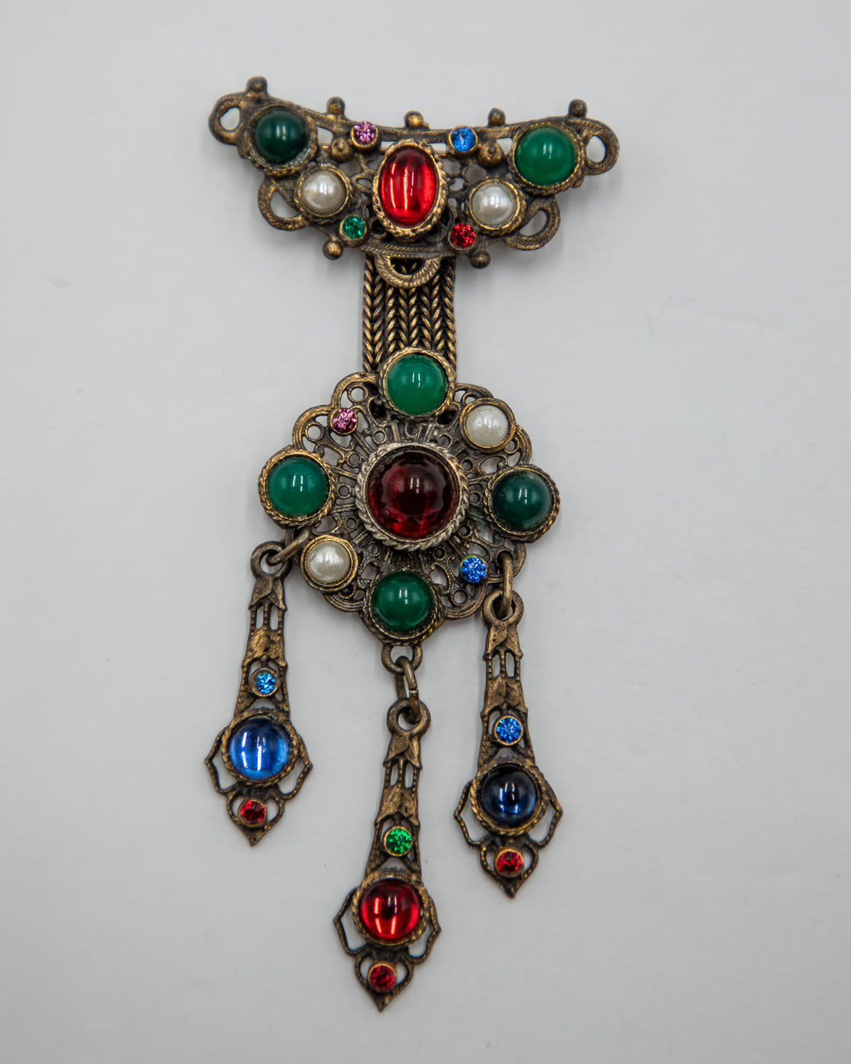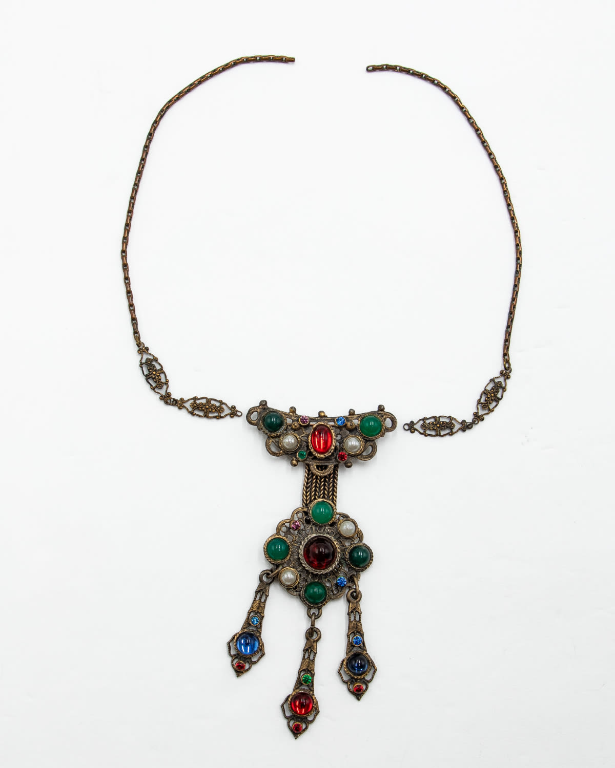 Vintage Czech Rhinestone Brooch Necklace As Is