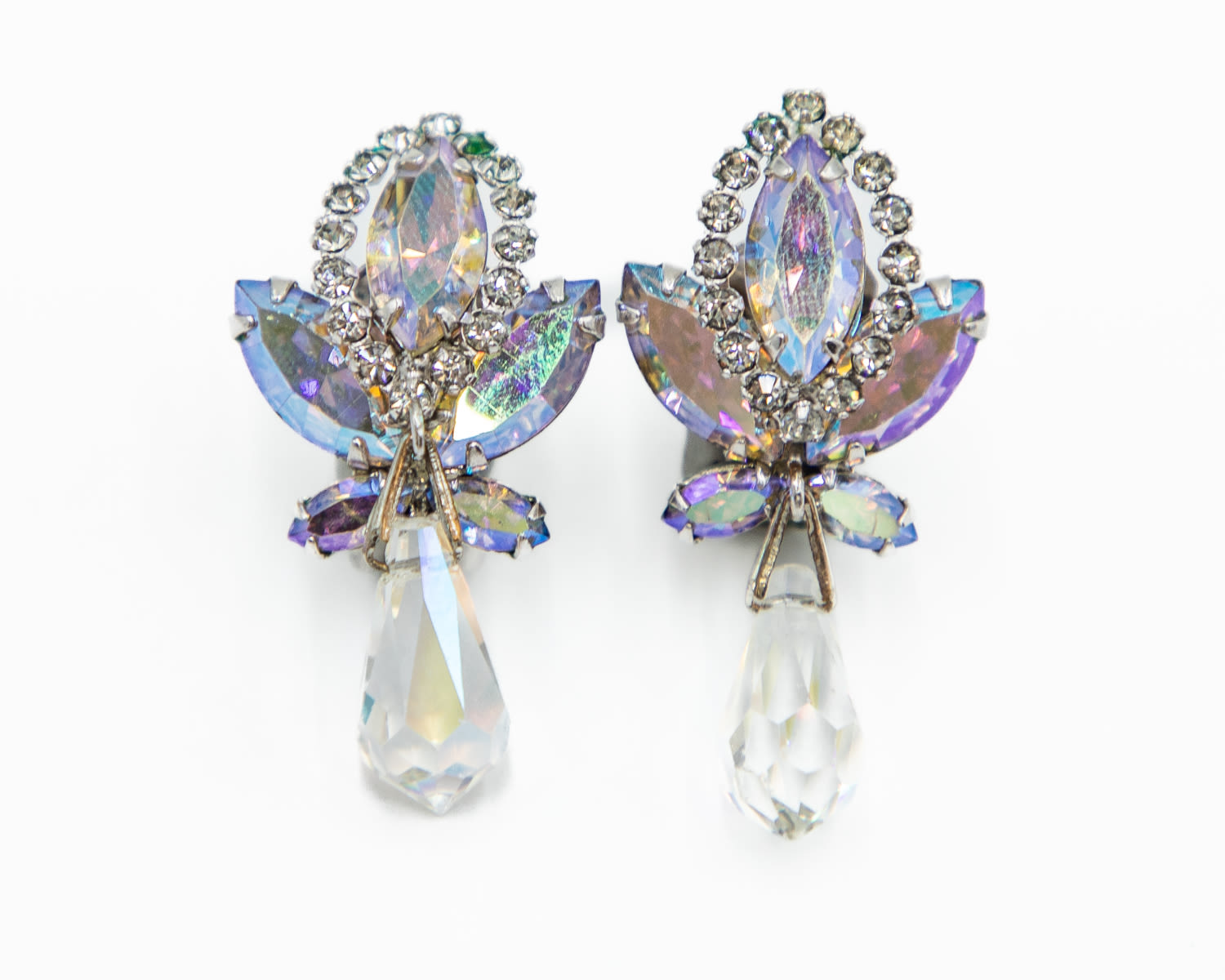 Weiss Aurora Borealis Mystic Topaz Clip On Earrings