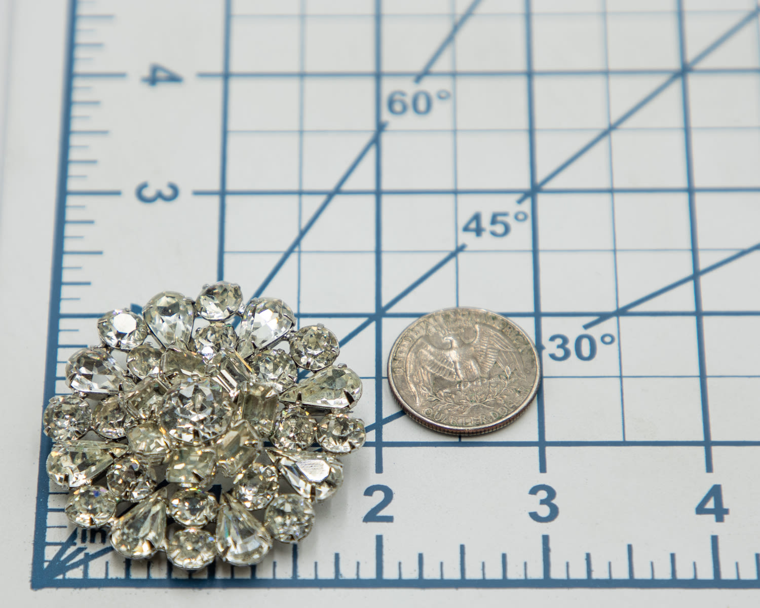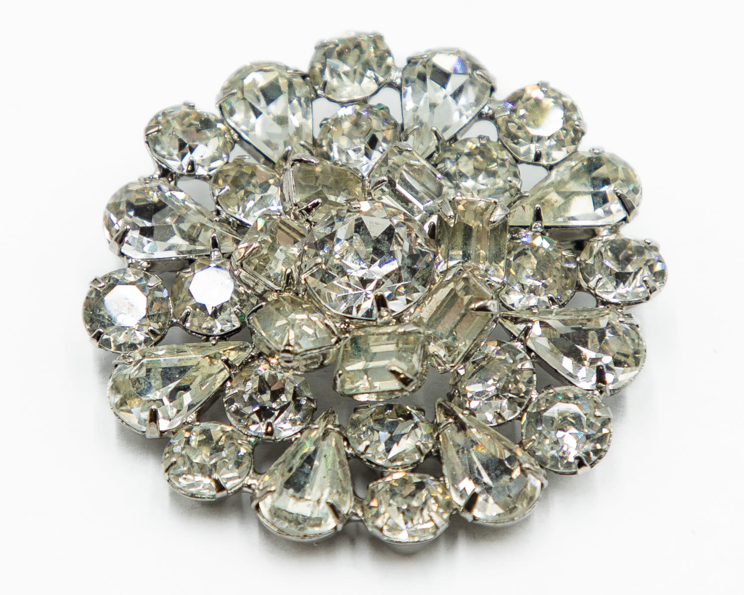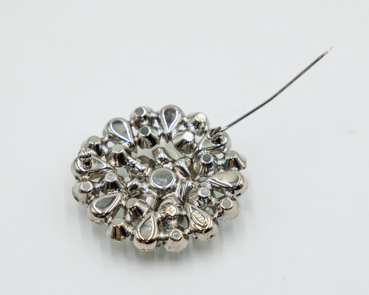 Weiss Round Rectangle Rhinestone Brooch Pin