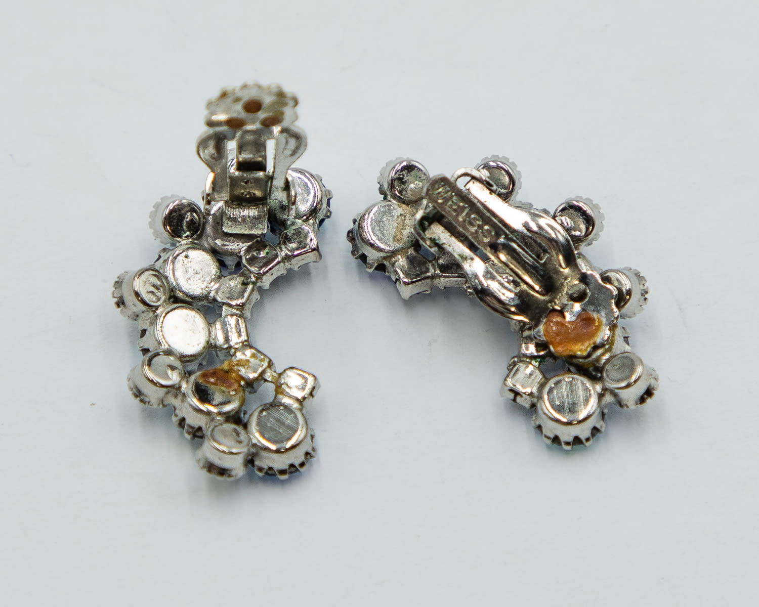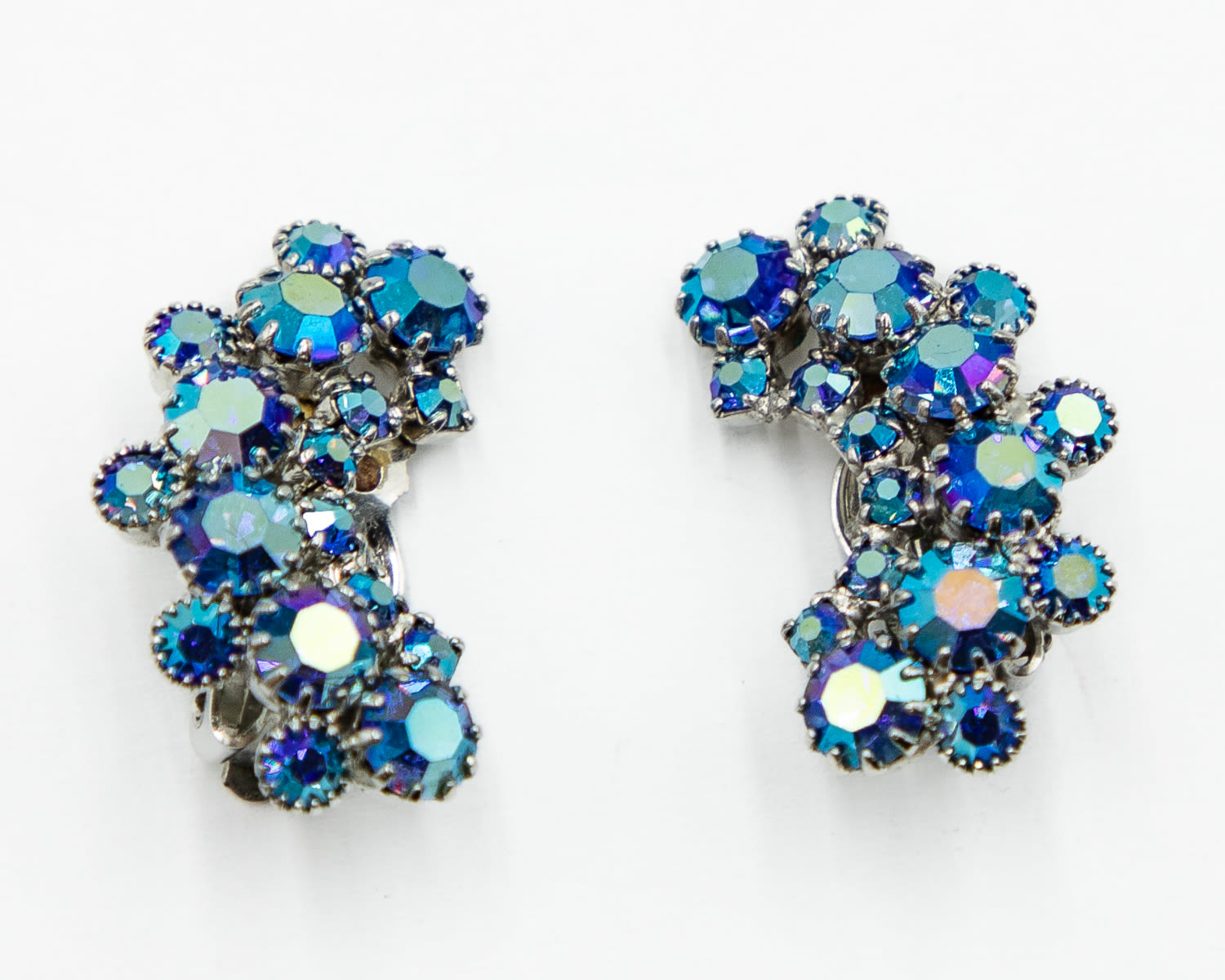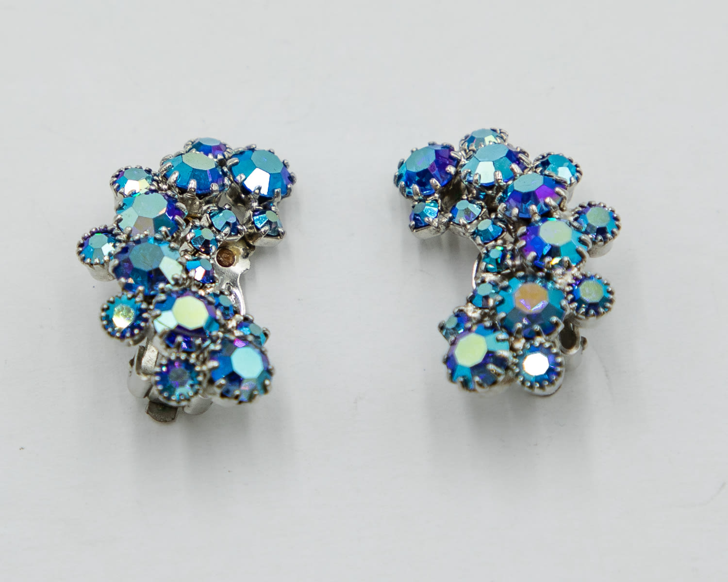 Weiss Aurora Borealis Blue Crystal Clip On Earrings