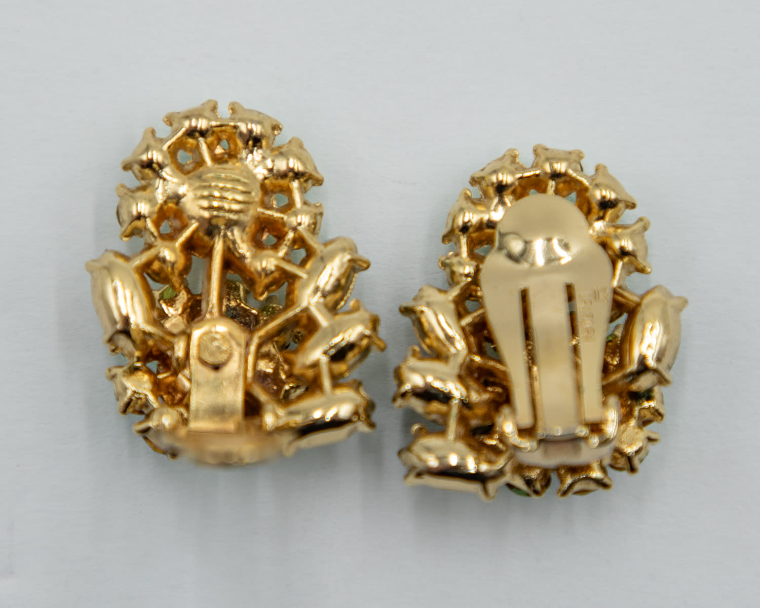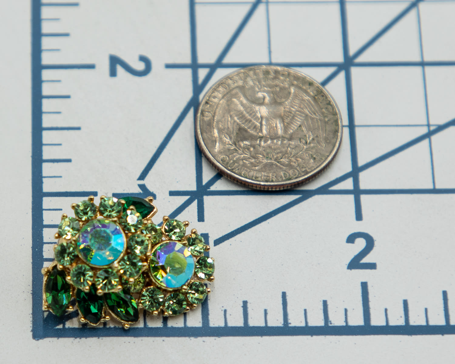 Trifari Green Aurora Borealis Rhinestone Clip On Earrings