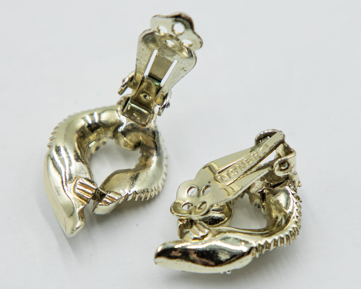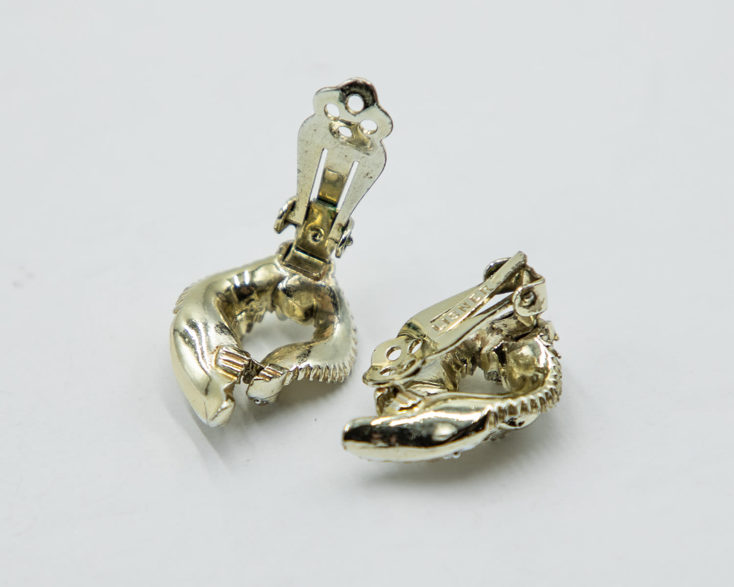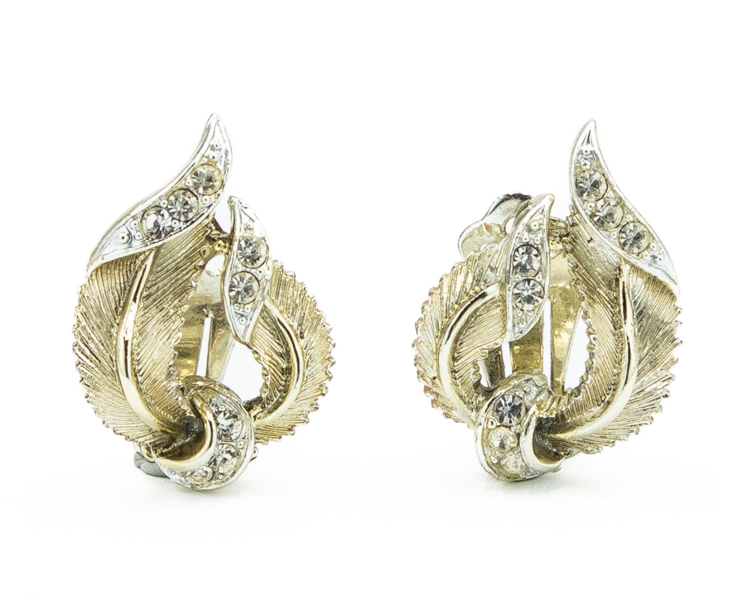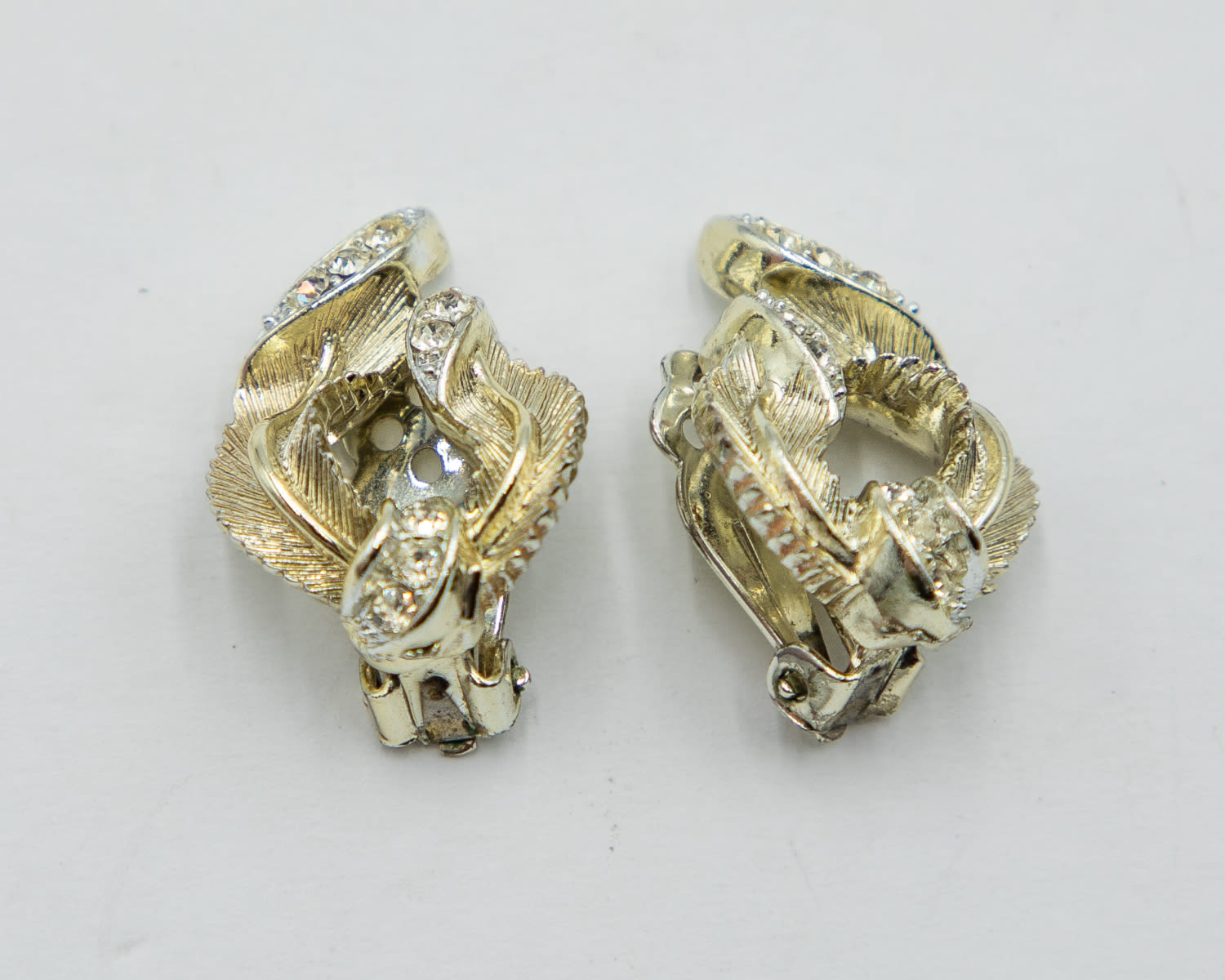 Lisner Leaf Design with Clear Rhinestone Clip On Earrings