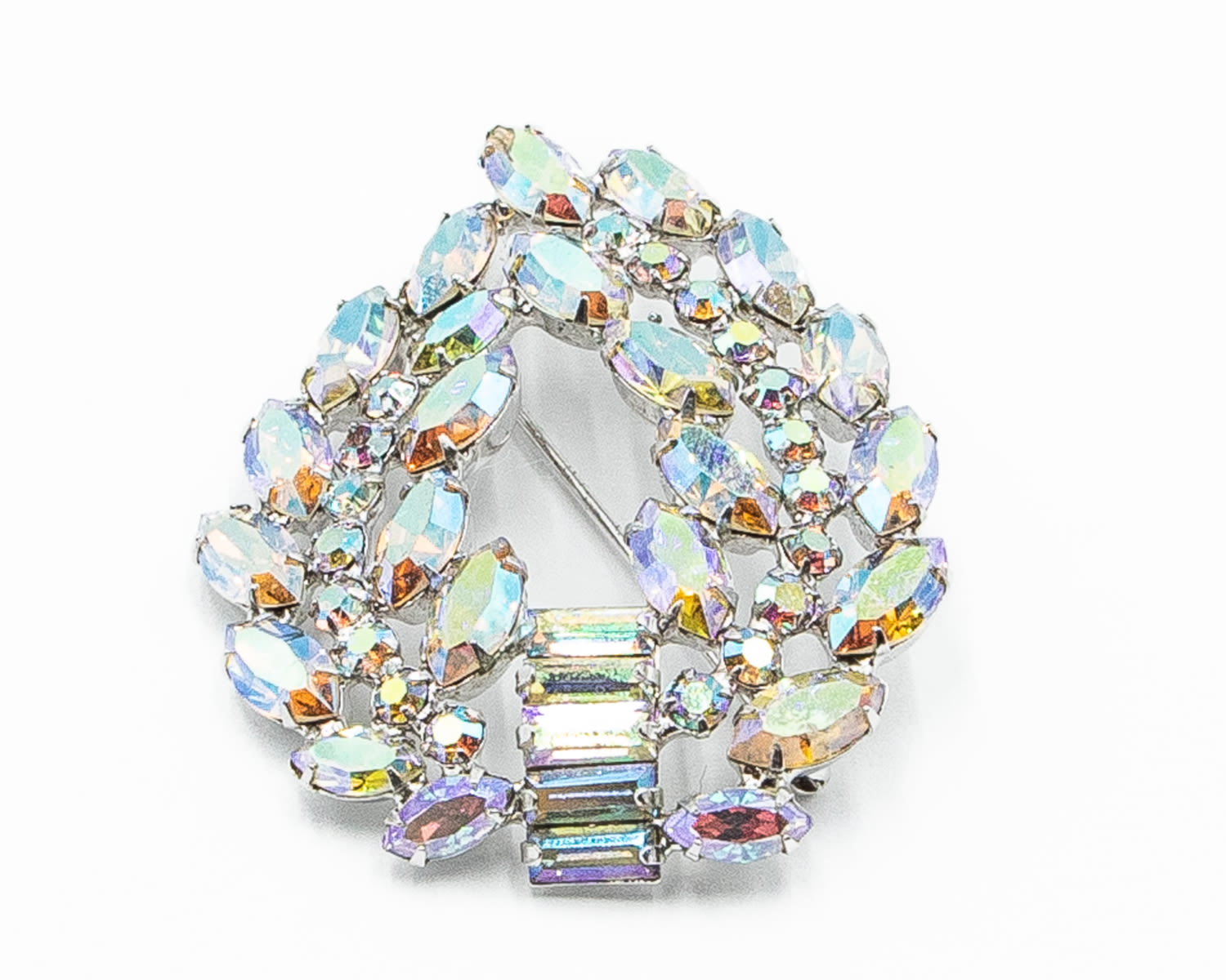 B. David Aurora Borealis Mystic Topaz Rhinestone Leaves Brooch Pin