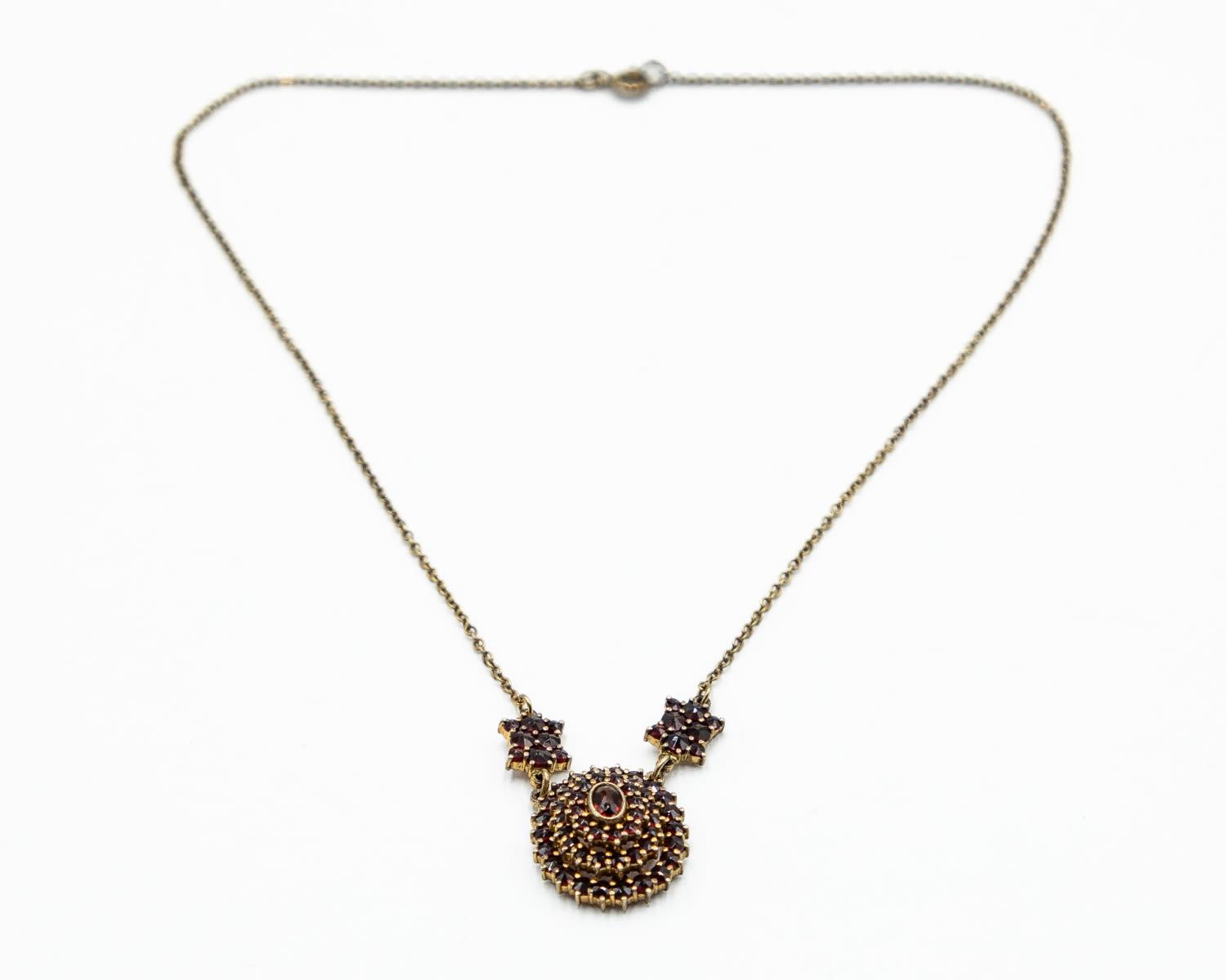 Vintage 14k Gold Plated French Made Bohemian Garnet Necklace