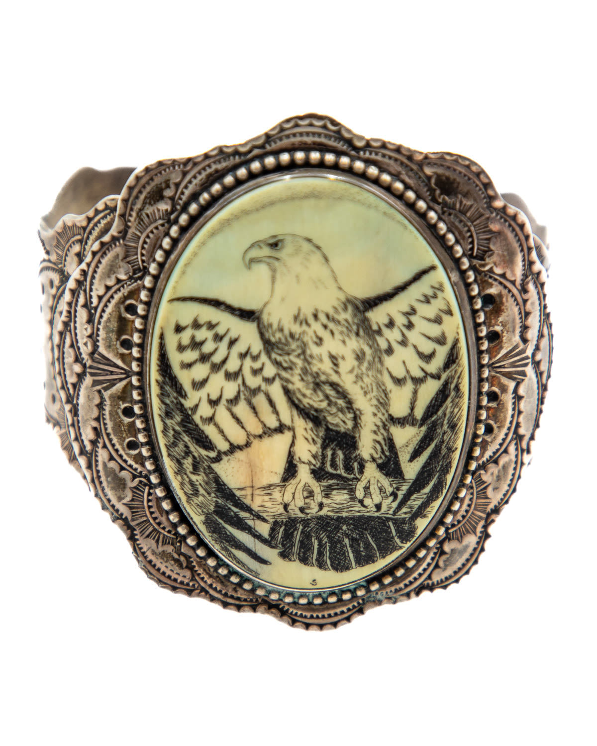 Signed Sterling Scrimshaw Eagle Cuff Bracelet