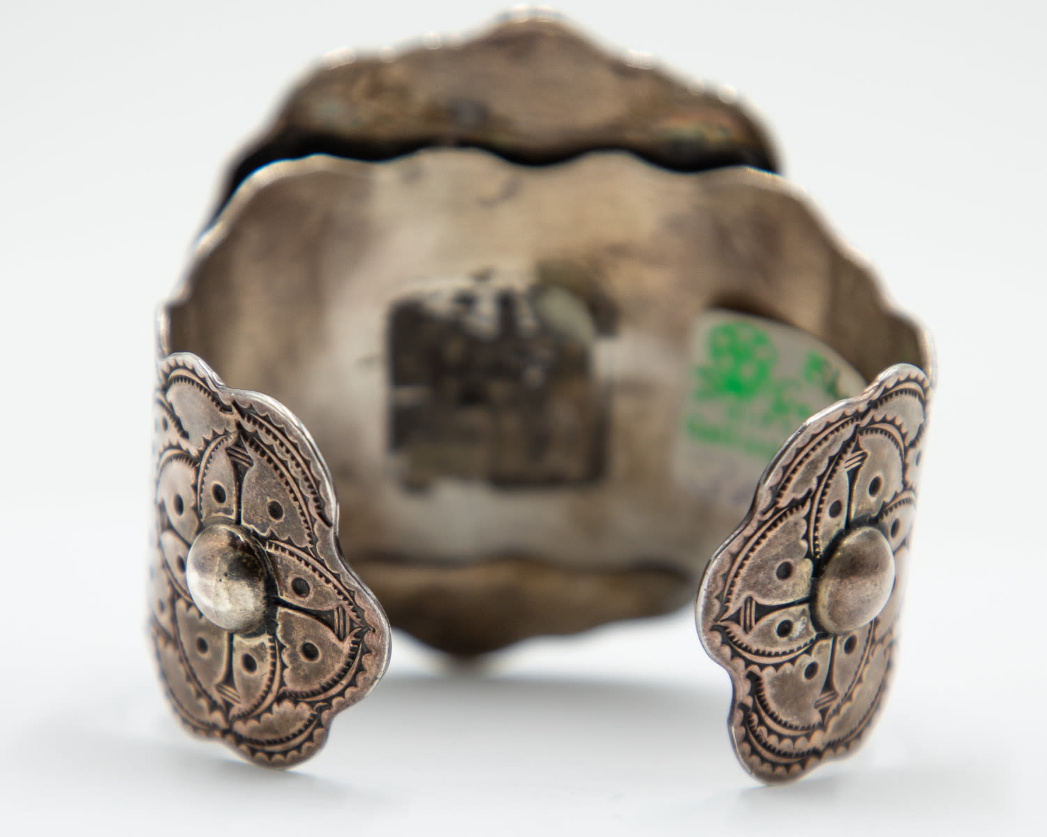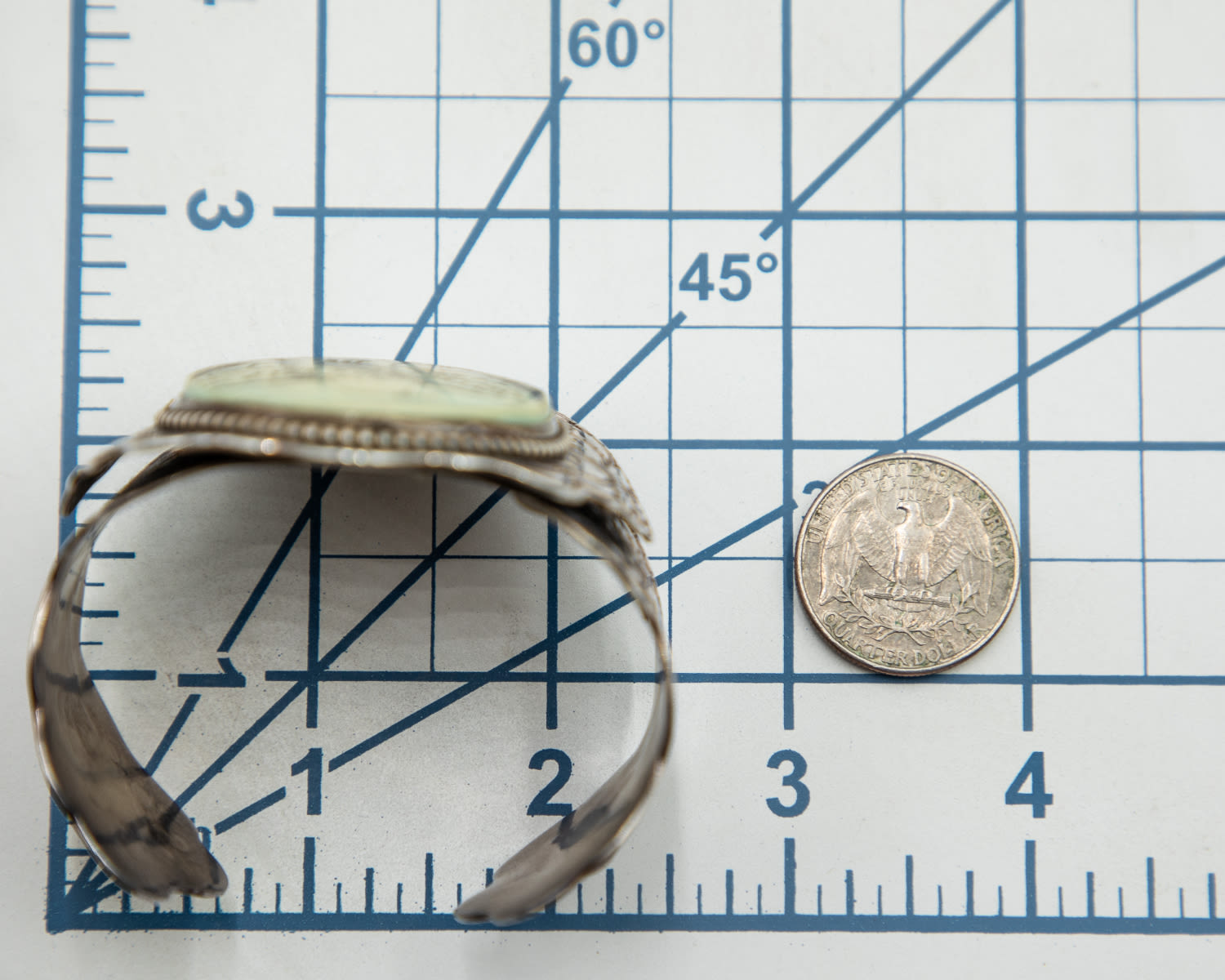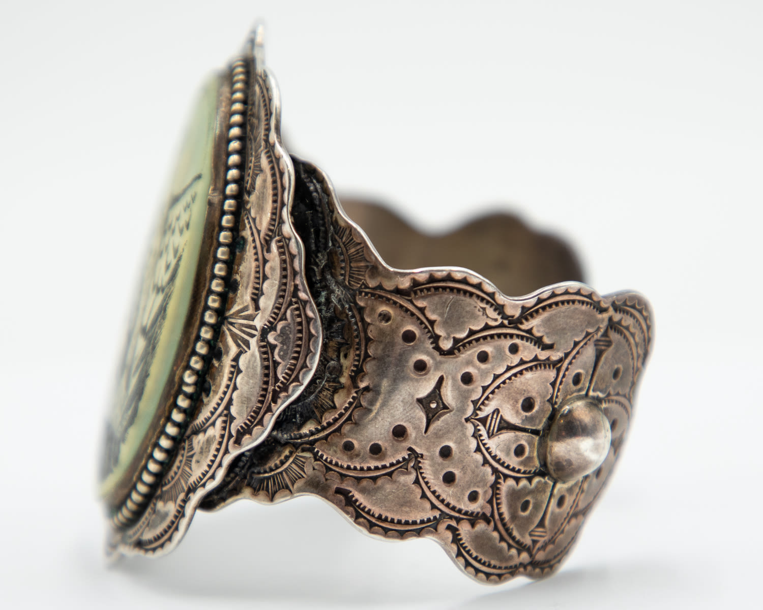 Signed Sterling Scrimshaw Eagle Cuff Bracelet, 97g. Signed CC with pictograph