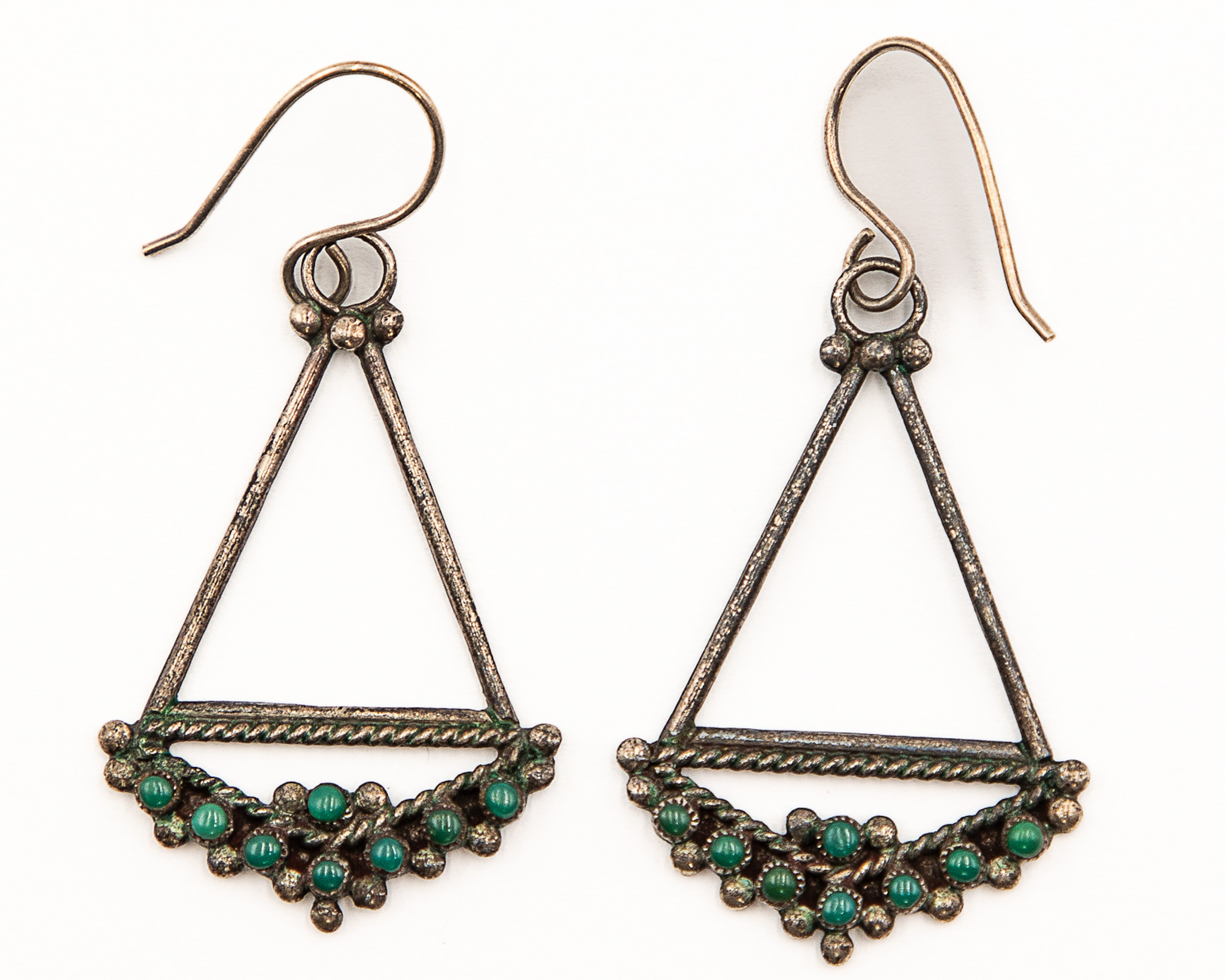 Vintage Zuni Snake Eye Turquoise Chandelier Dangle Earrings 6g