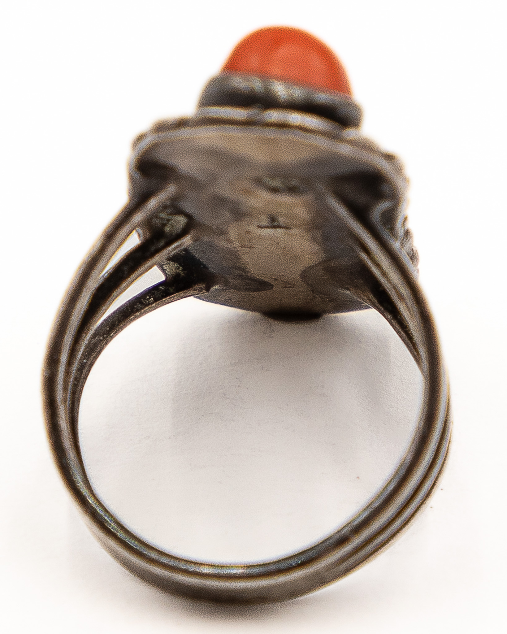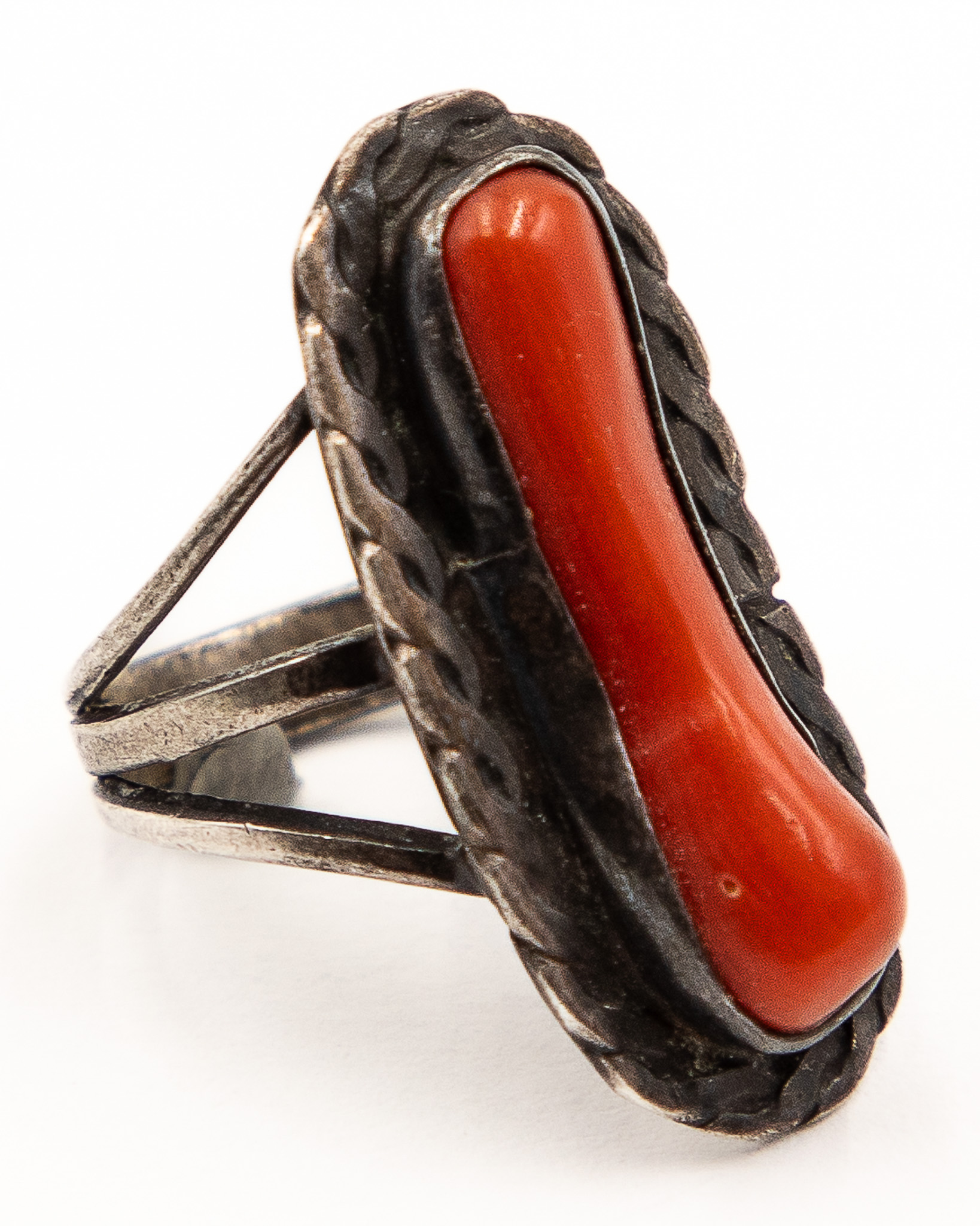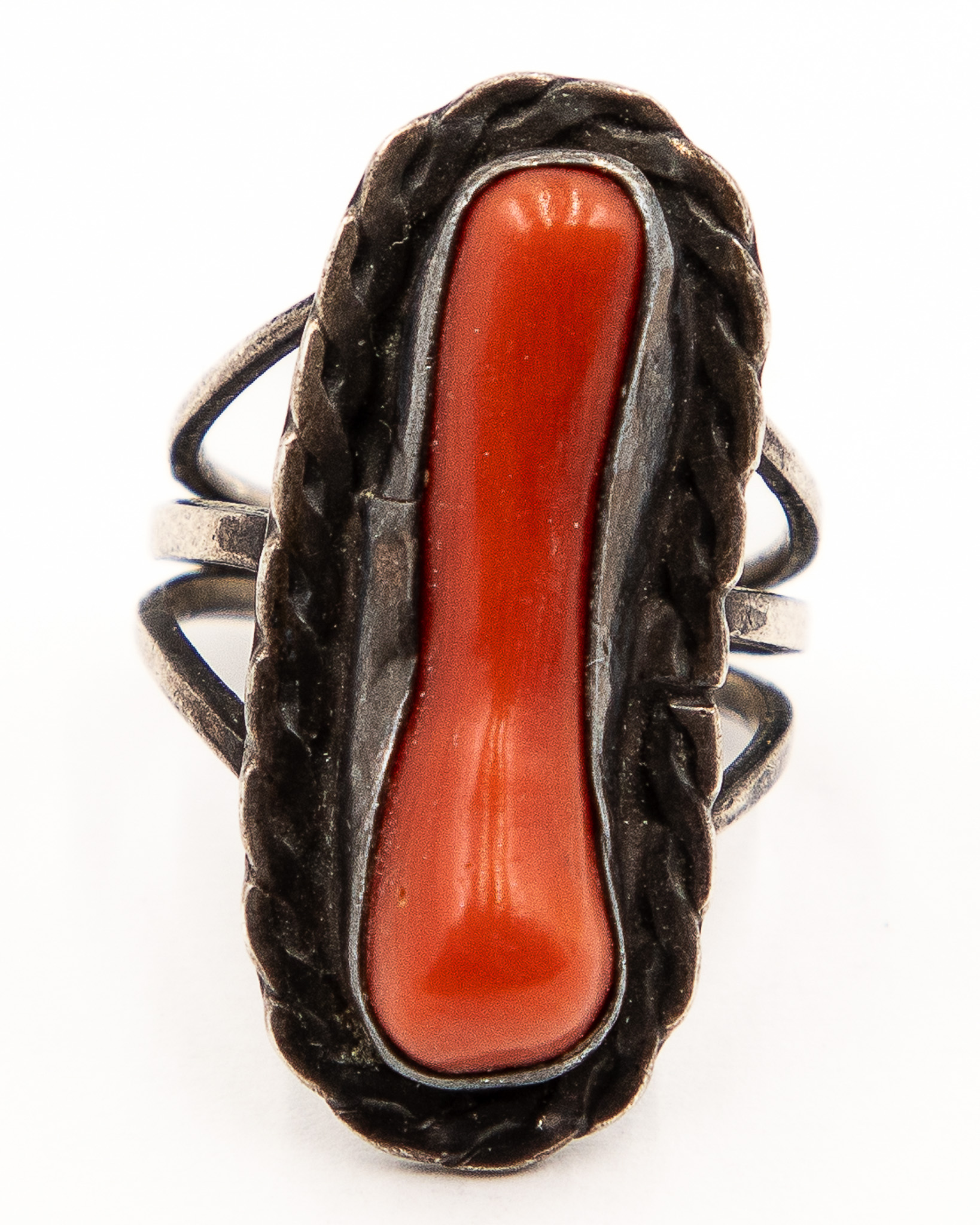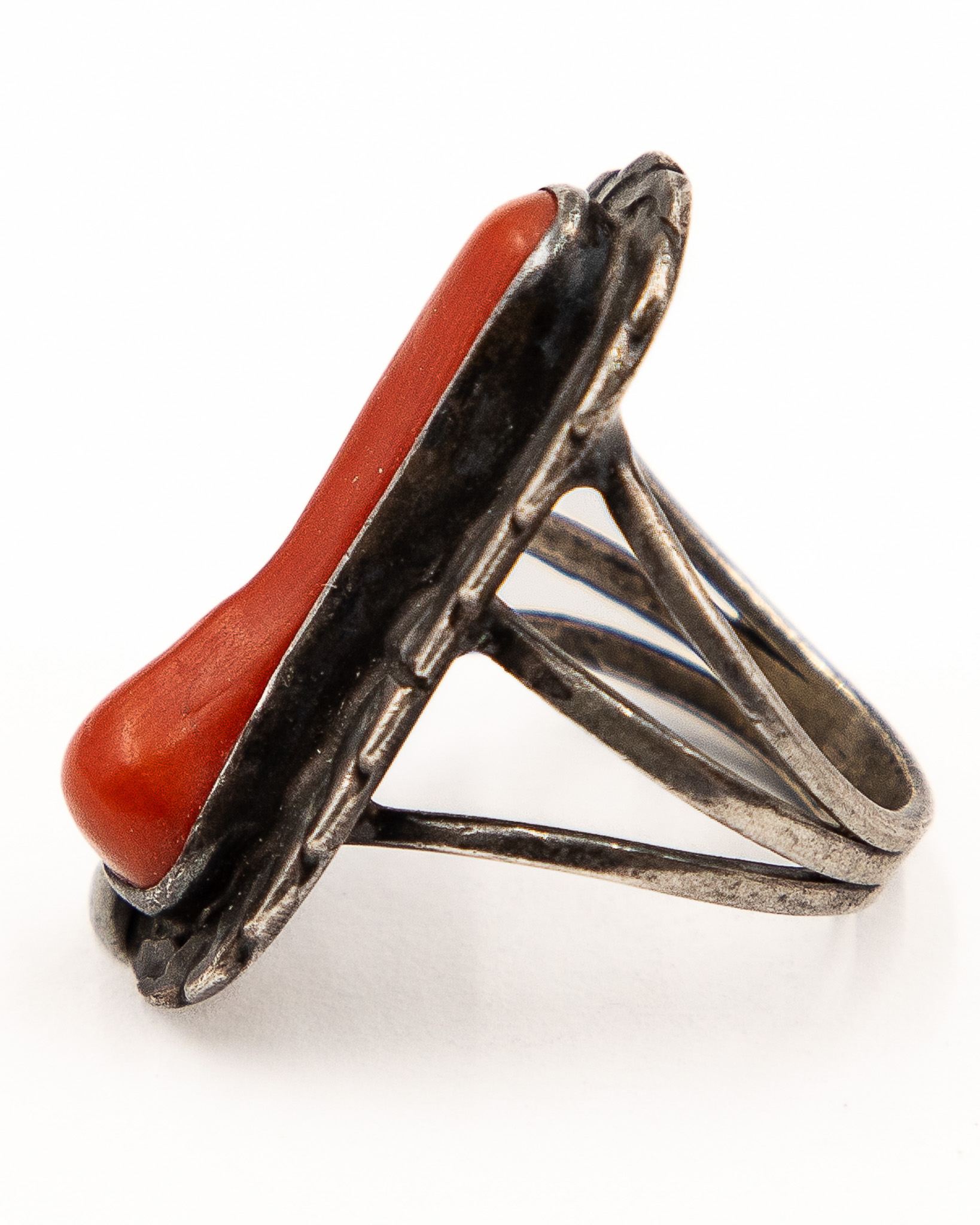 Signed M/T Mediterranean Coral Sterling Ring Sz. 4.5, 4g