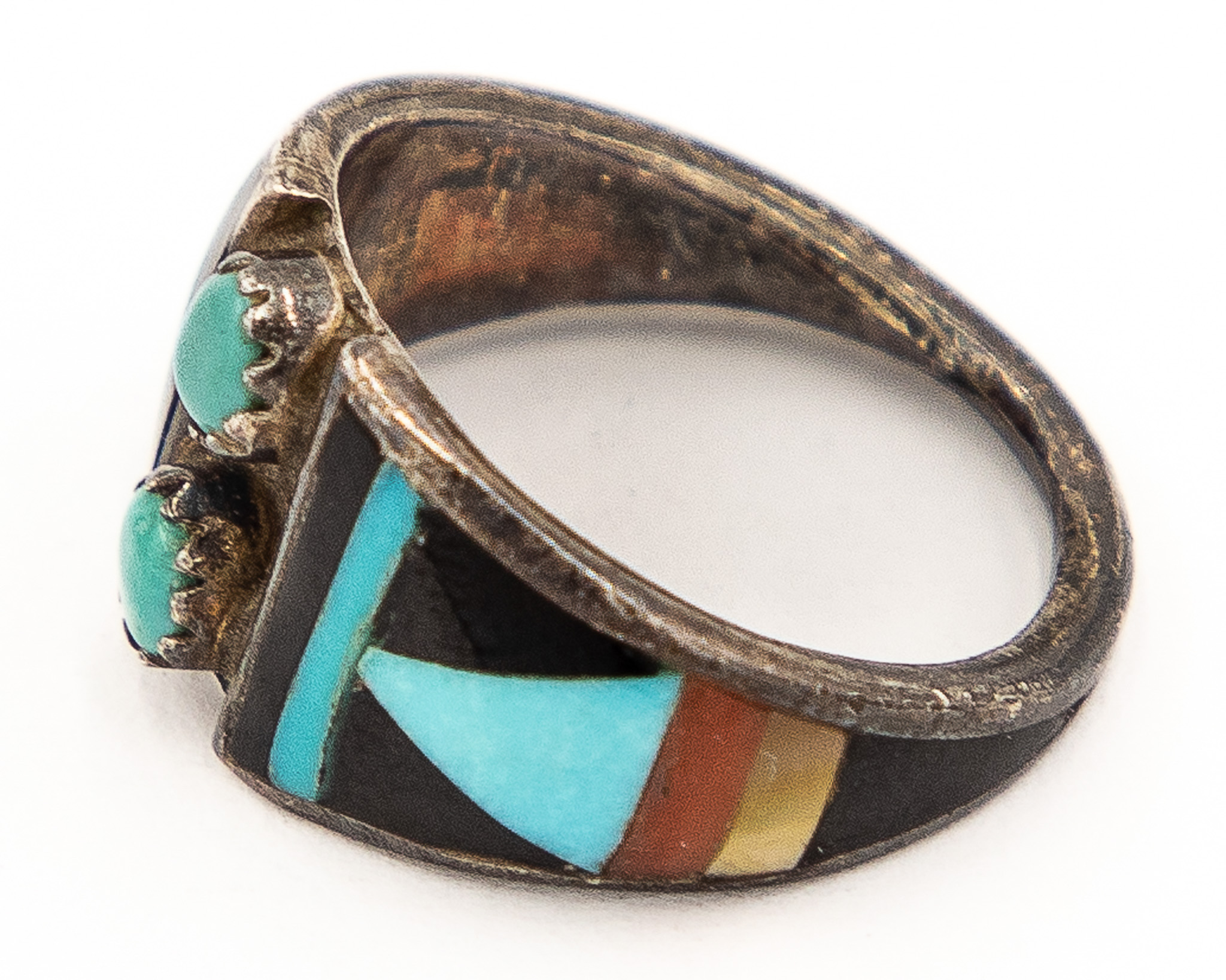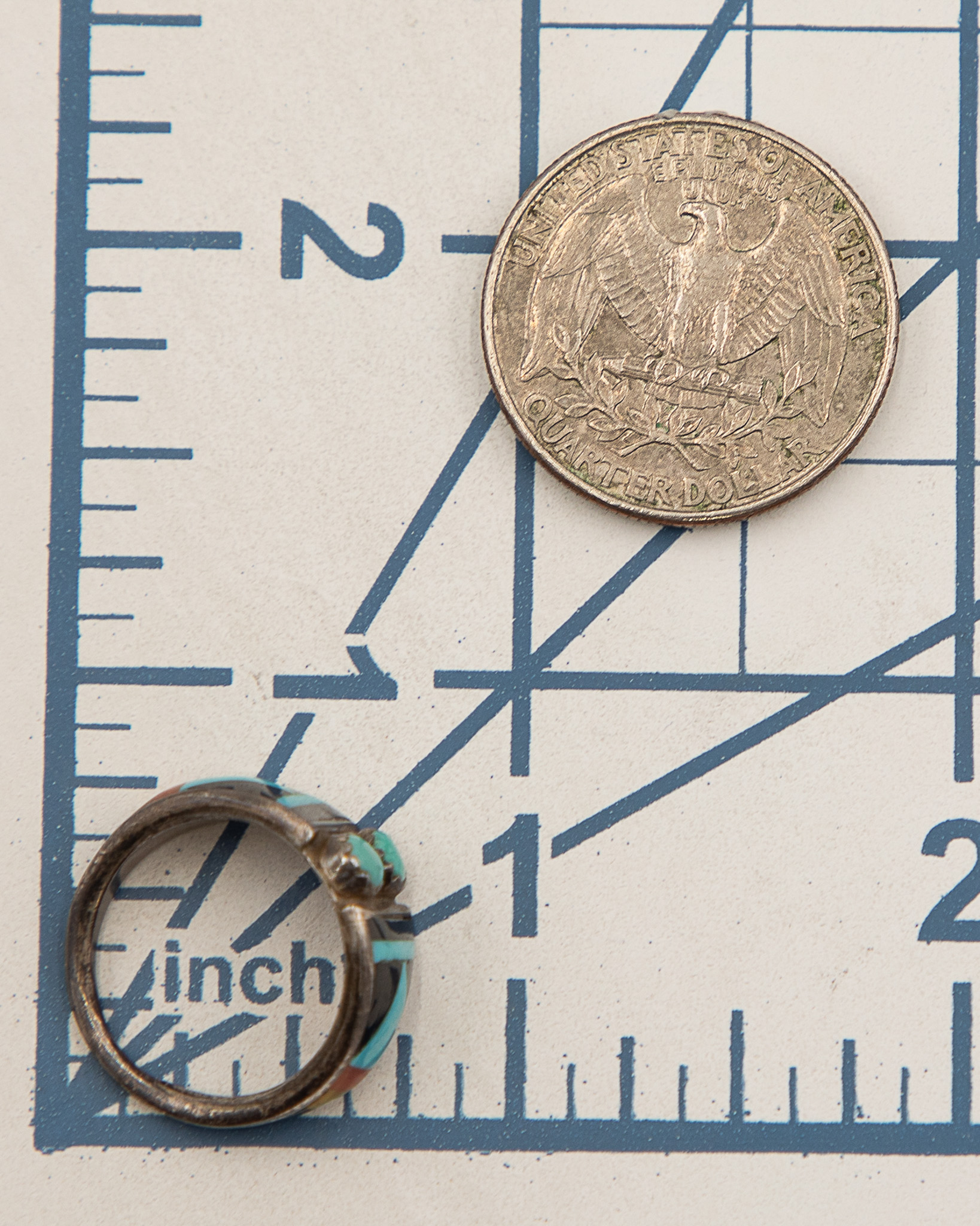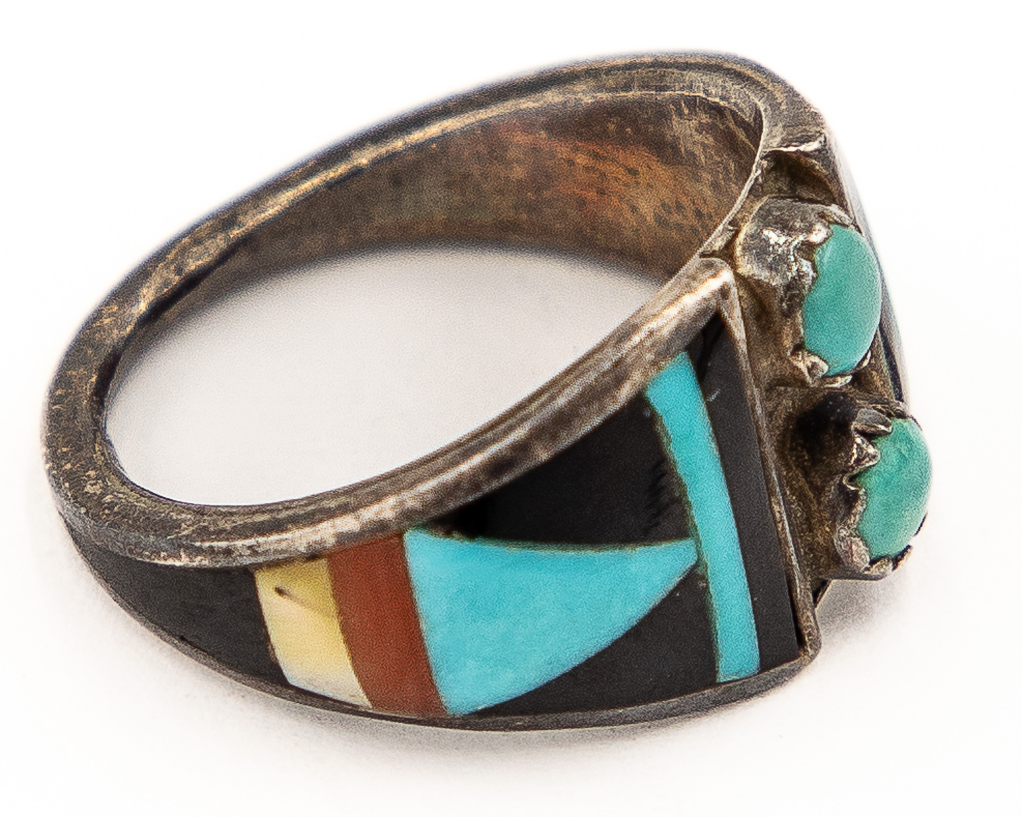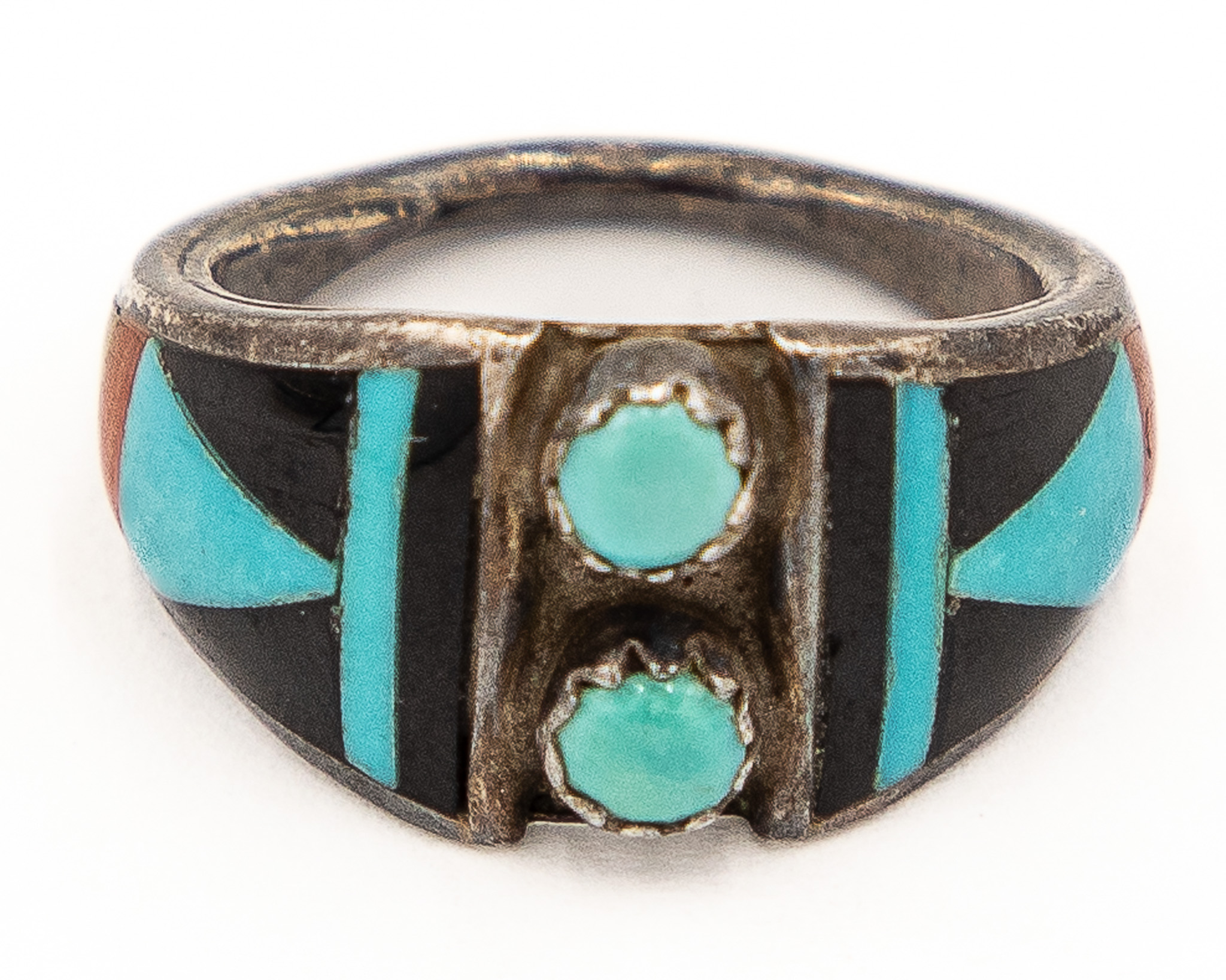 Boone Zuni Turquoise Jet Spiny Oyster Mother Of Pearl Inlay Ring Sz. 4.75, 3g