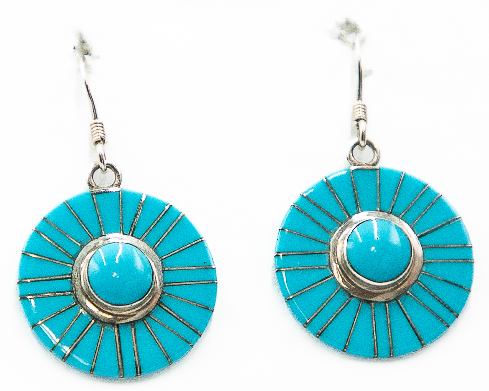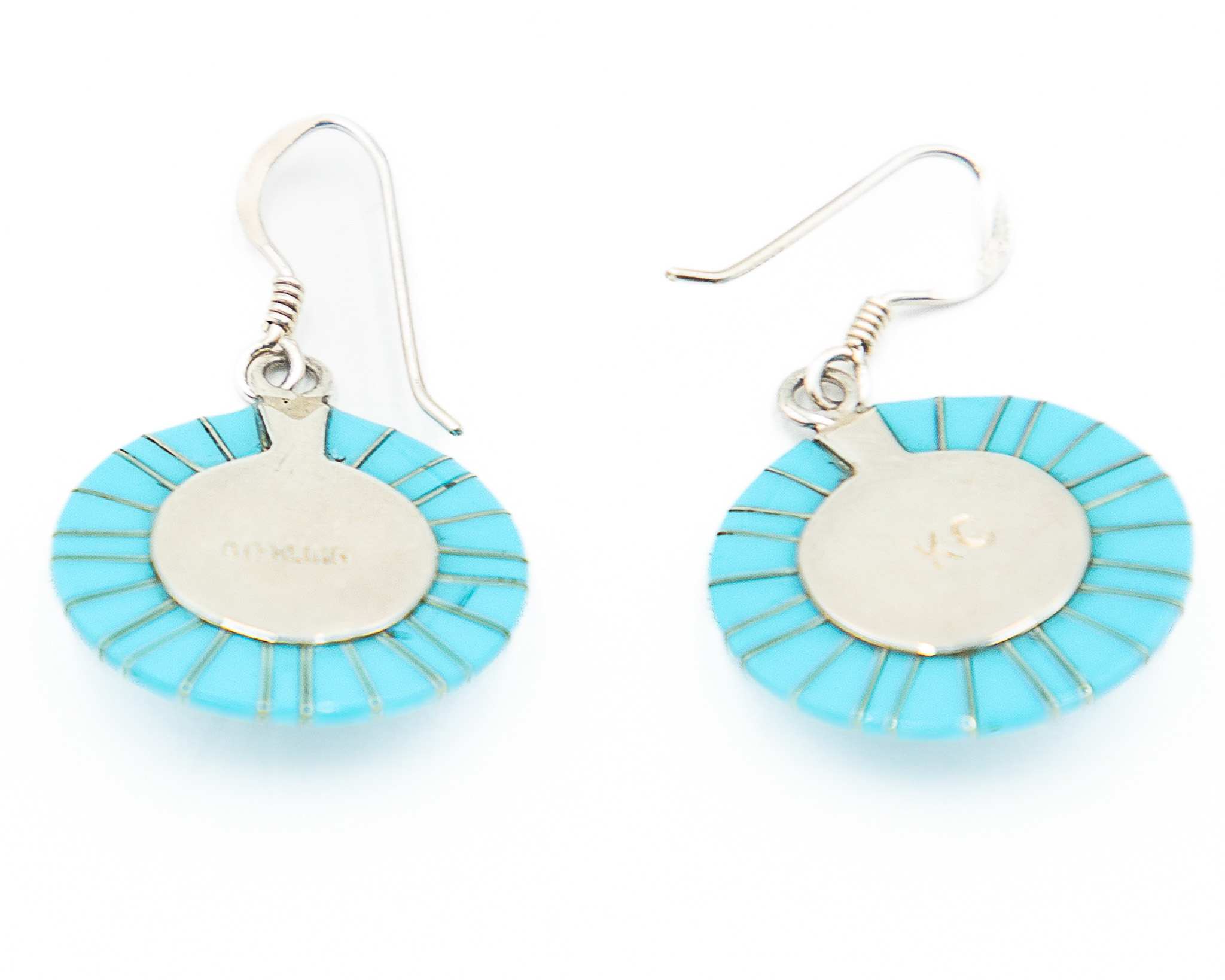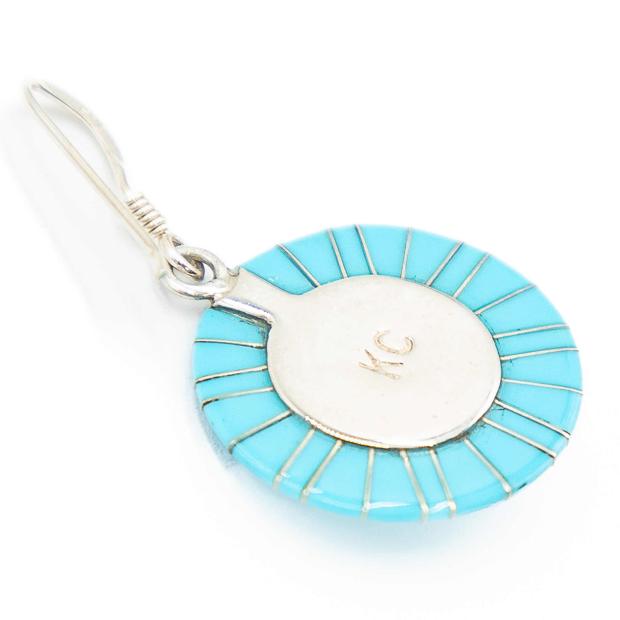 Signed KC Zuni Sterling Turquoise Inlay Earrings 4g