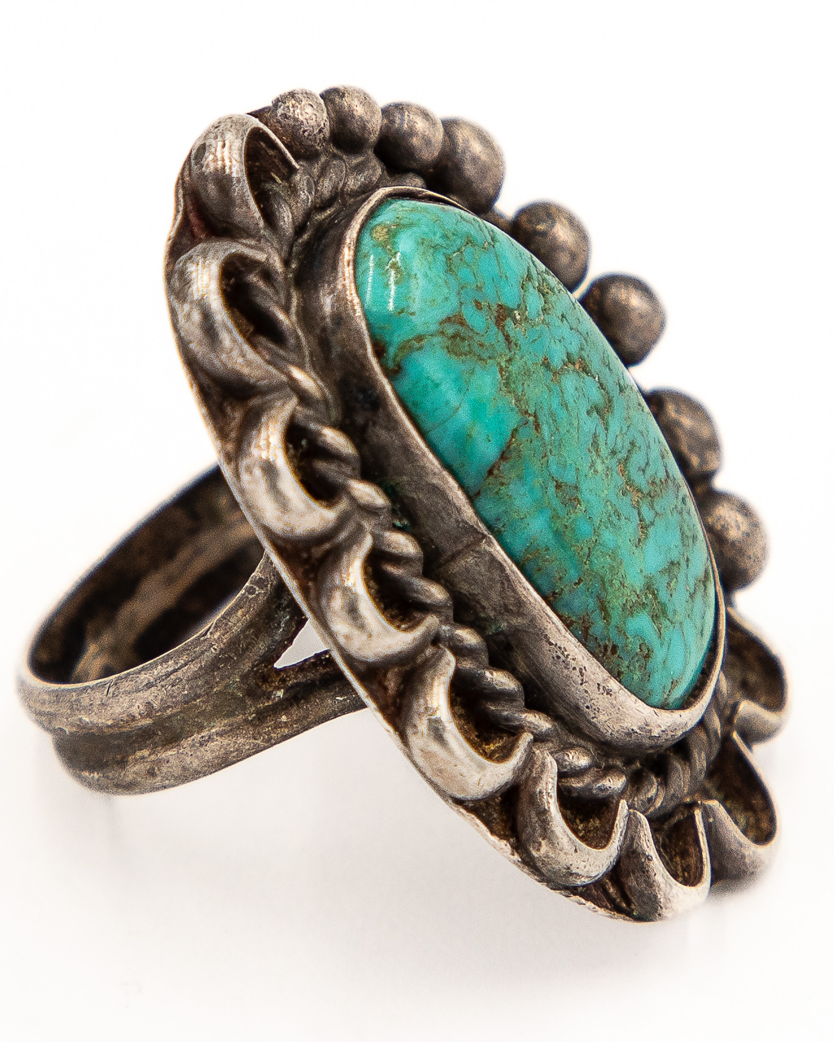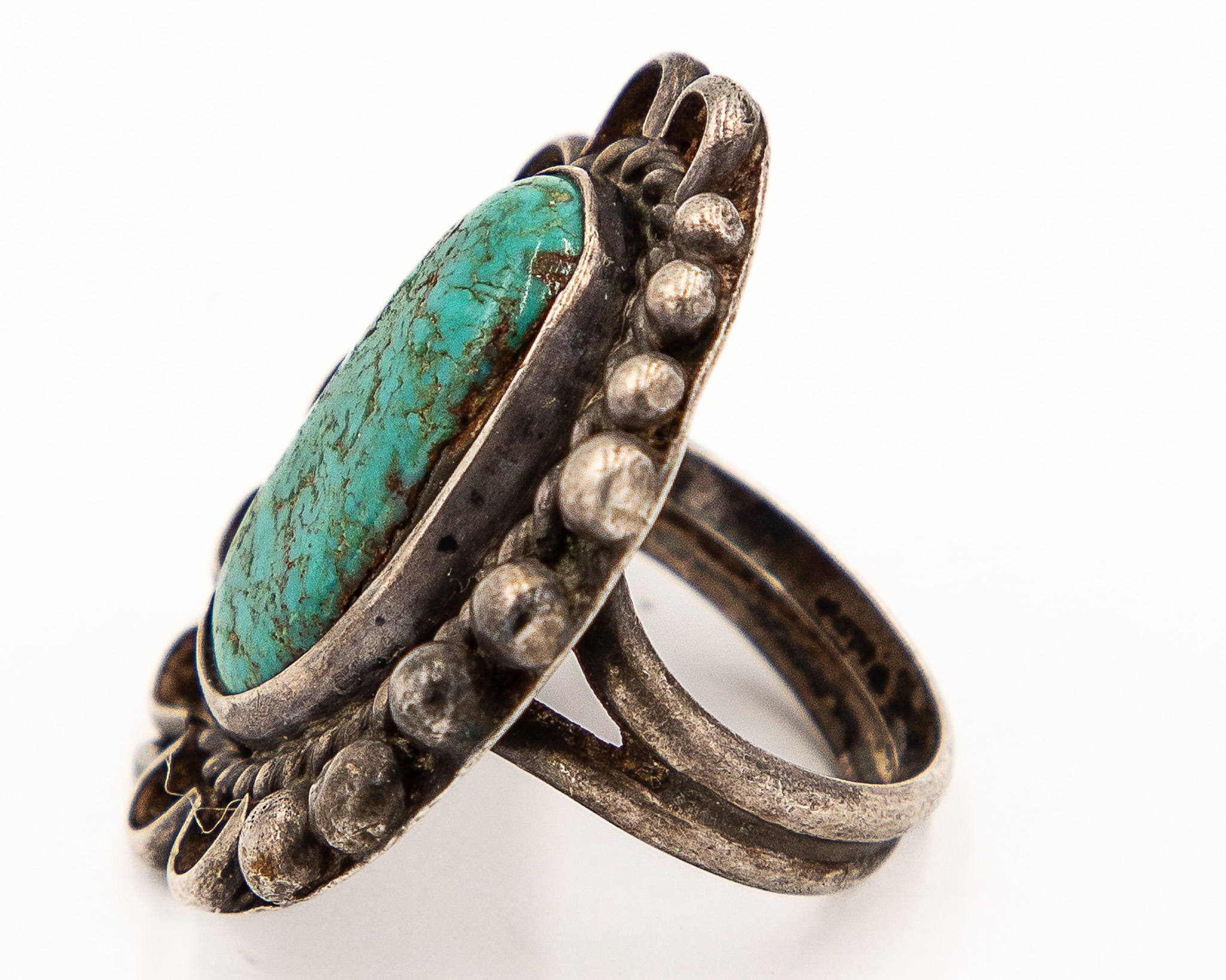 Vintage Navajo Turquoise Sterling Ring Sz. 6.5, 13g