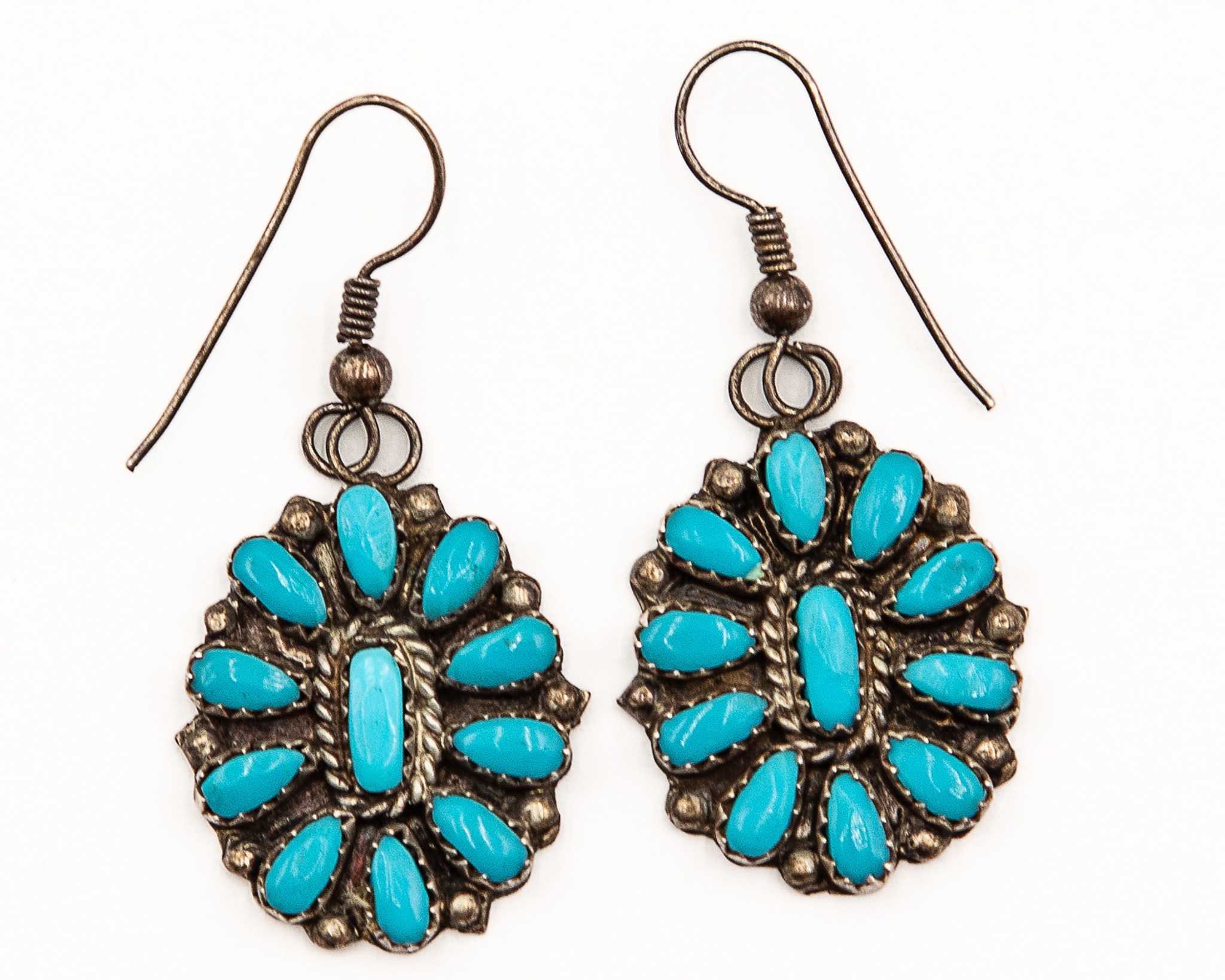 Vintage Navajo Sleeping Beauty Turquoise Cluster Dangle Earrings 6g