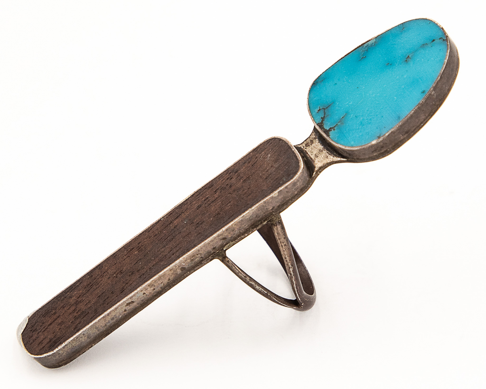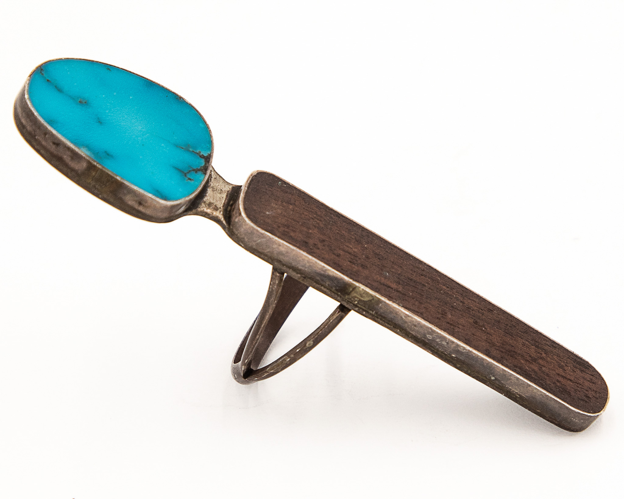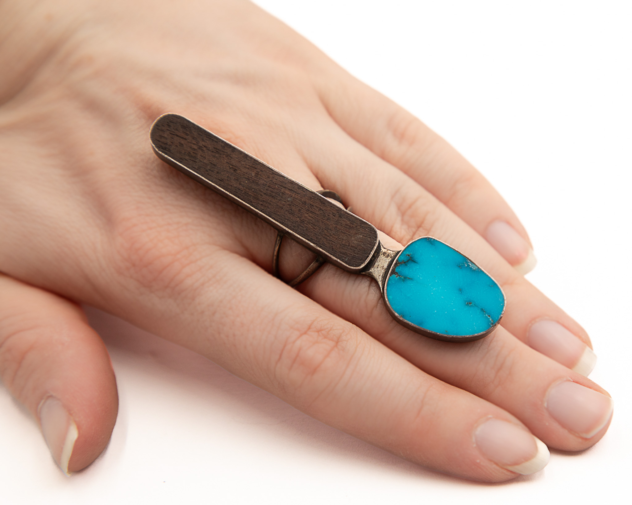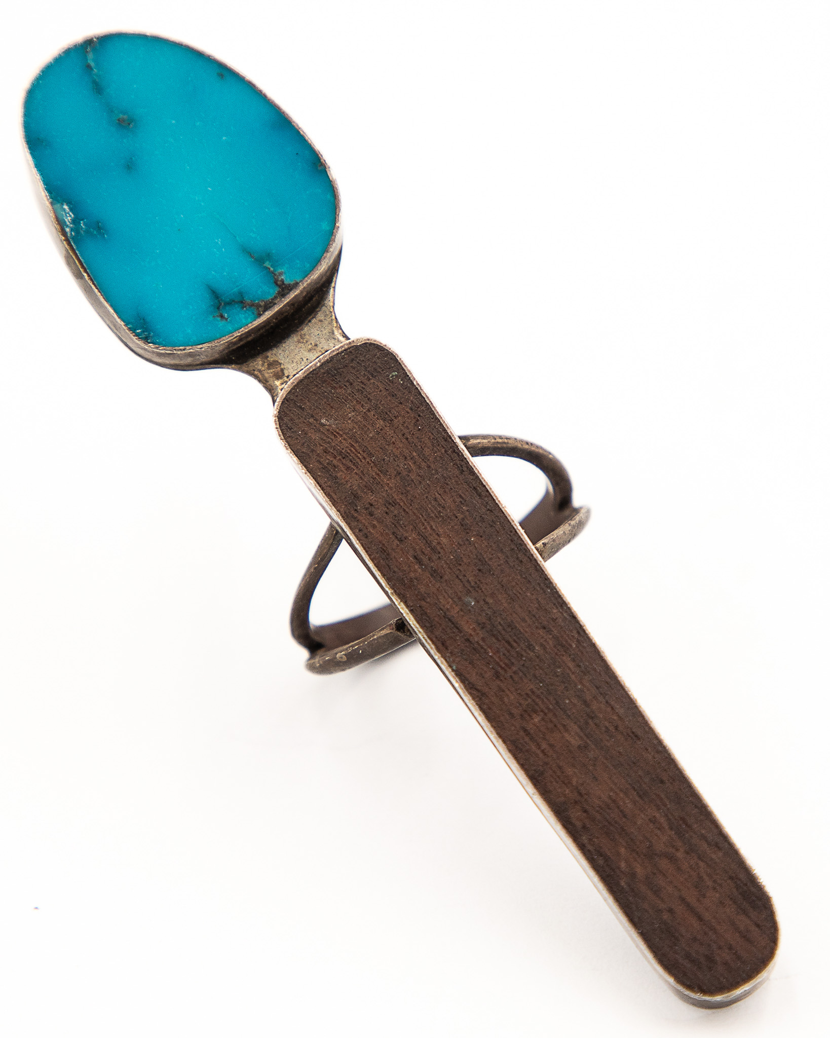 Vintage Navajo Long Wood Turquoise Long Ring Sz. 8, 16g