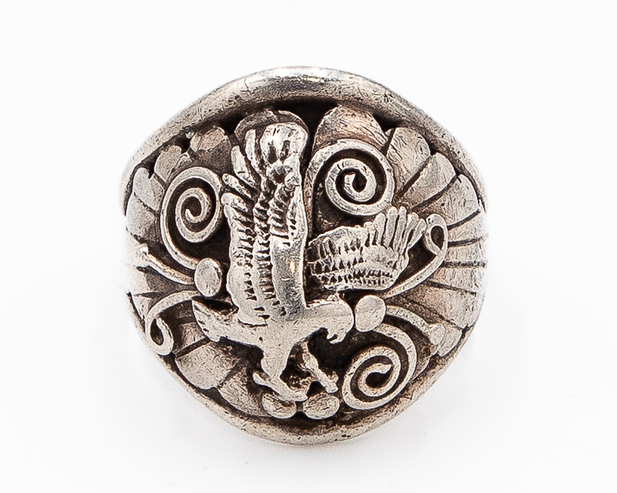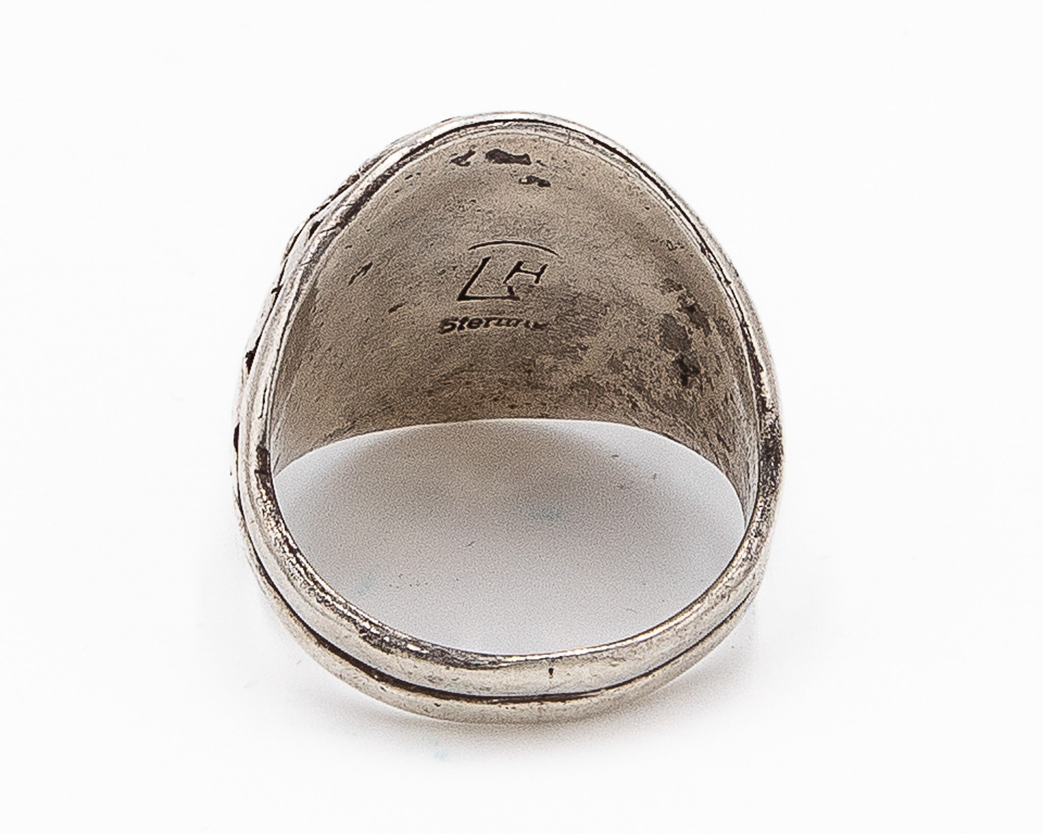 Signed LH Navajo Sterling Eagle Ring Sz. 13, 12.5g