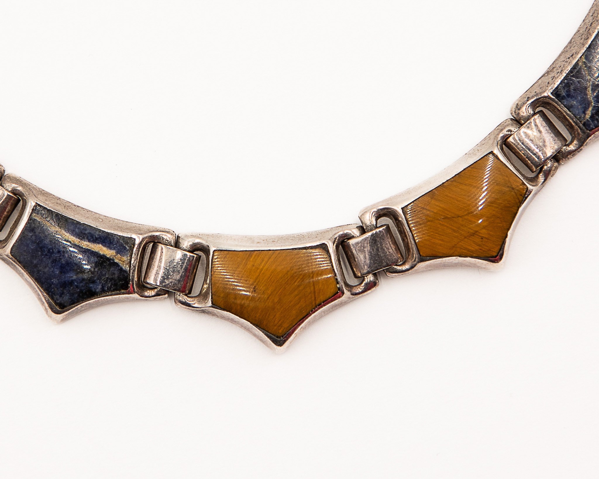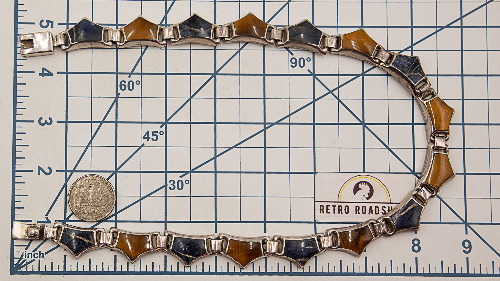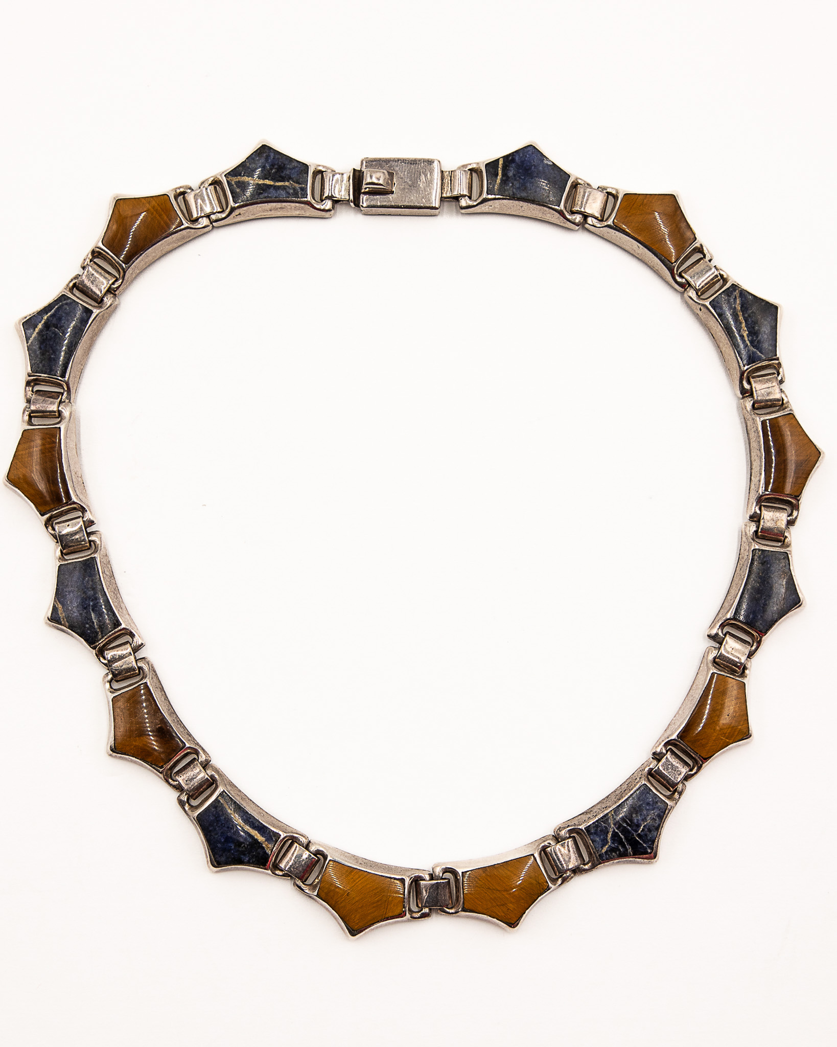 Signed TL-63 Taxco Mexico Sterling Tigers Eye Lapis Necklace 106.5g