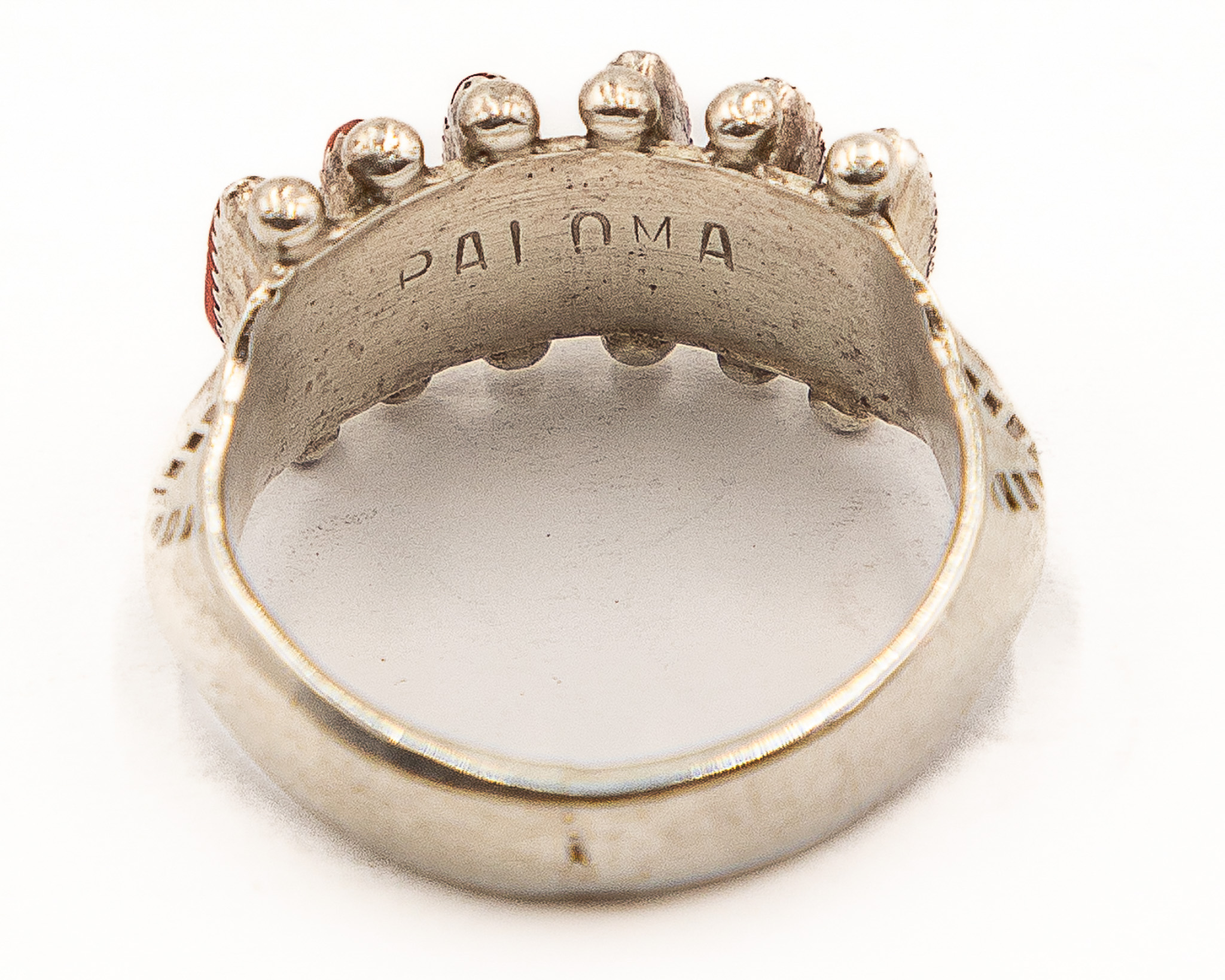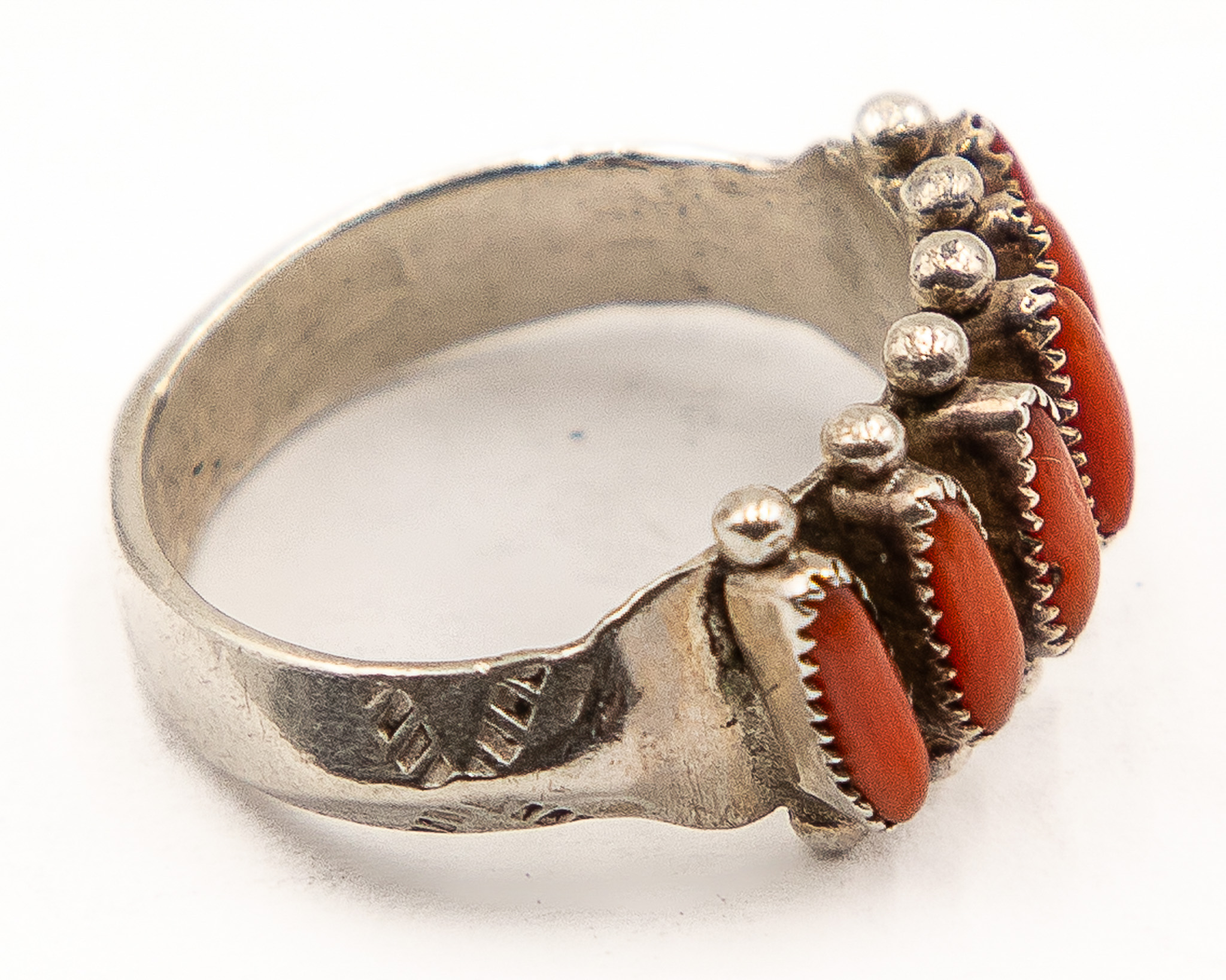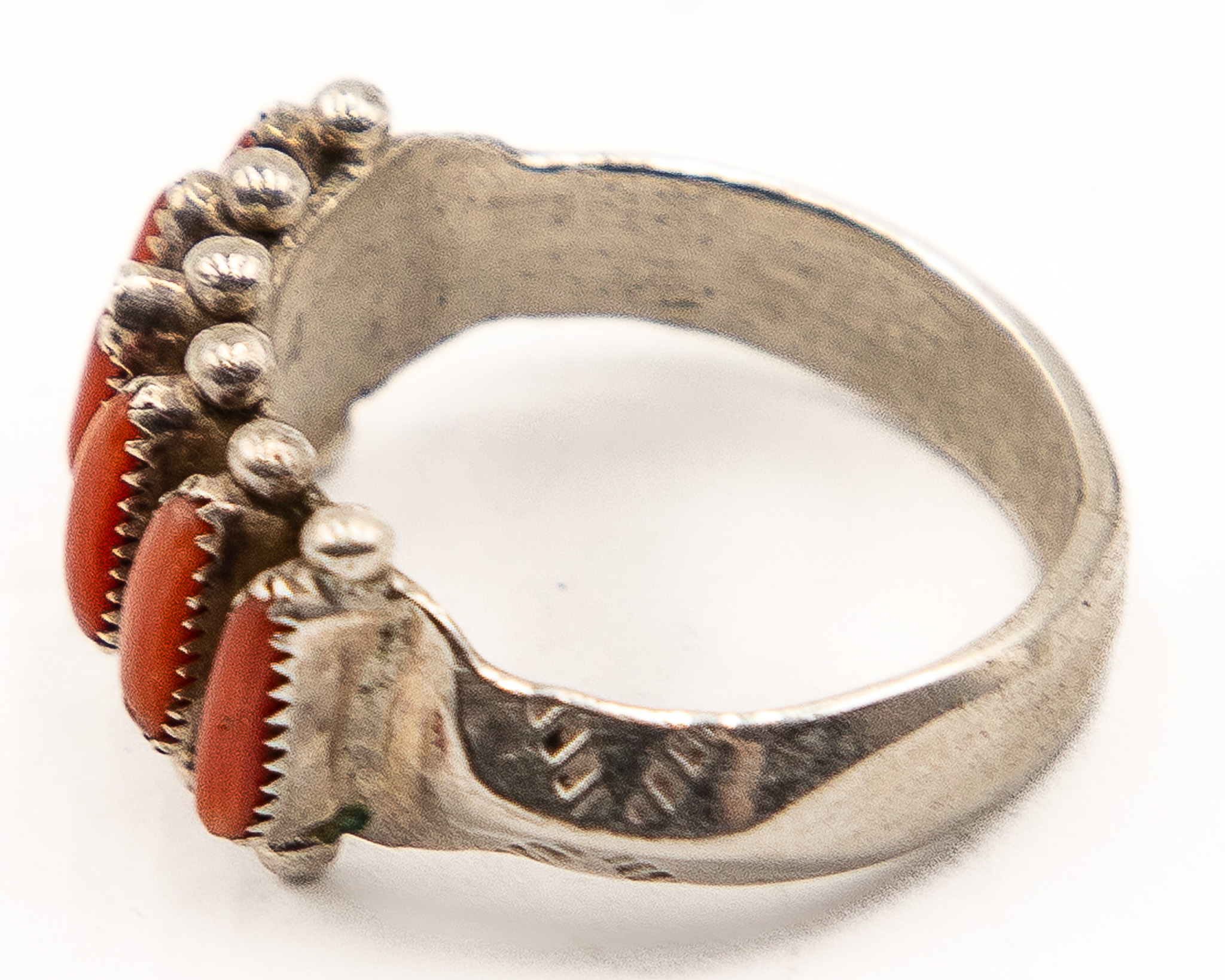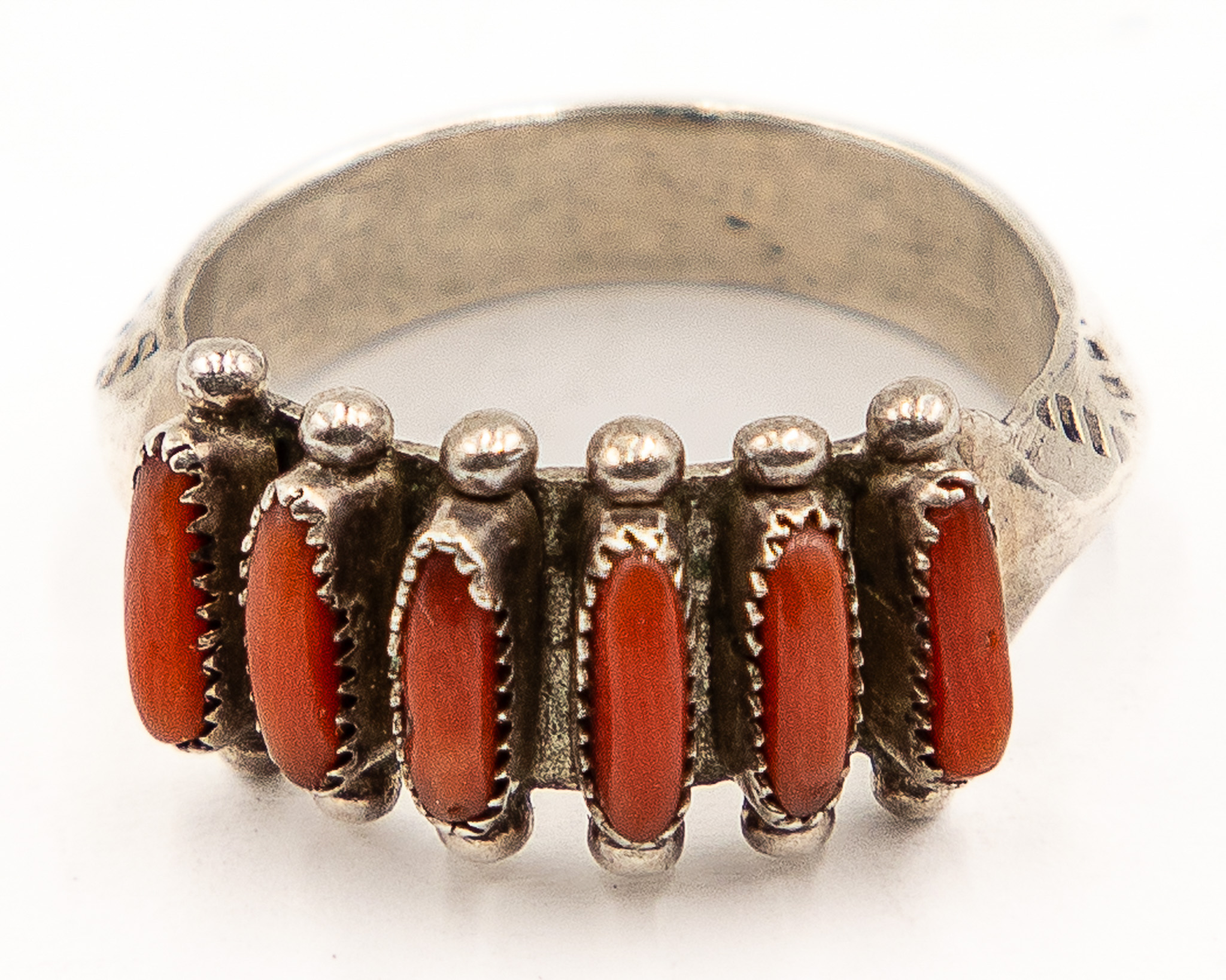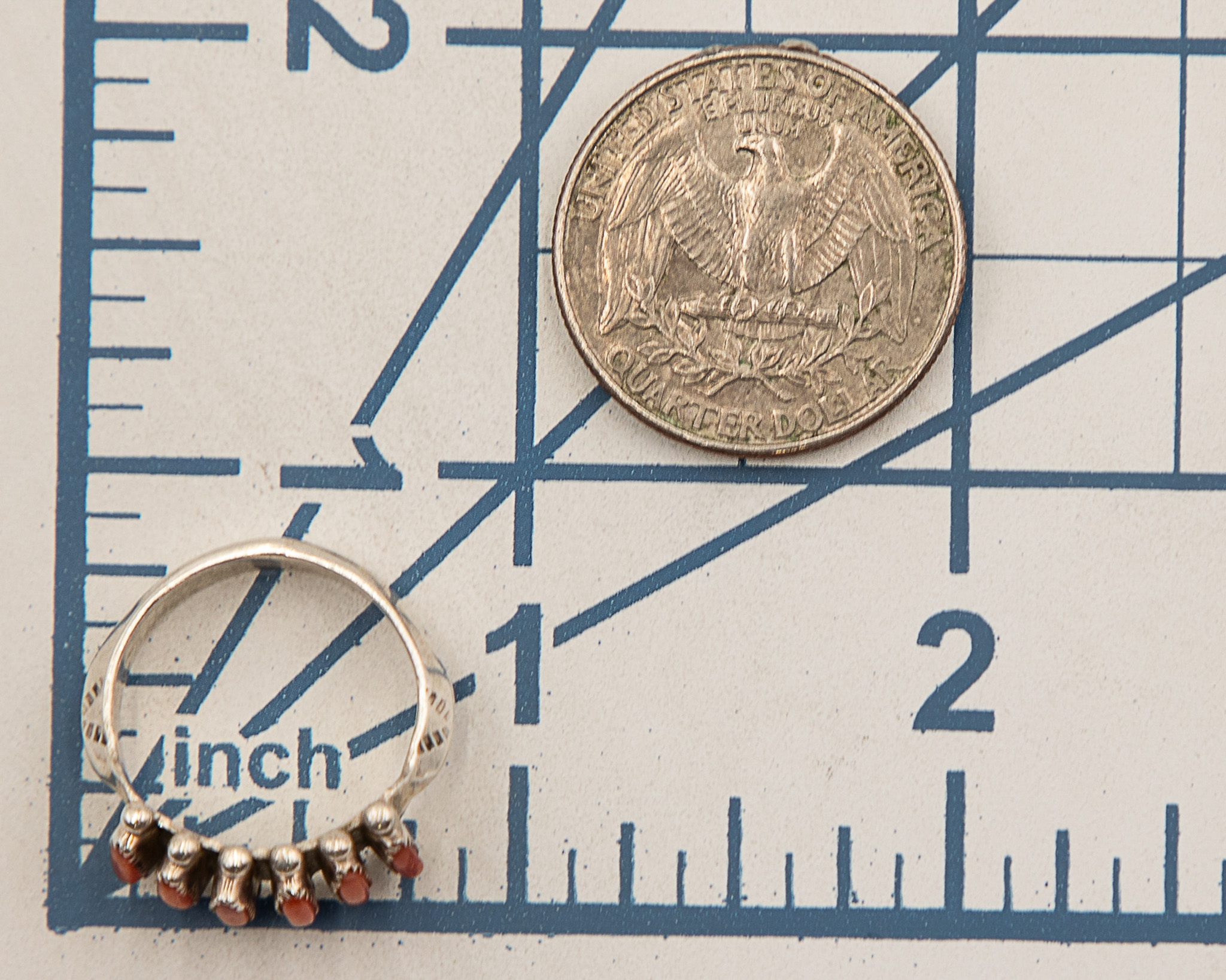 Janice Paloma Sterling Coral Needlepoint Stone Ring Sz. 7, 5g