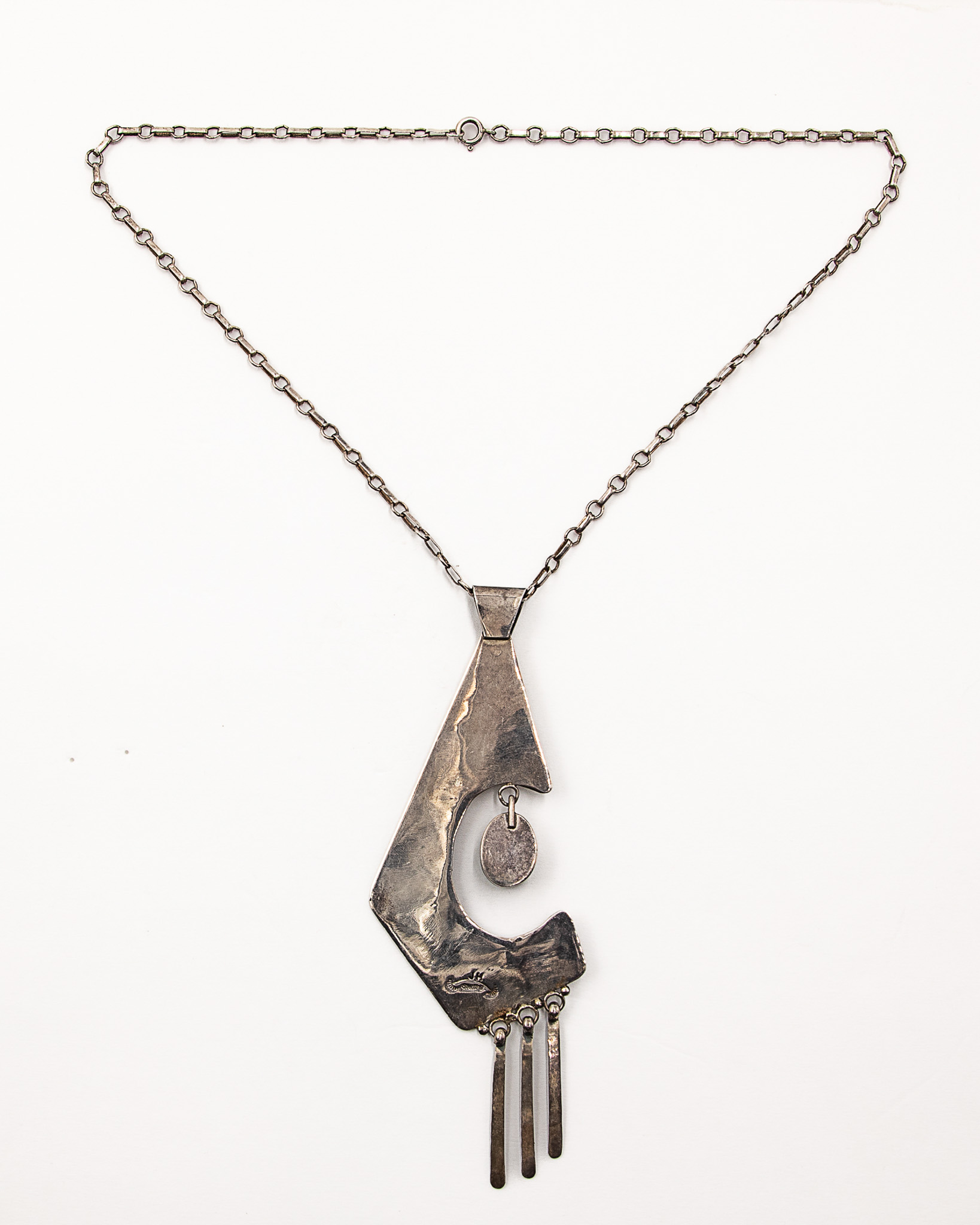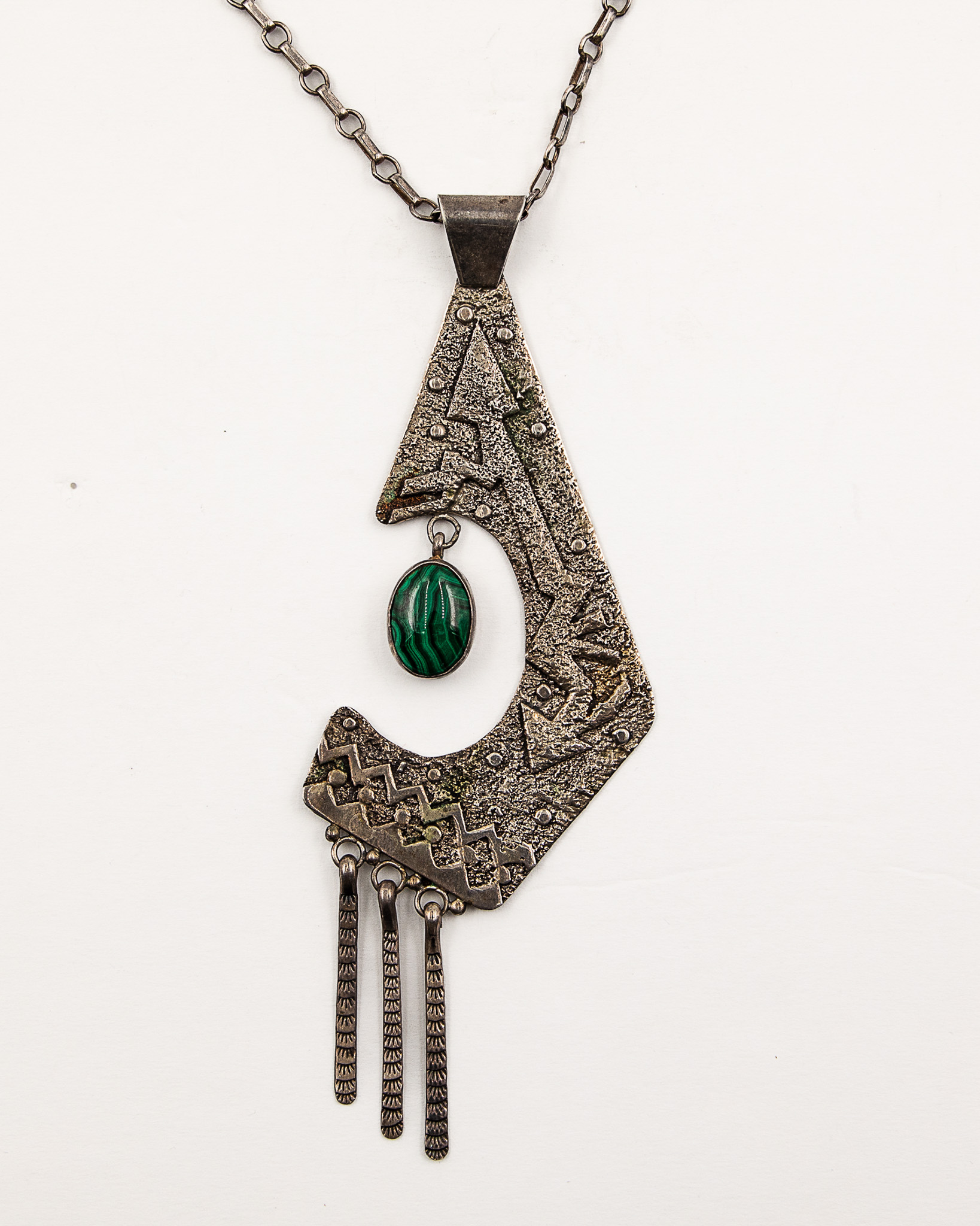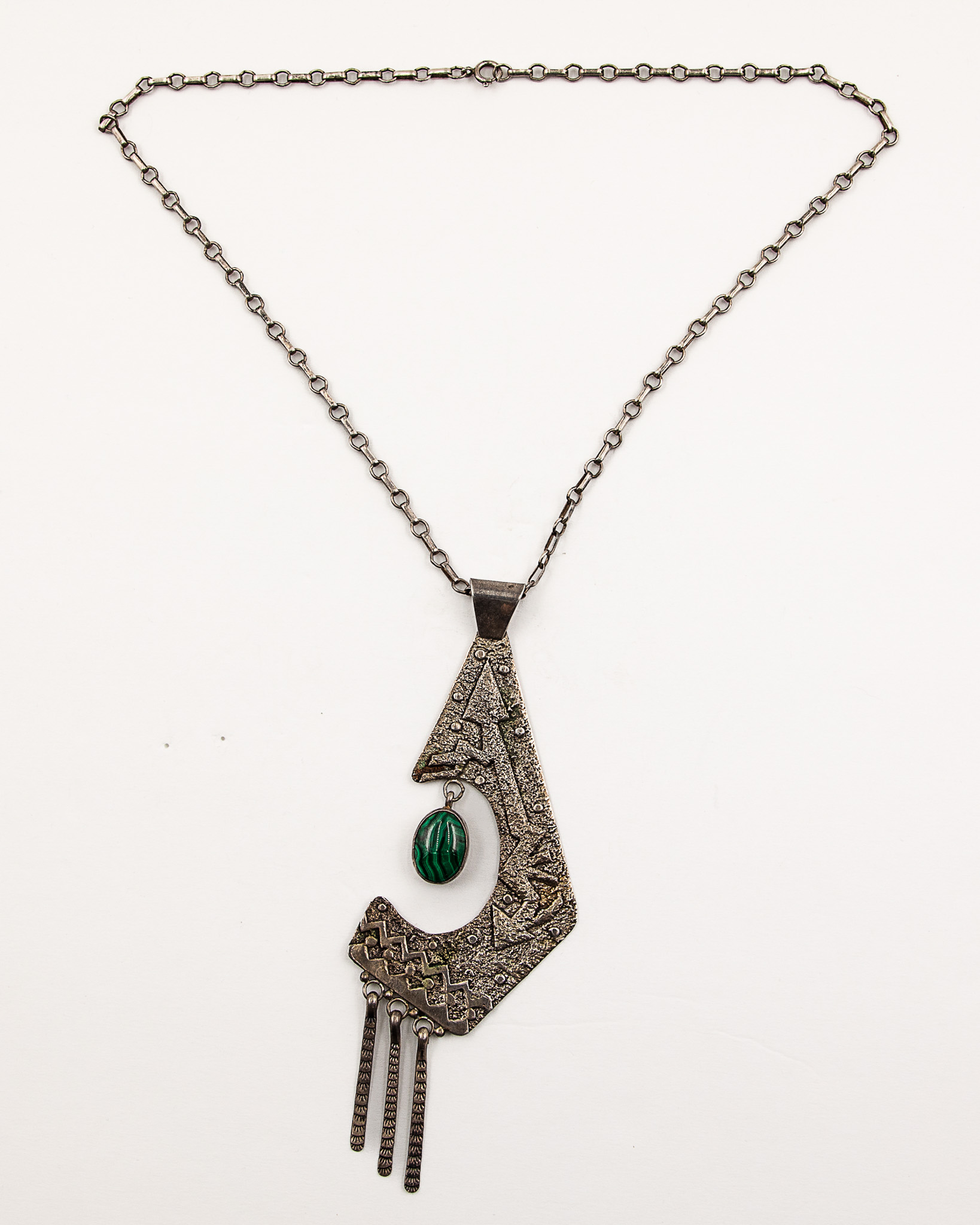 Signed JH Navajo Sterling Malachite Necklace And Pendant 50g