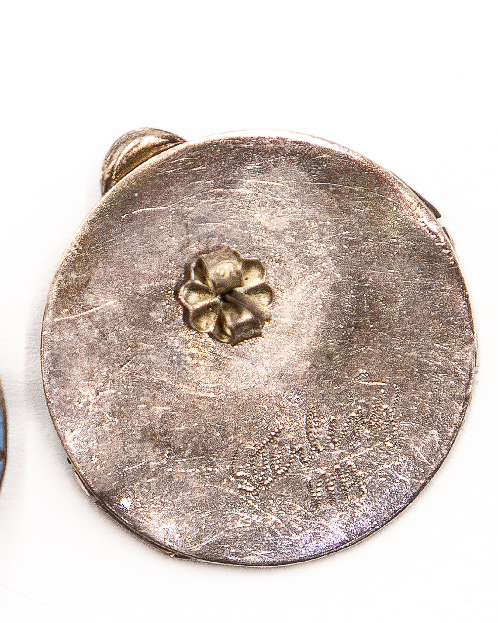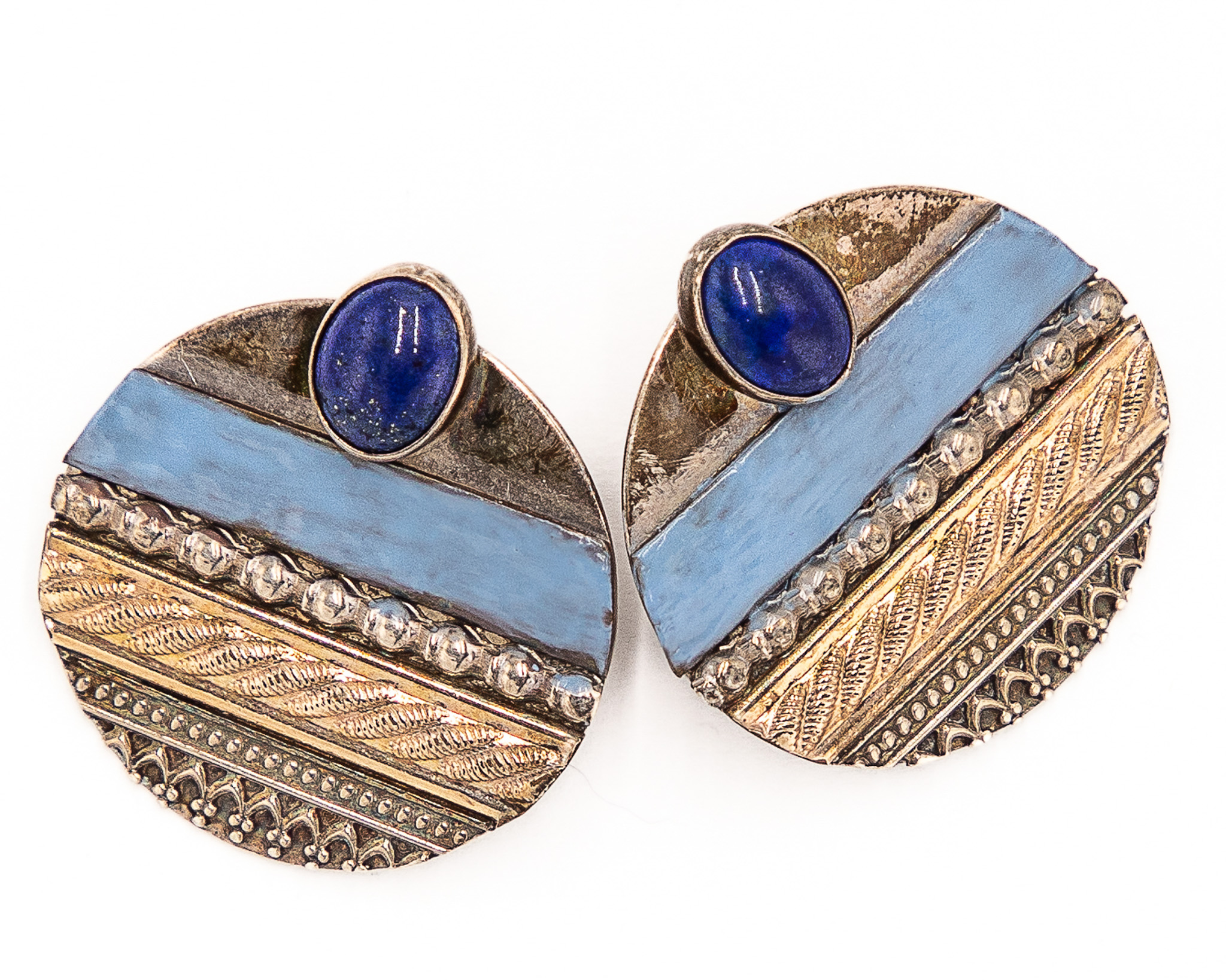 Signed MA Zuni Lapis Sterling Disk Earrings 11.5g