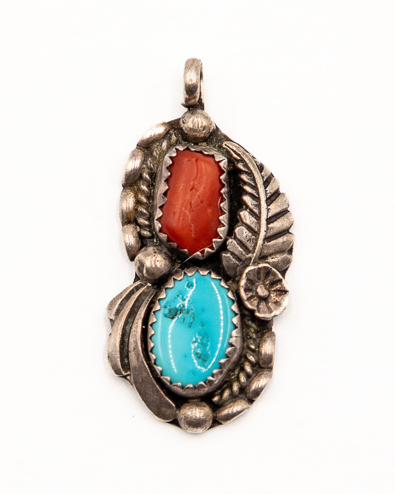 Sharon Cisco Sterling Turquoise Coral Pendant 5g