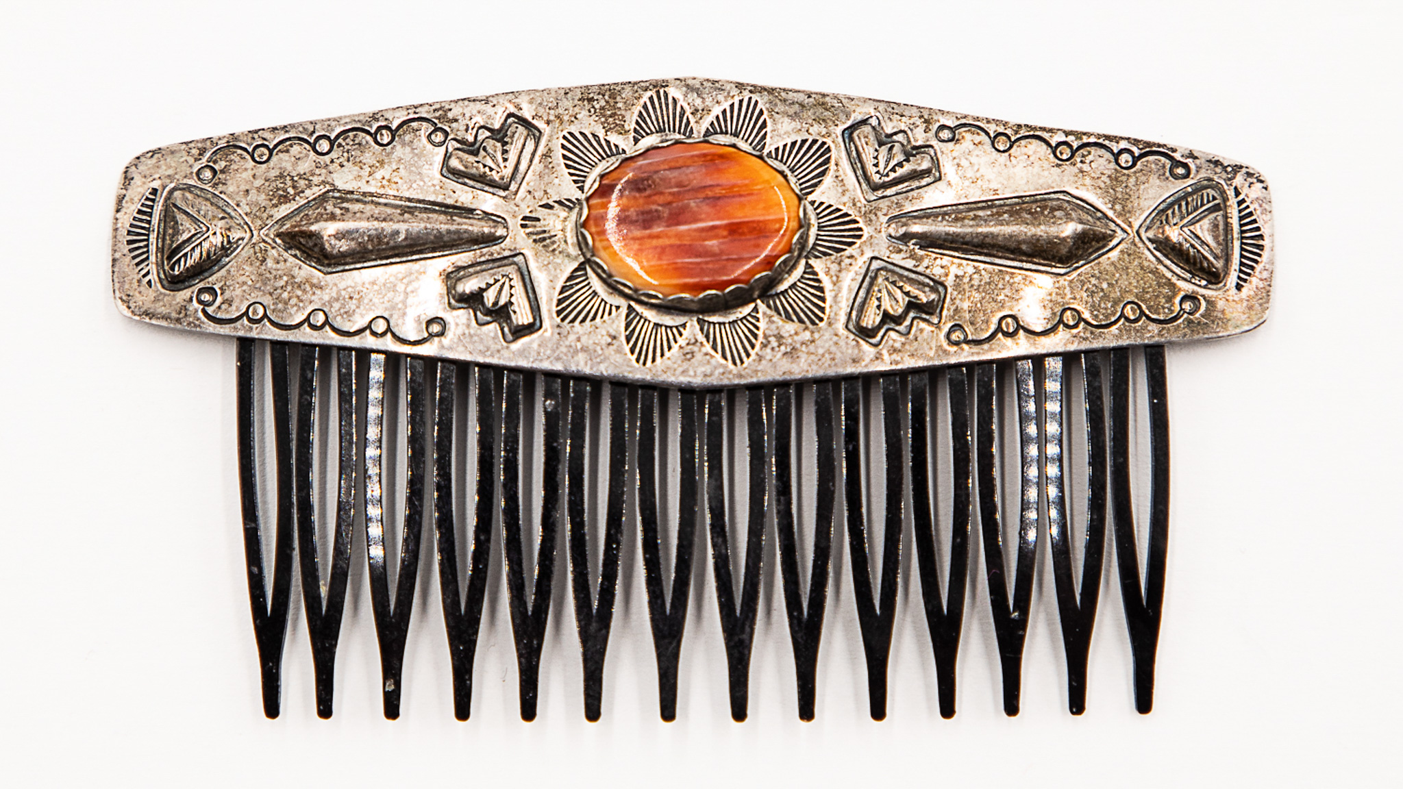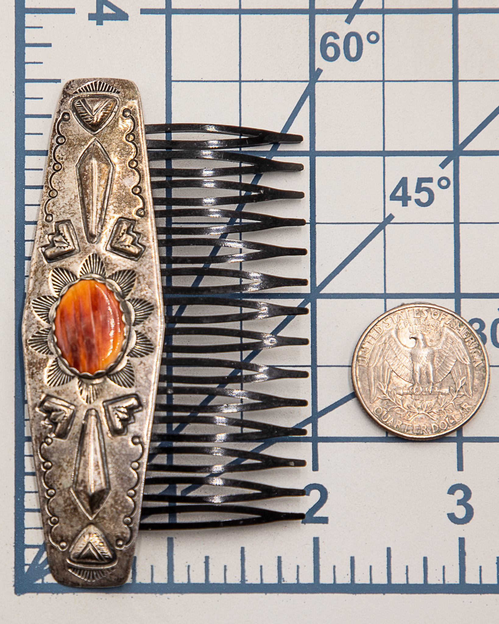 Zuni Sterling Spiny Oyster Stone Comb 16g