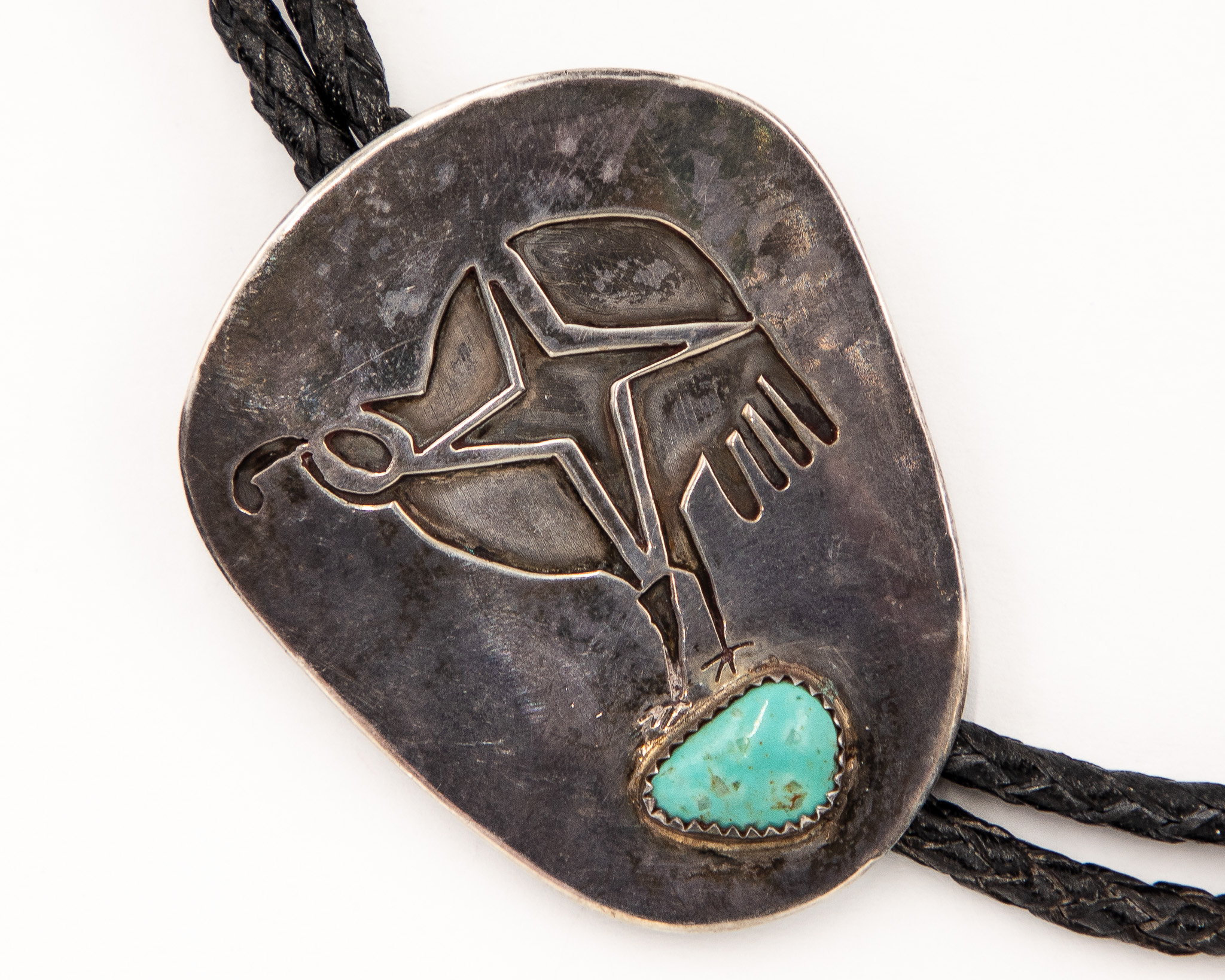 Vintage Navajo Sterling Turquoise Bolo Tie 44g