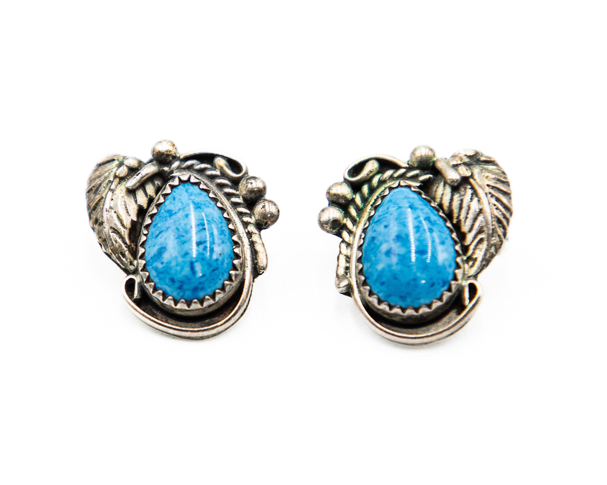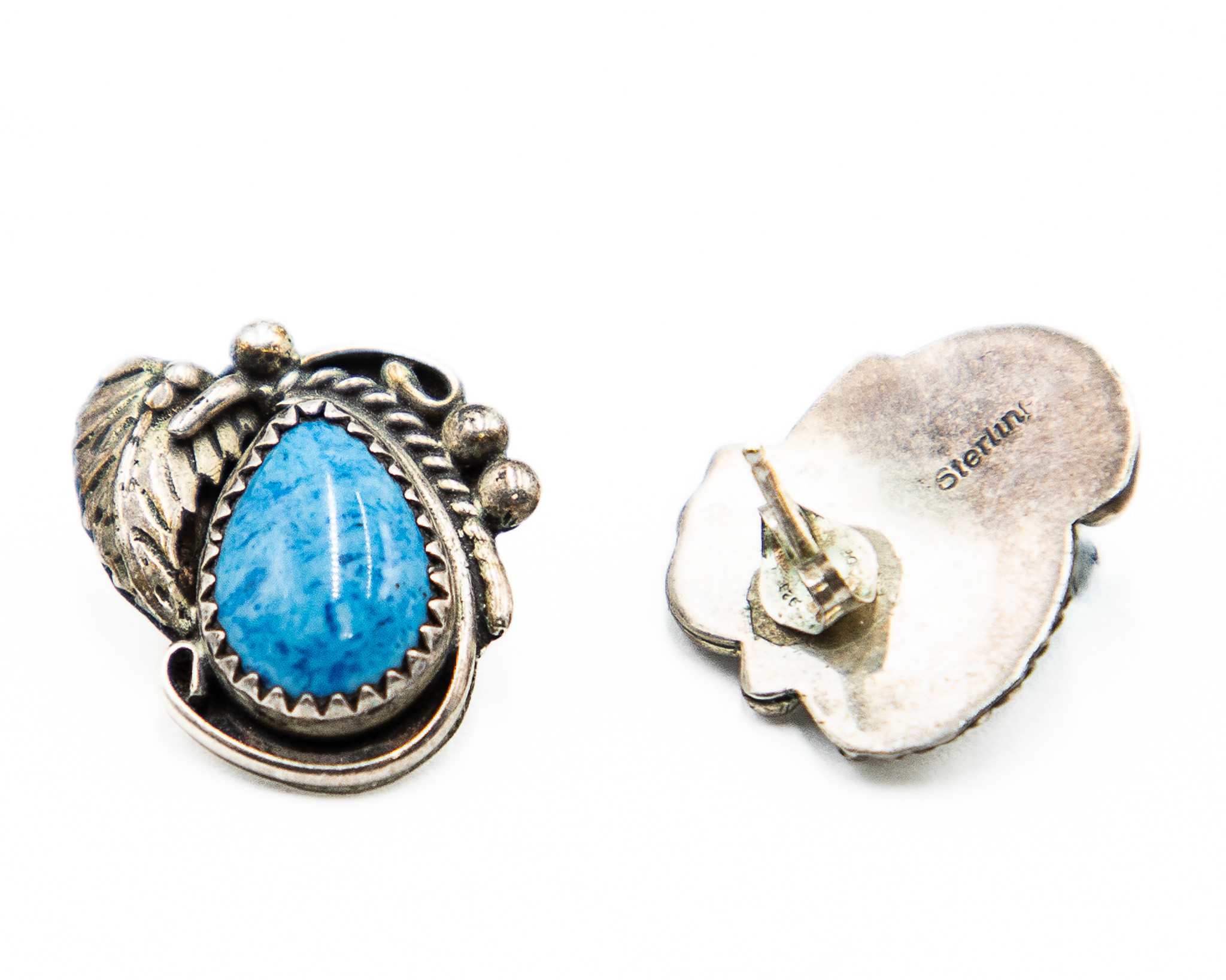 Vintage Navajo Sterling Blue Stone Earrings 6g