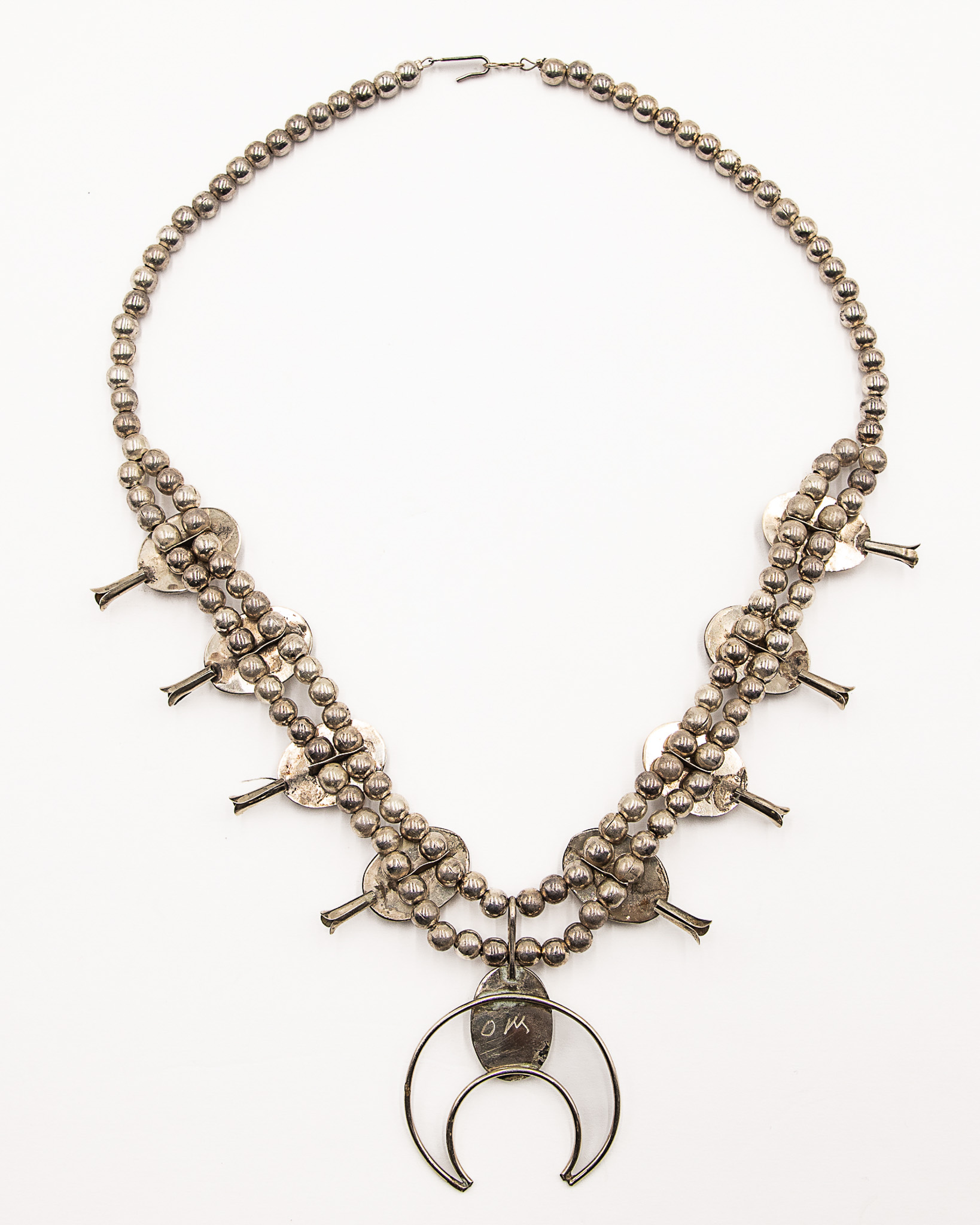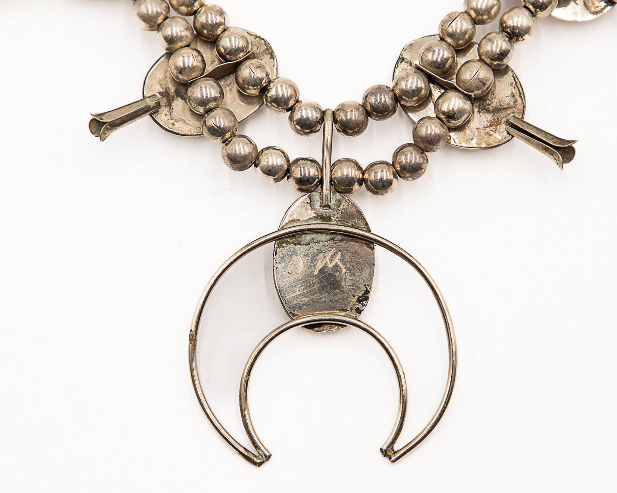 Signed DM Navajo Sterling Squash Blossom Necklace