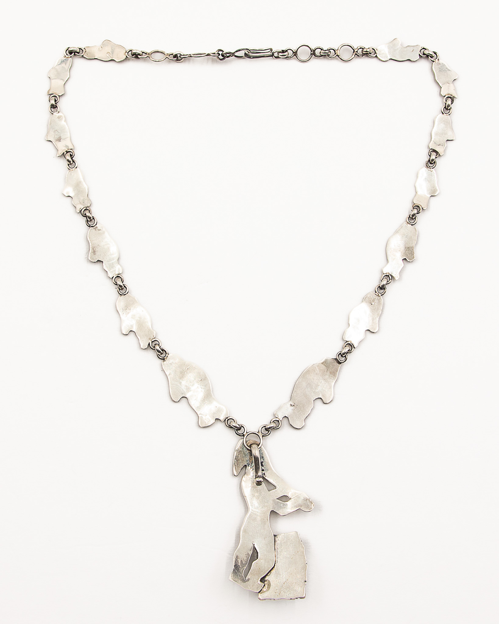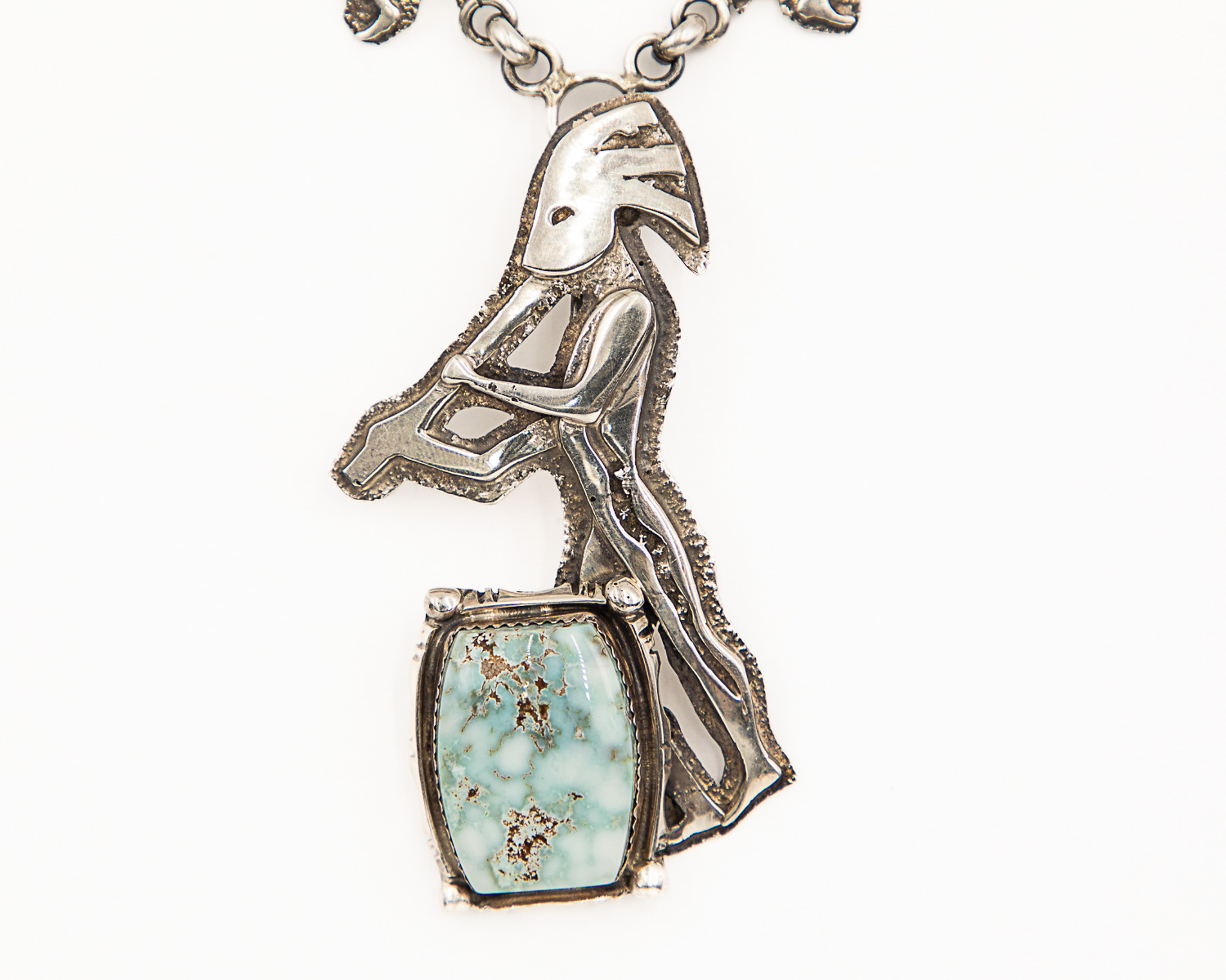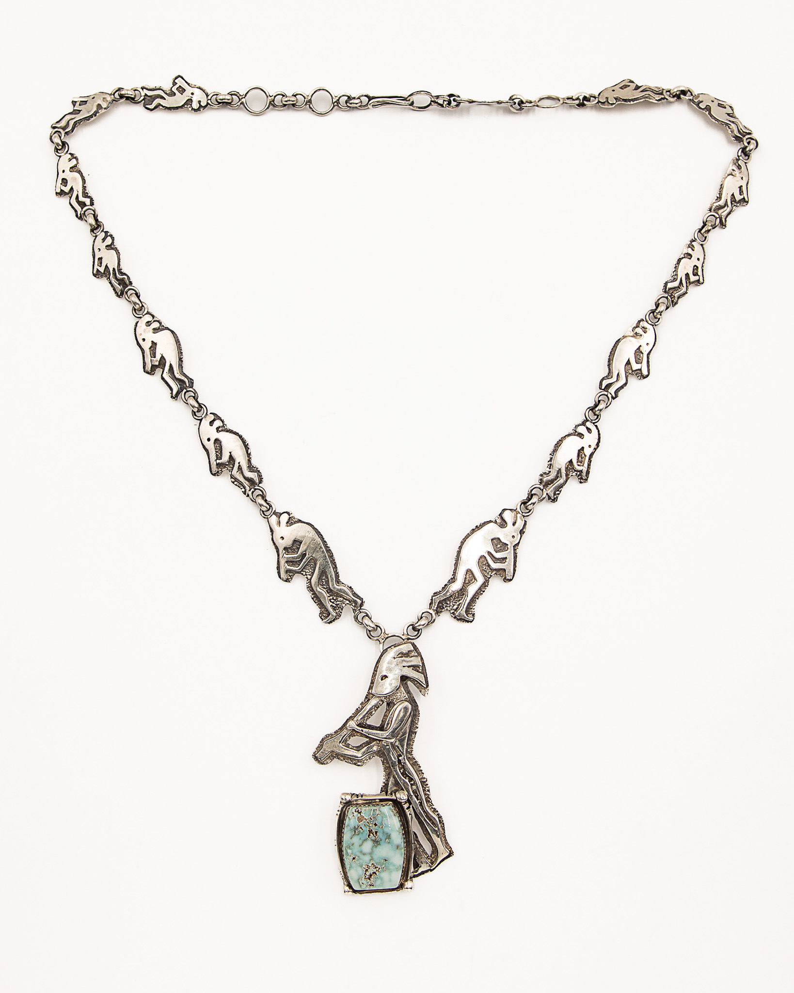 Vintage Navajo Sterling White Blue Tinted Stone Kokopelli Necklace 76g