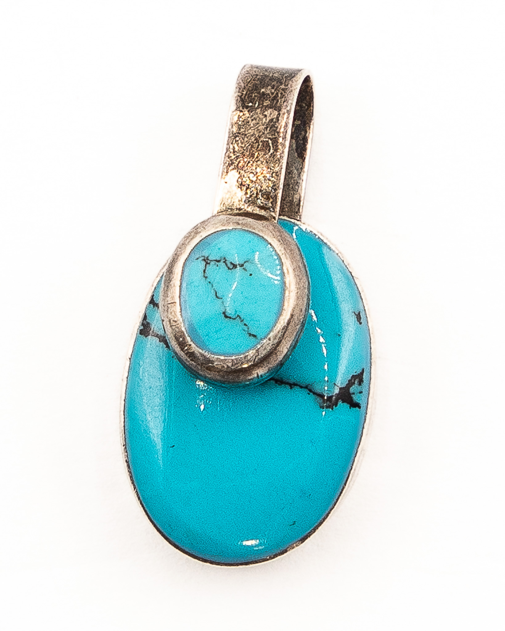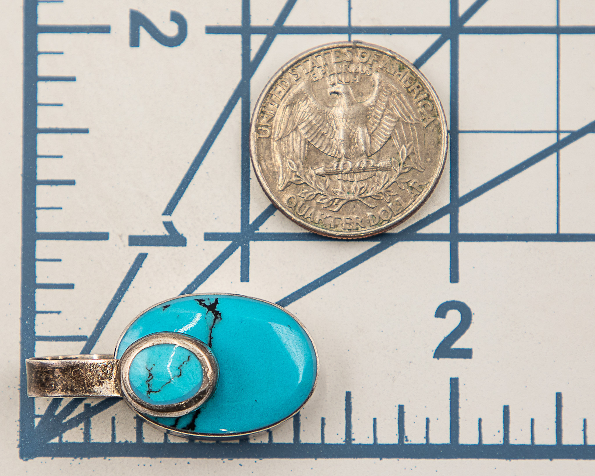 Signed TA-182 Taxco Mexico Sterling Turquoise Pendant 14g