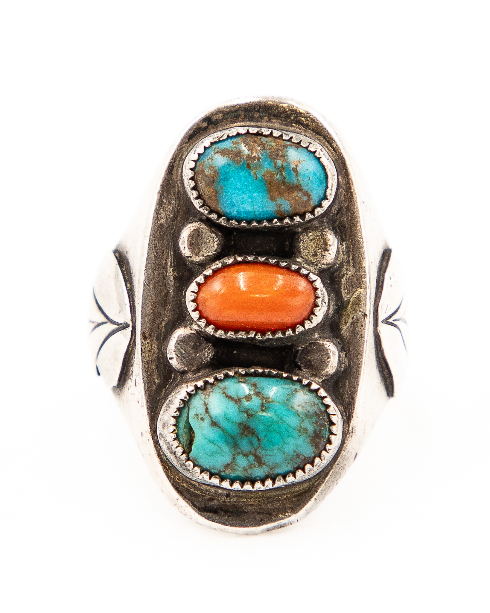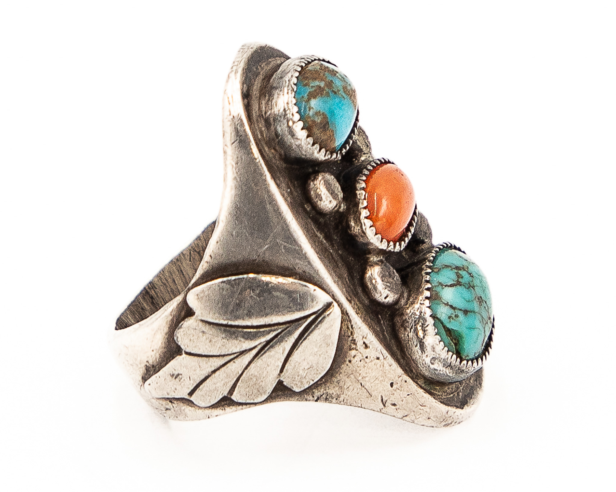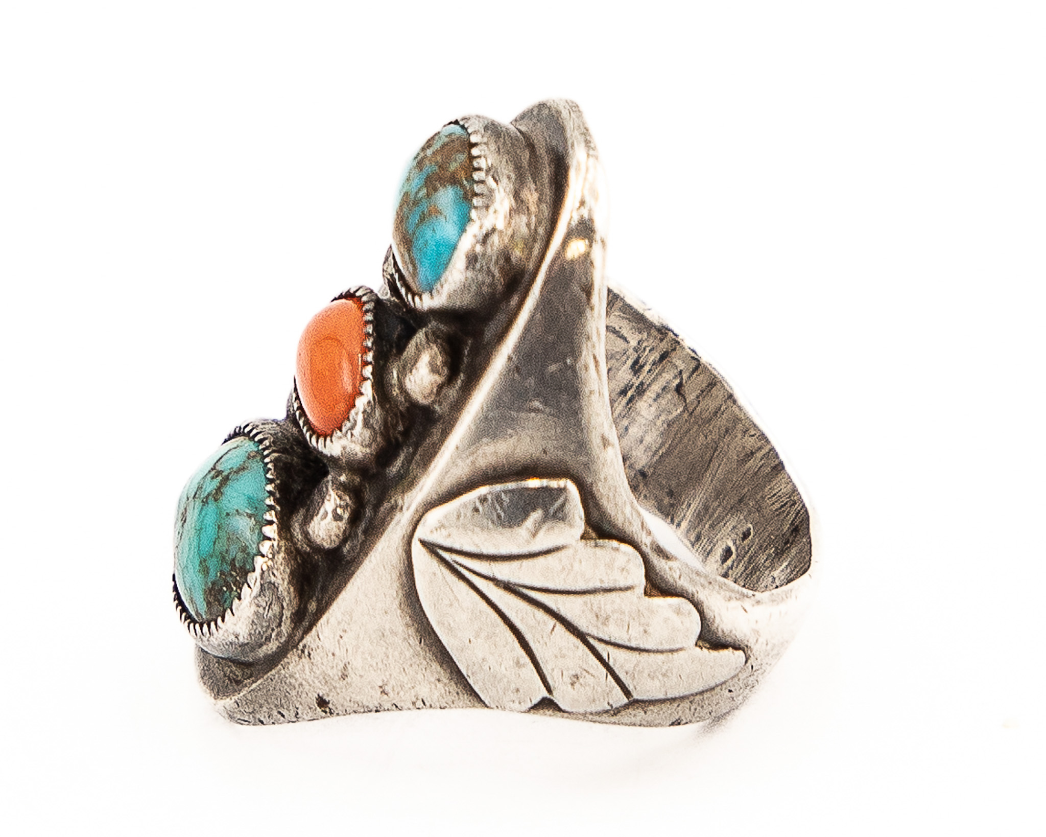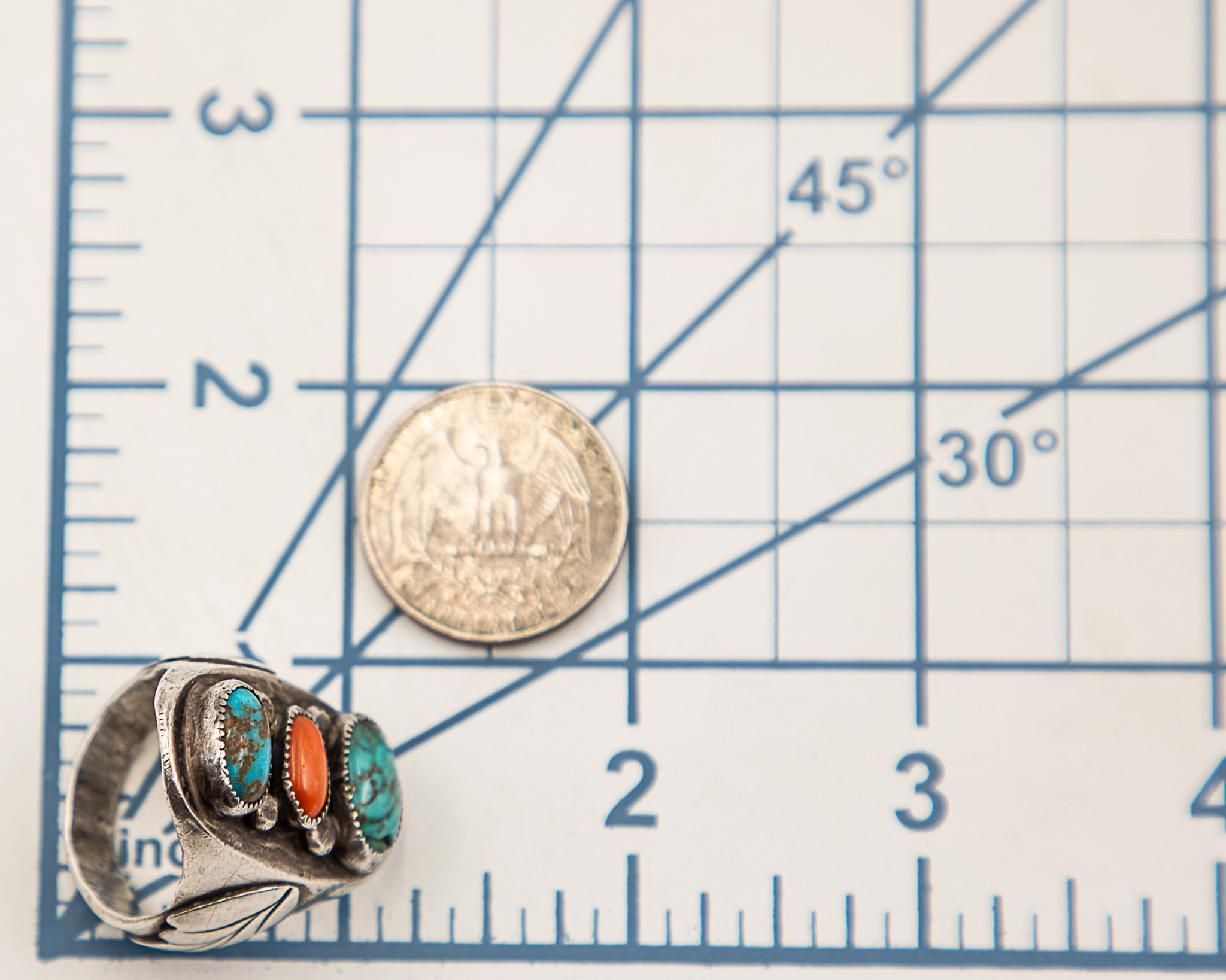 Vintage Navajo Sterling Turquoise Coral Stone Ring Sz. 10.75, 23.5g