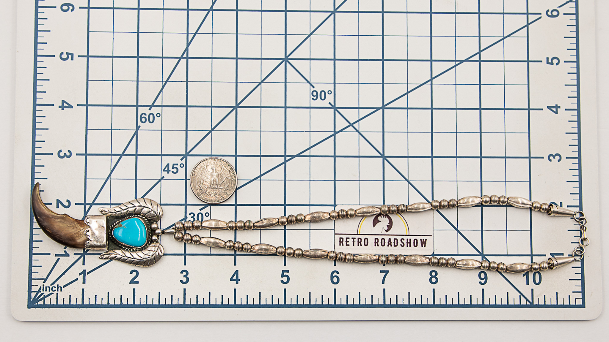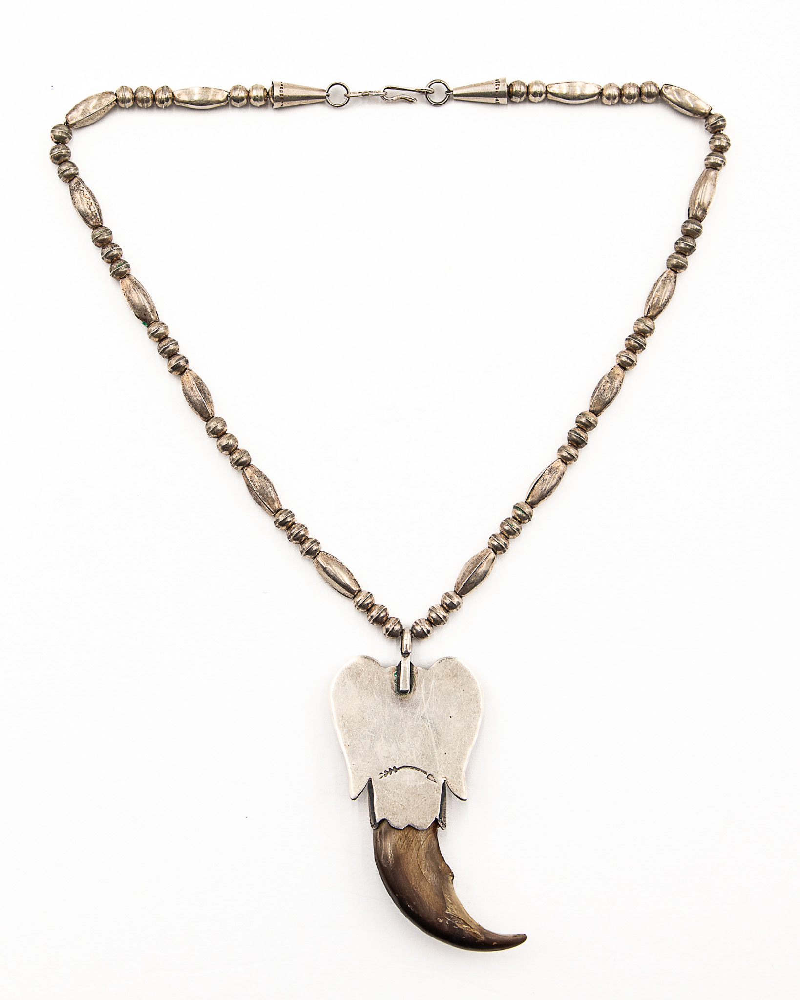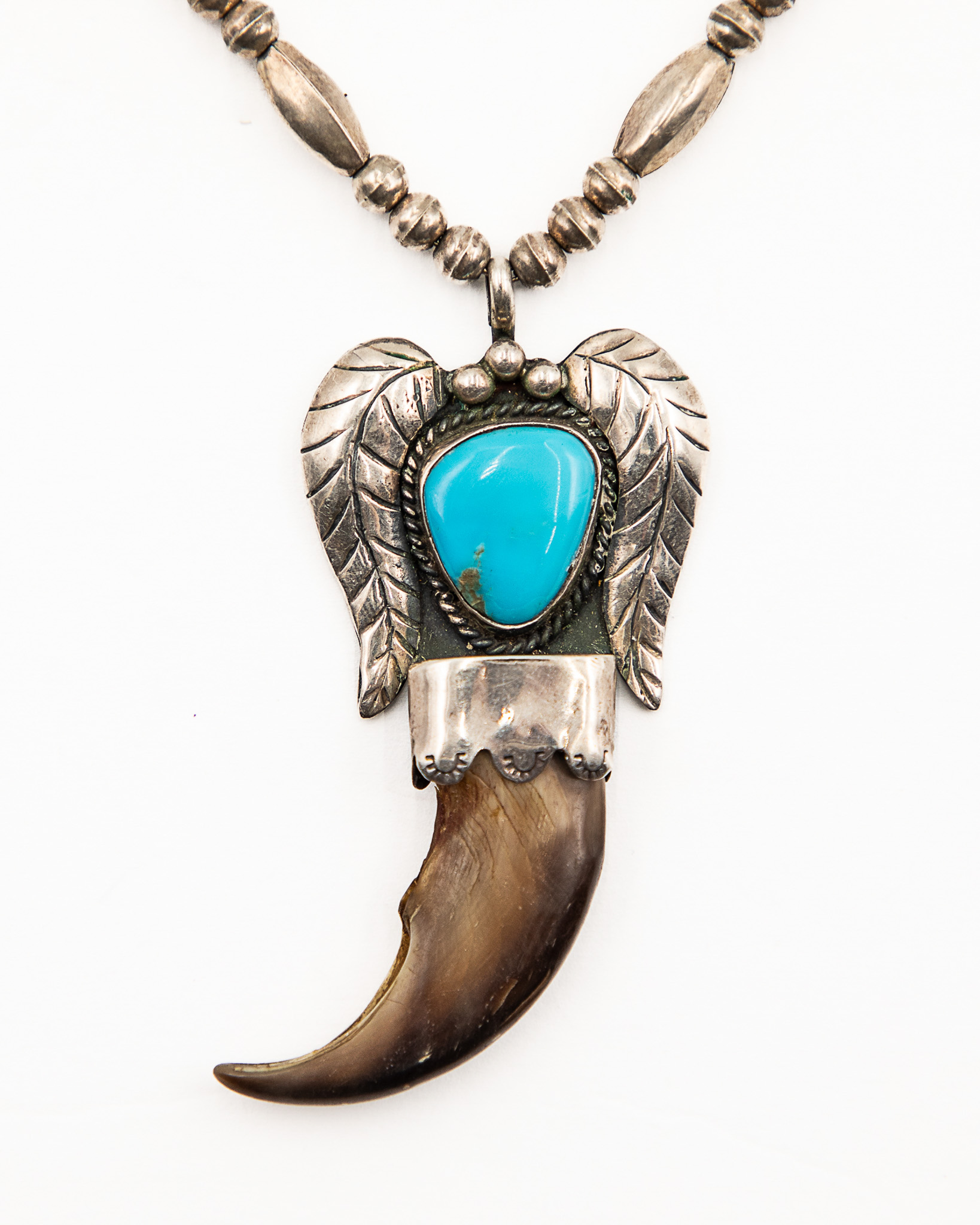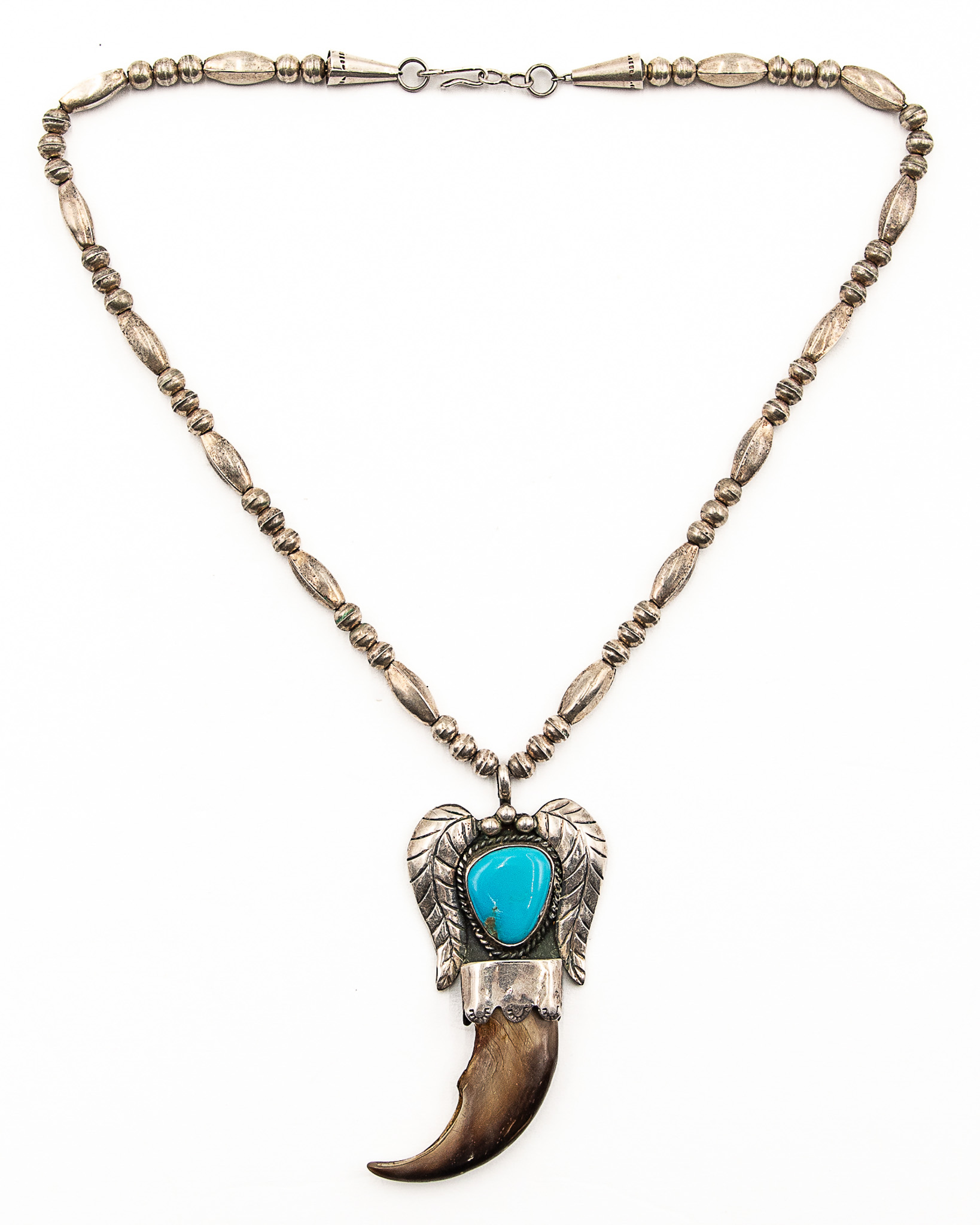 Signed Navajo Sterling Turquoise Bear Claw Necklace 30g-Bent arrow pictograph signature