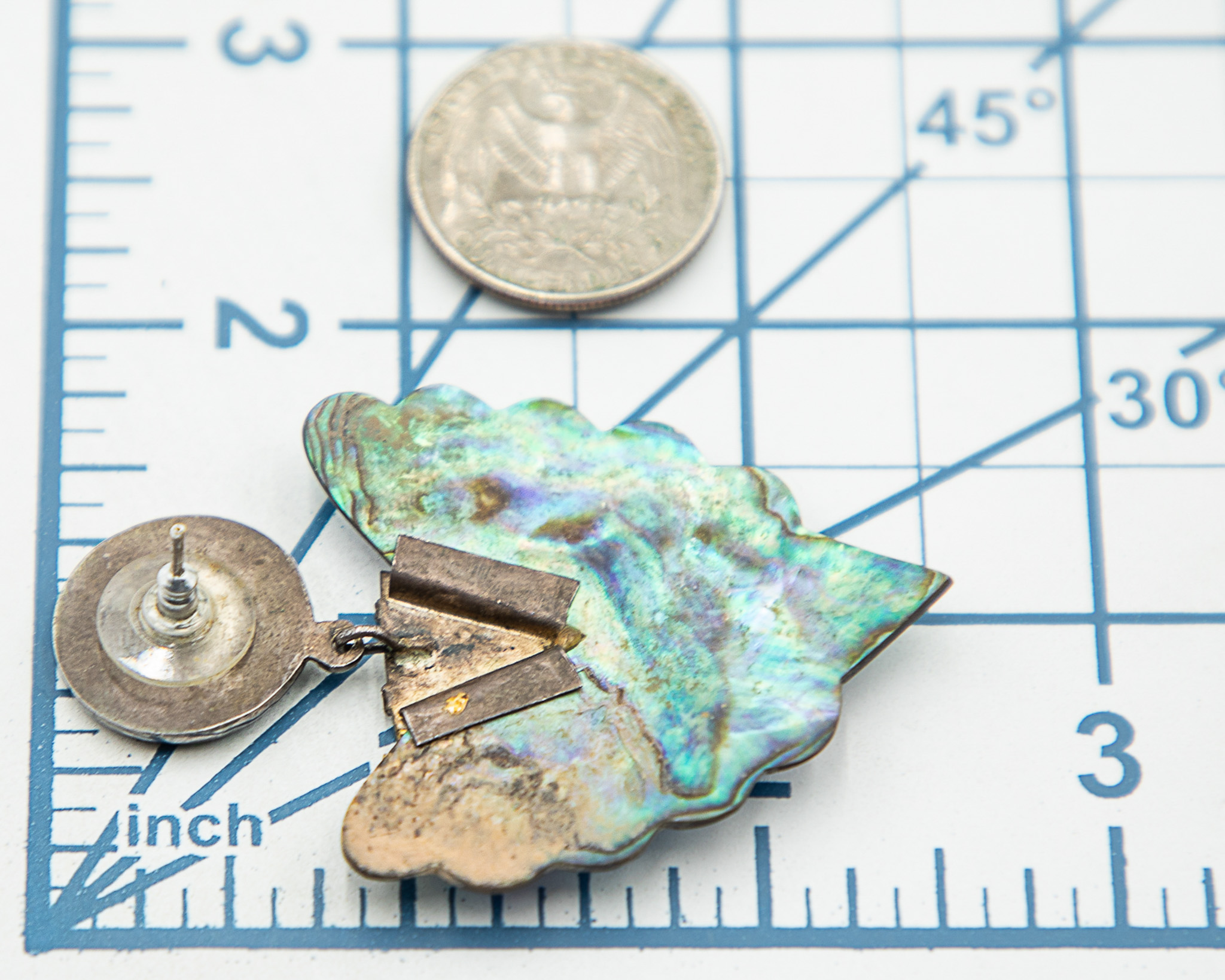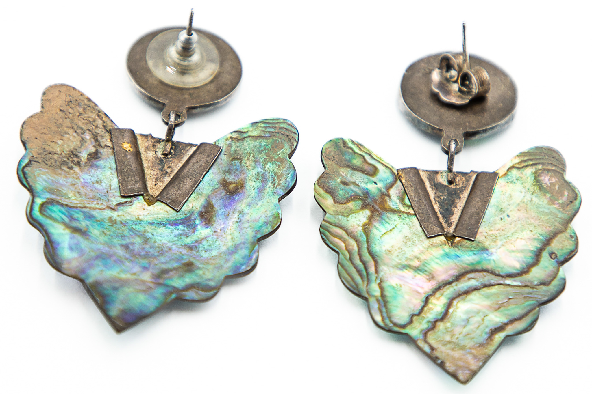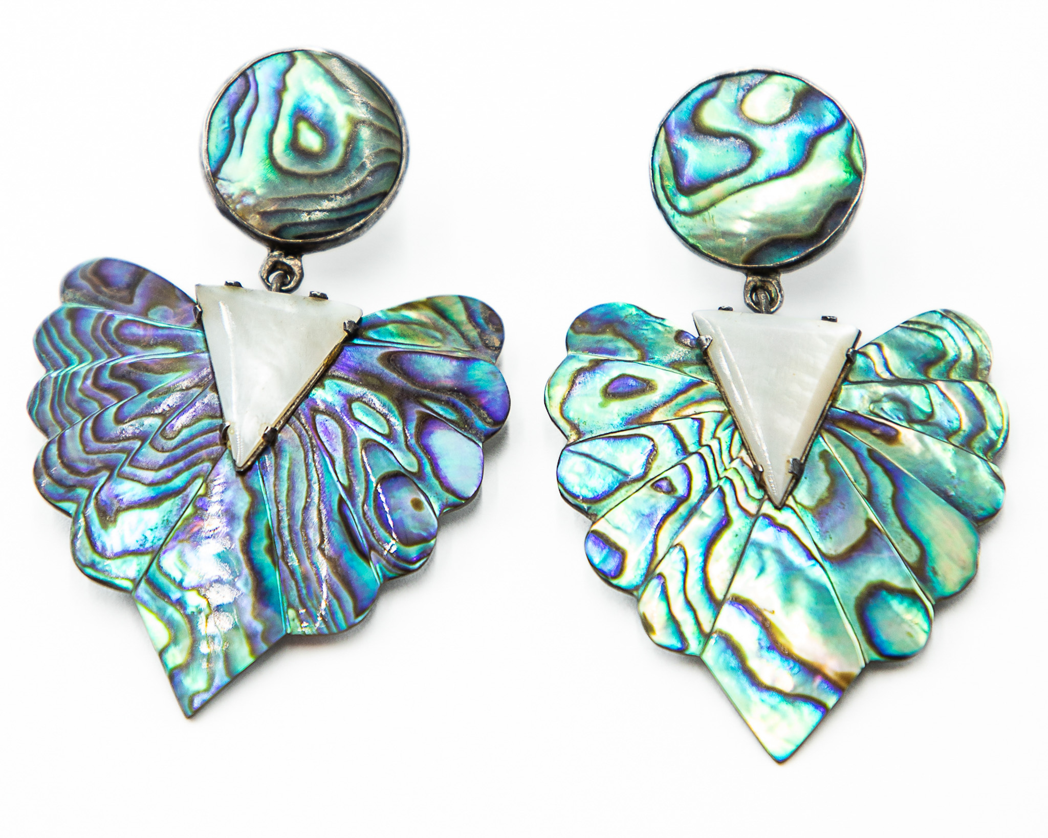 Vintage Abalone Mother Of Pearl Sterling Earrings 16g