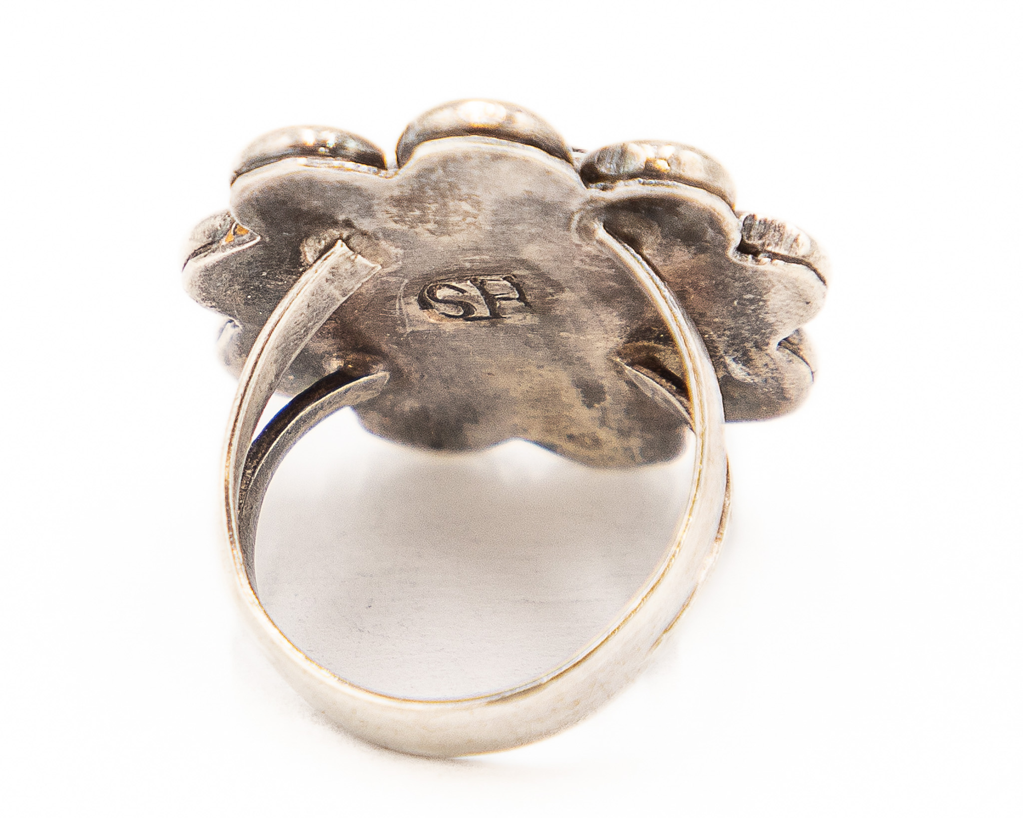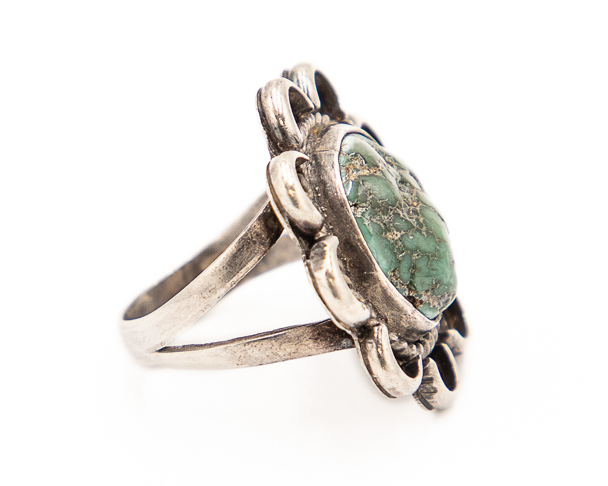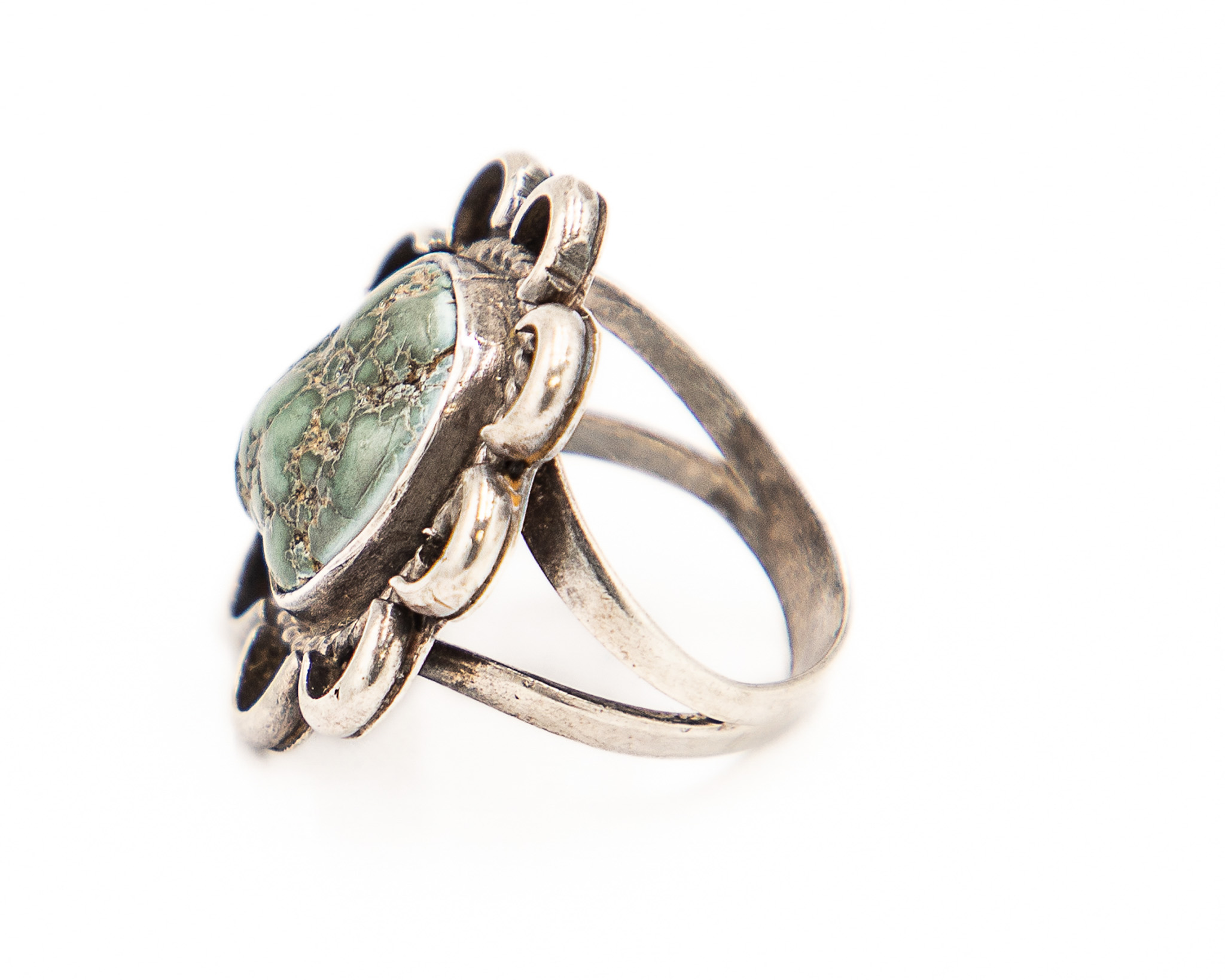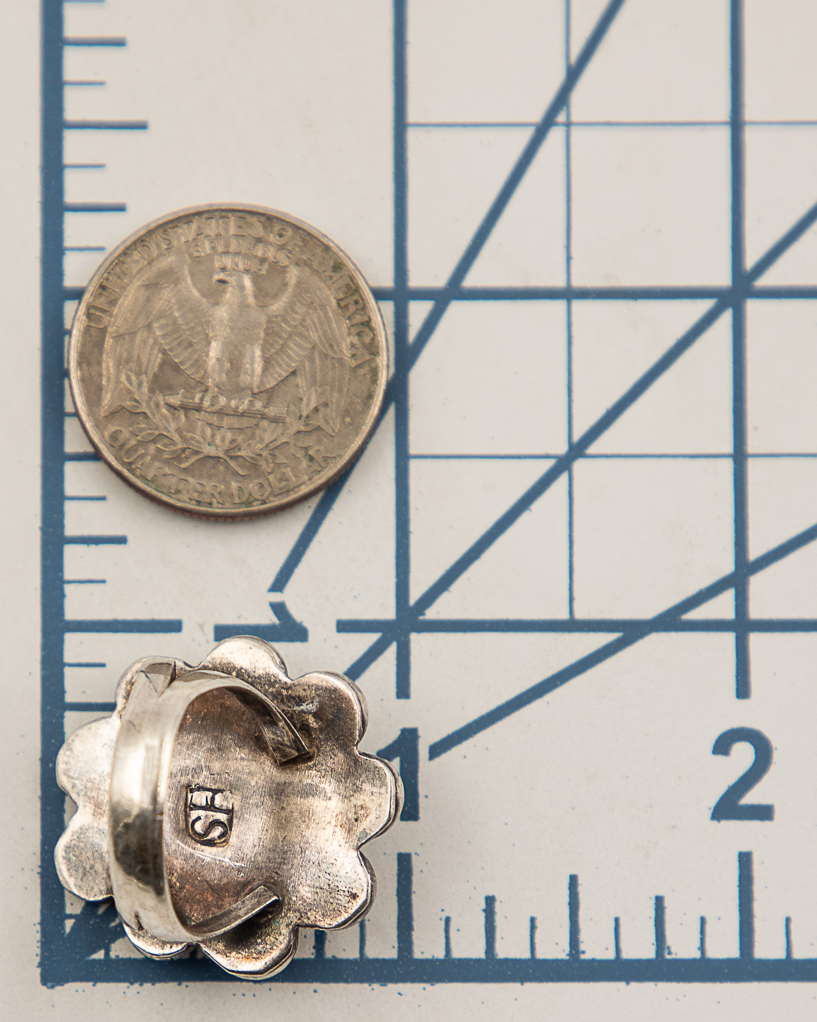 Signed HS/SH Navajo Sterling Turquoise Ring Sz. 7.5, 8g
