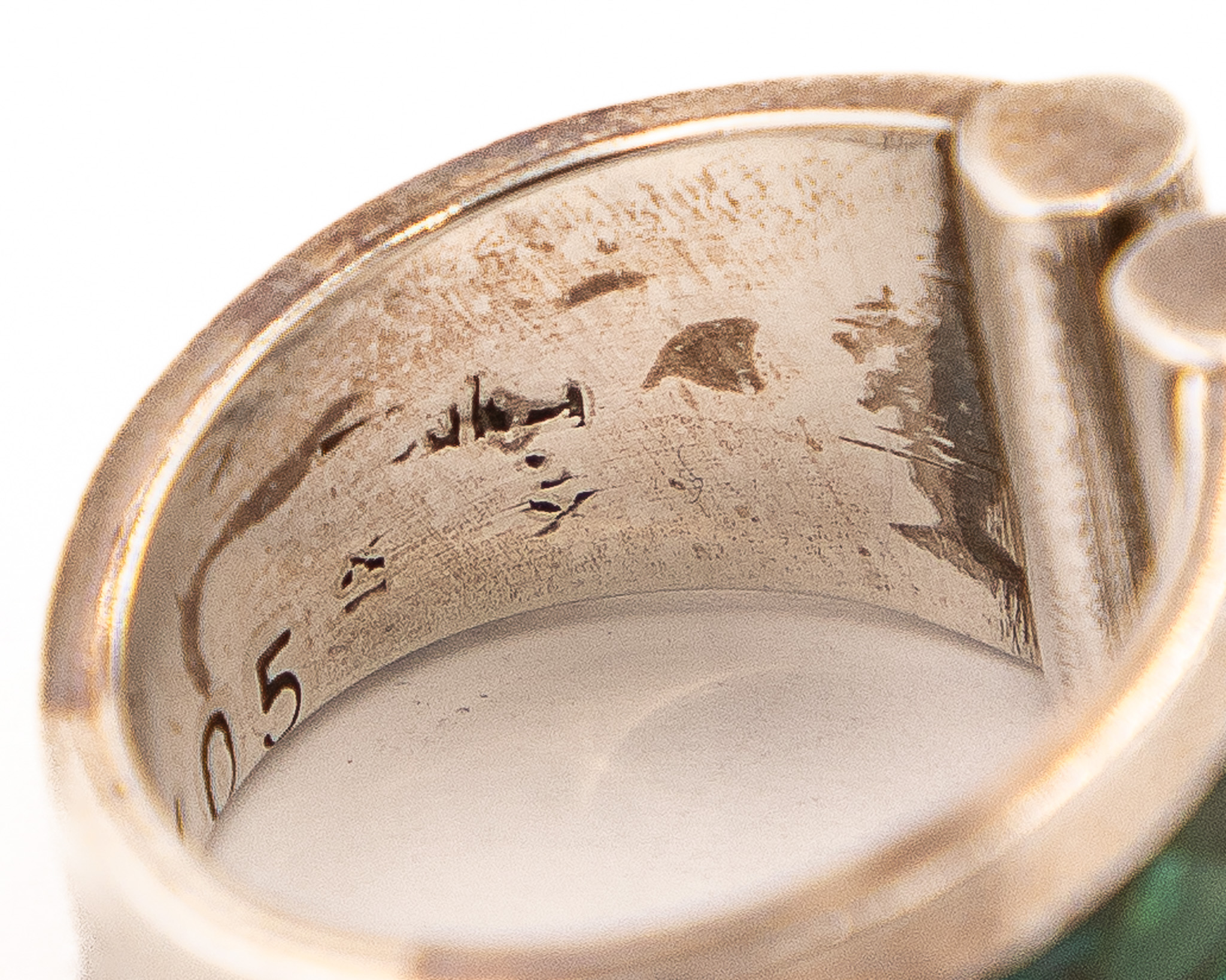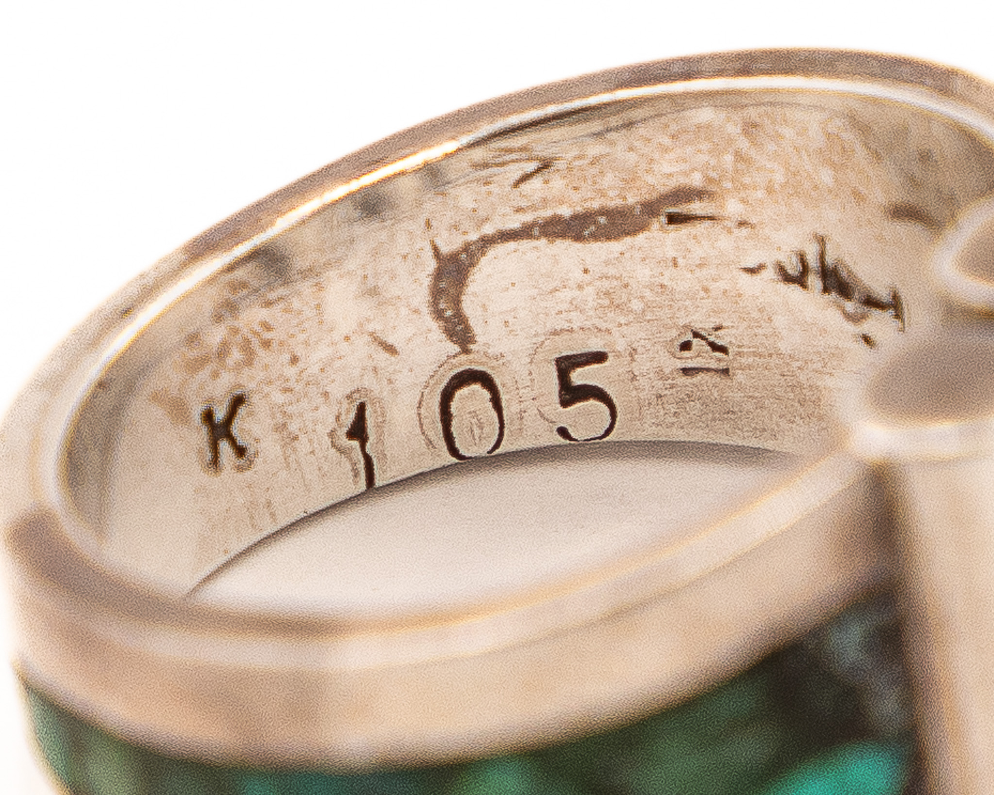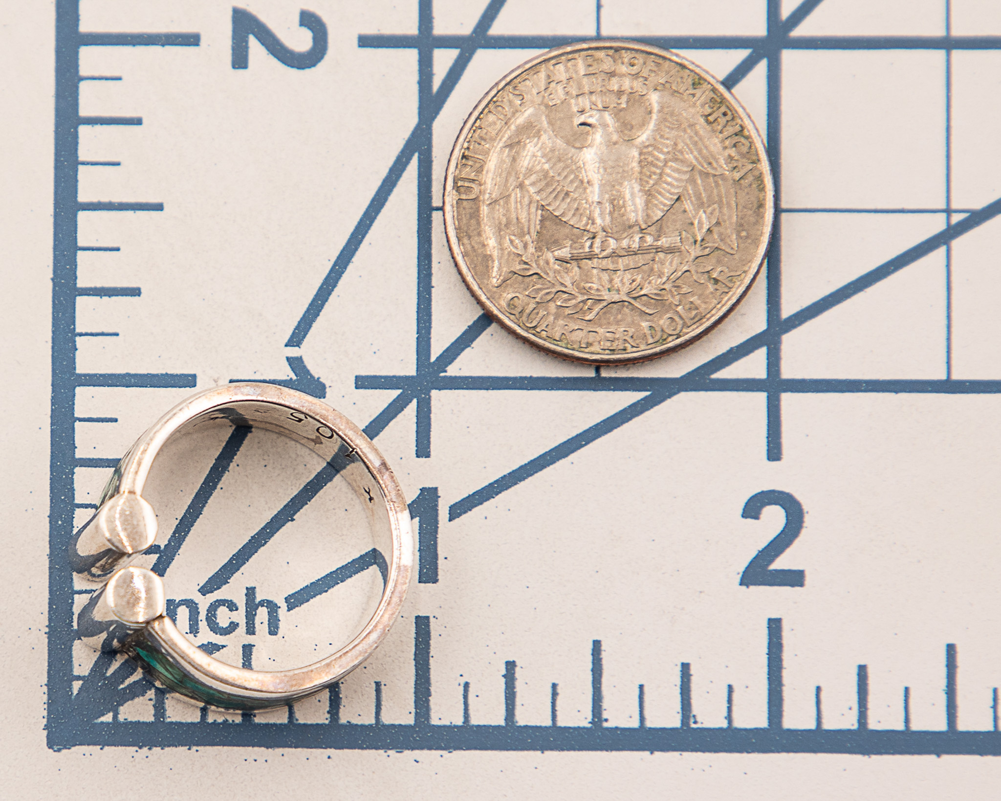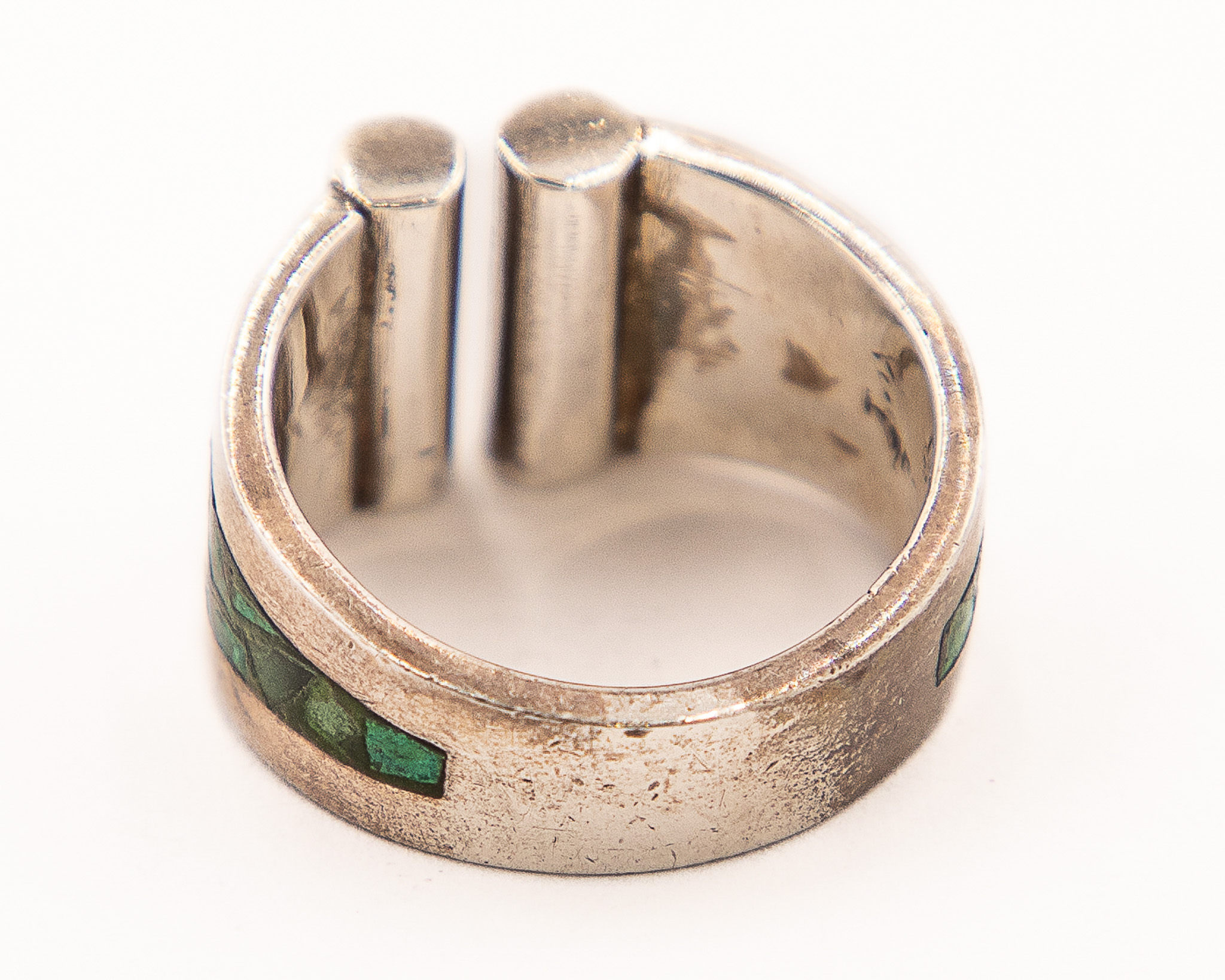 Signed K maybe Kathy Secataro Crushed Green Turquoise Sterling Ring As Is Sz. 9, 8.5g-105 stamped-Chips in stone As is