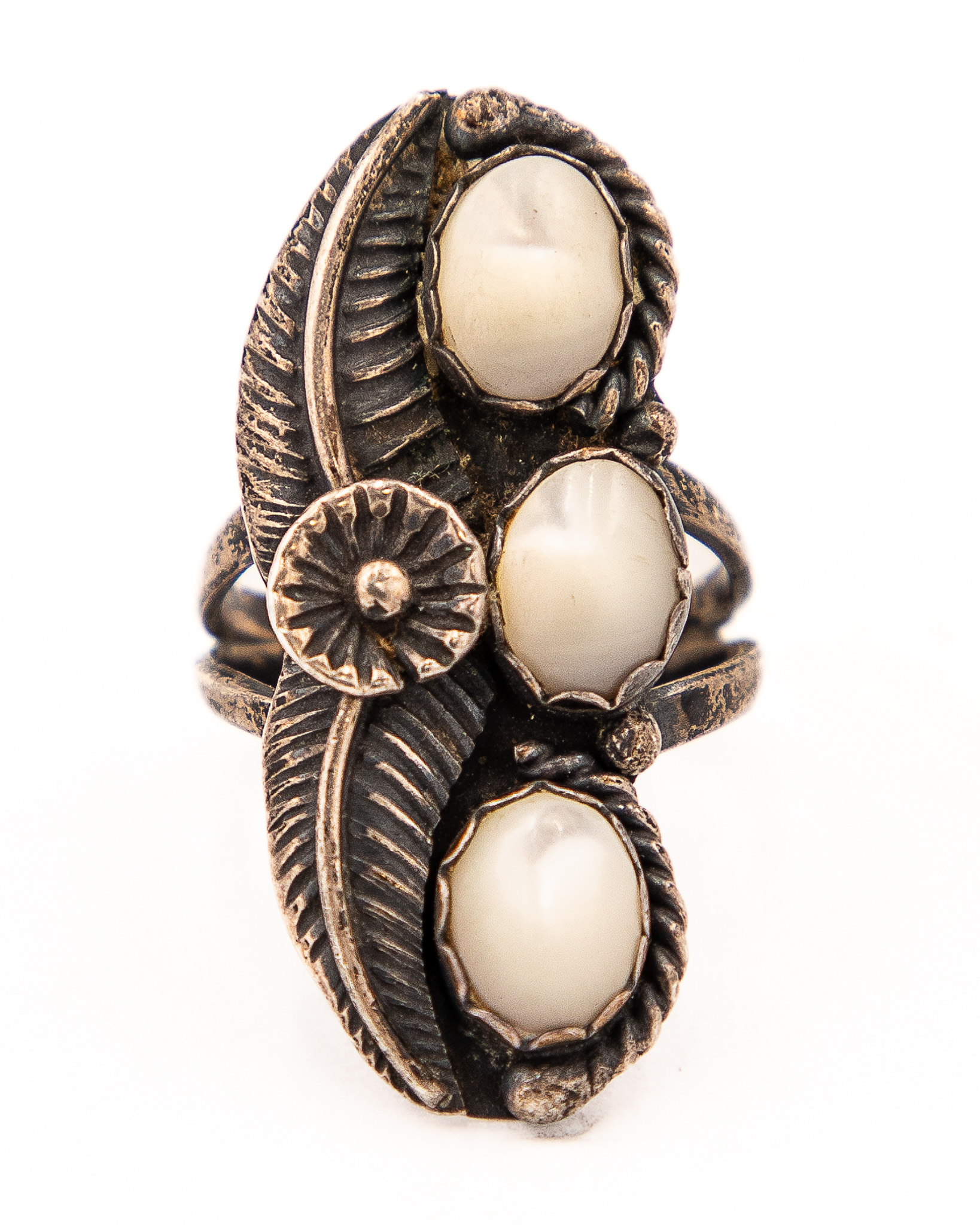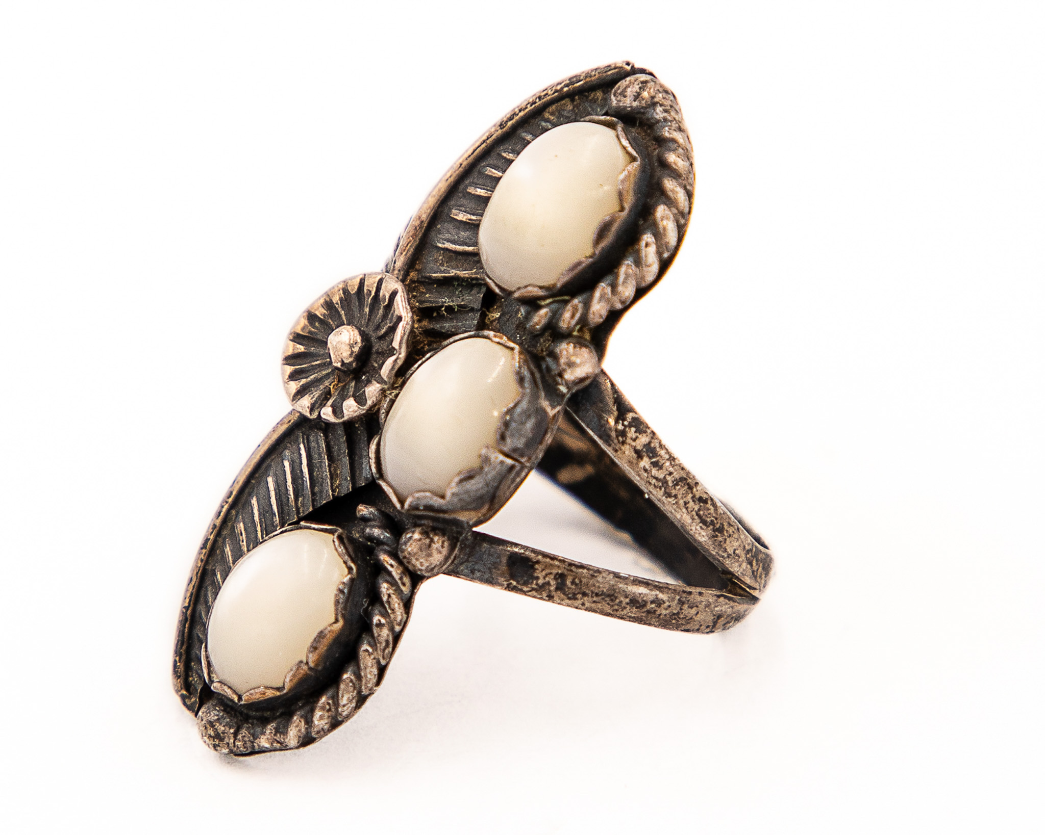 Signed RS Navajo IHMSS Mother Of Pearl Ring Sz. 6.5, 7g