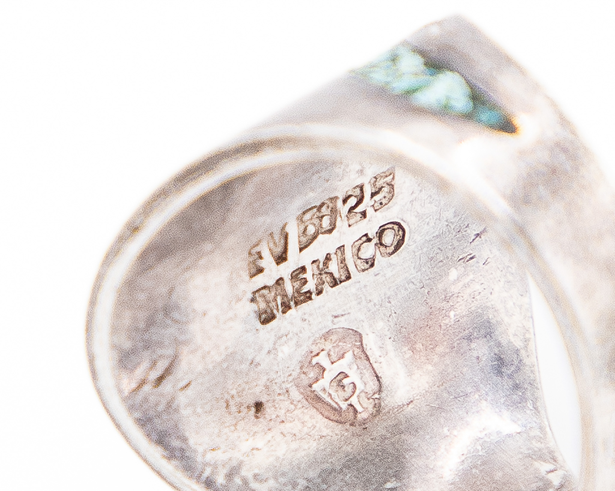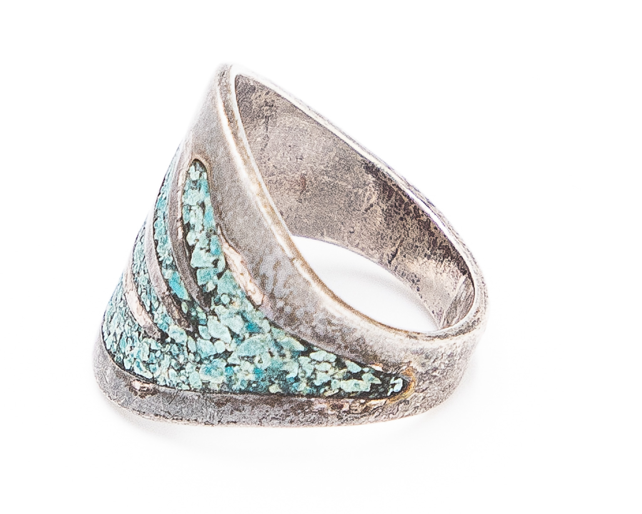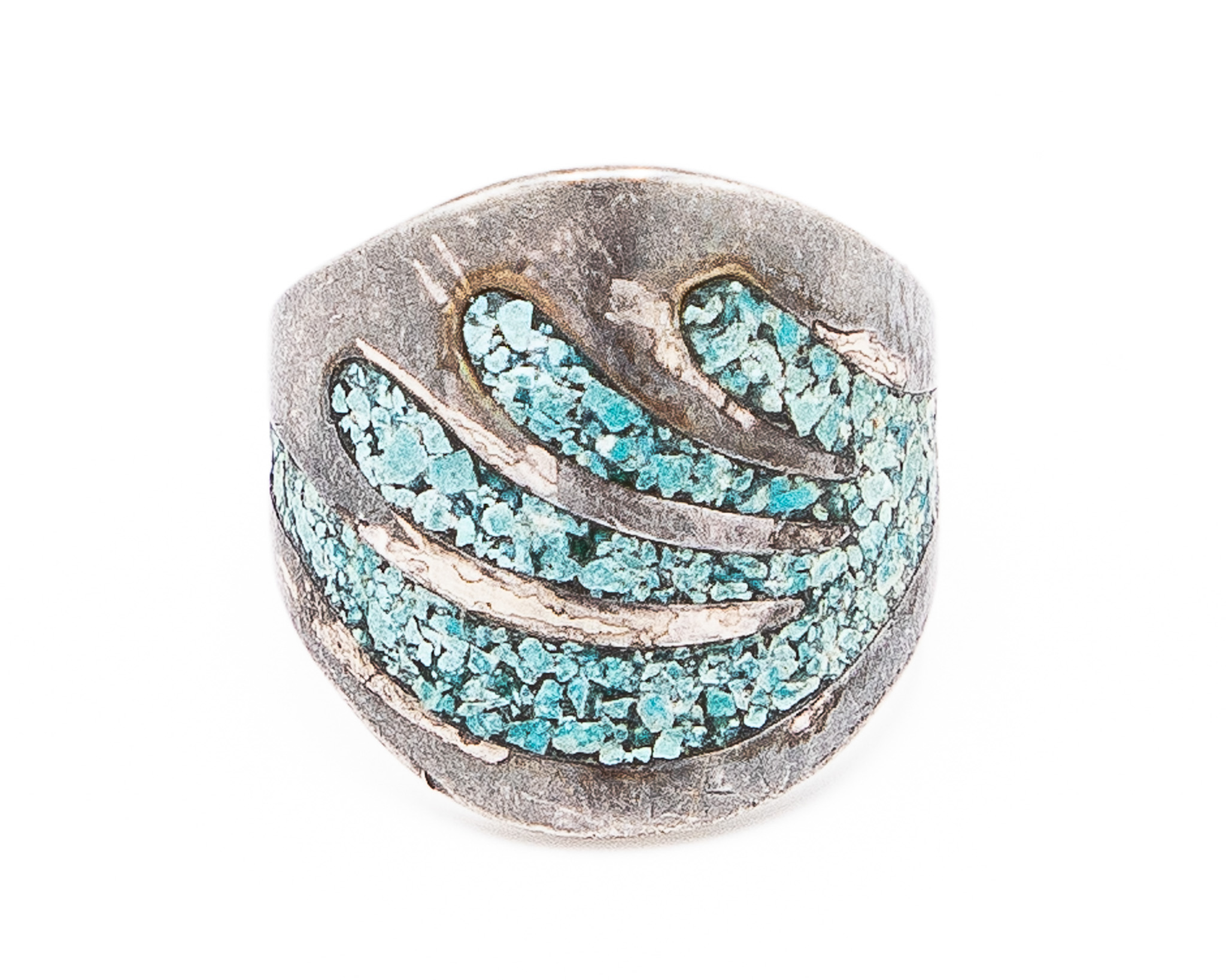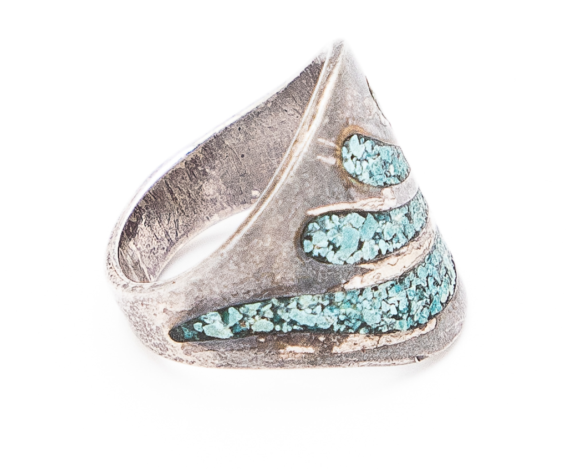 Ernest Vivnita Bewanika Eagle #3 Crushed Turquoise Sterling Ring Sz. 6.75, 6g