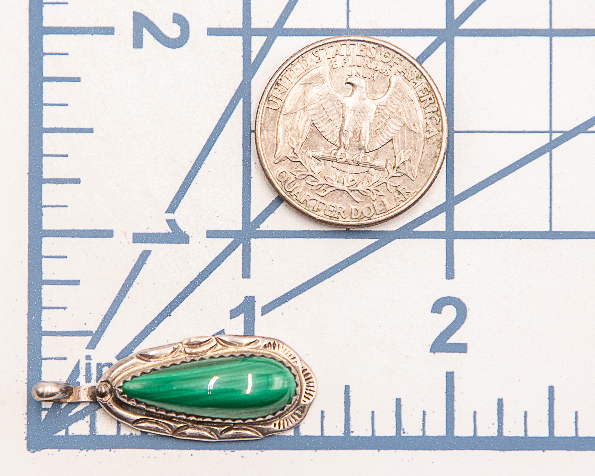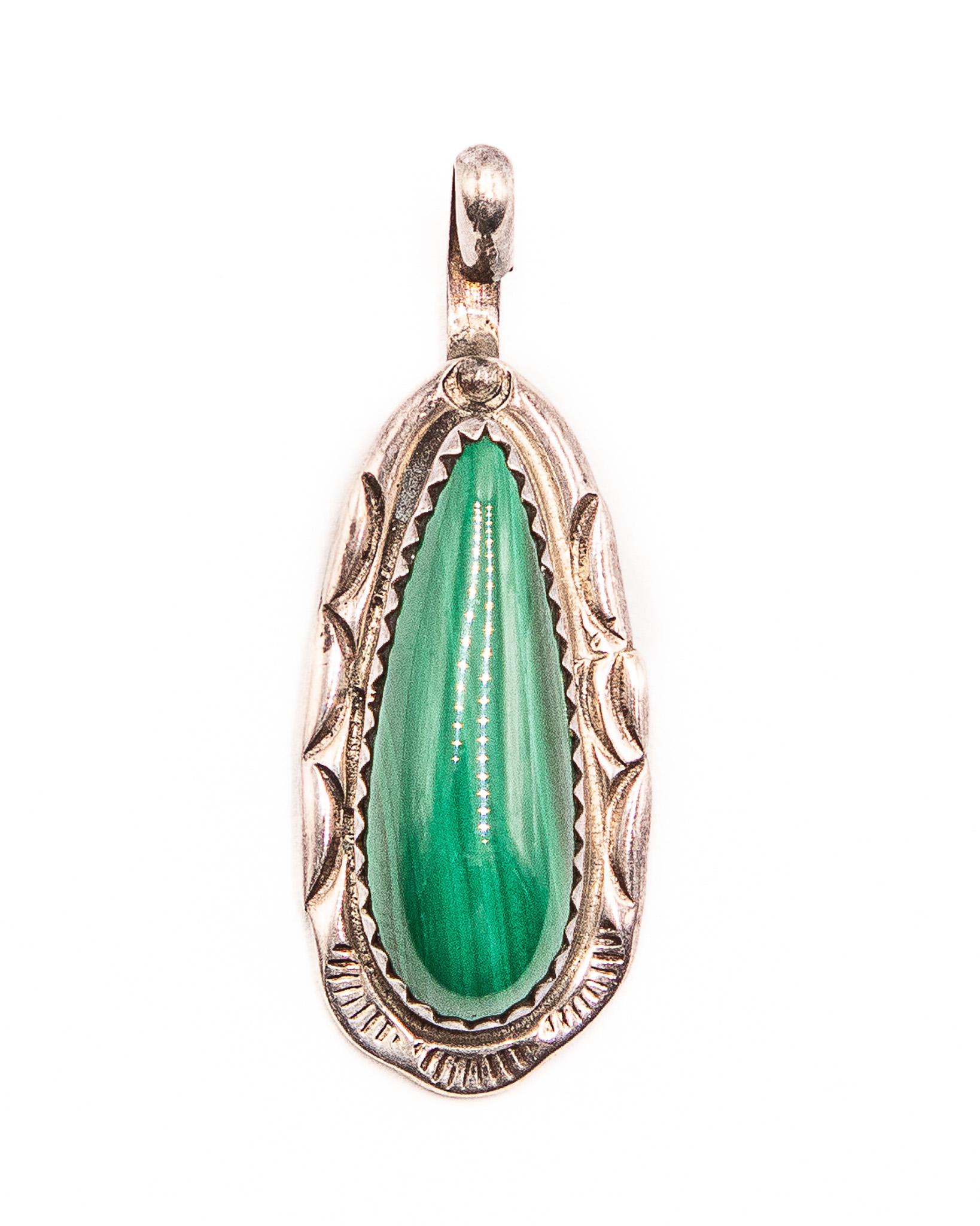 Signed TT Navajo Sterling Malachite Pendant 5g