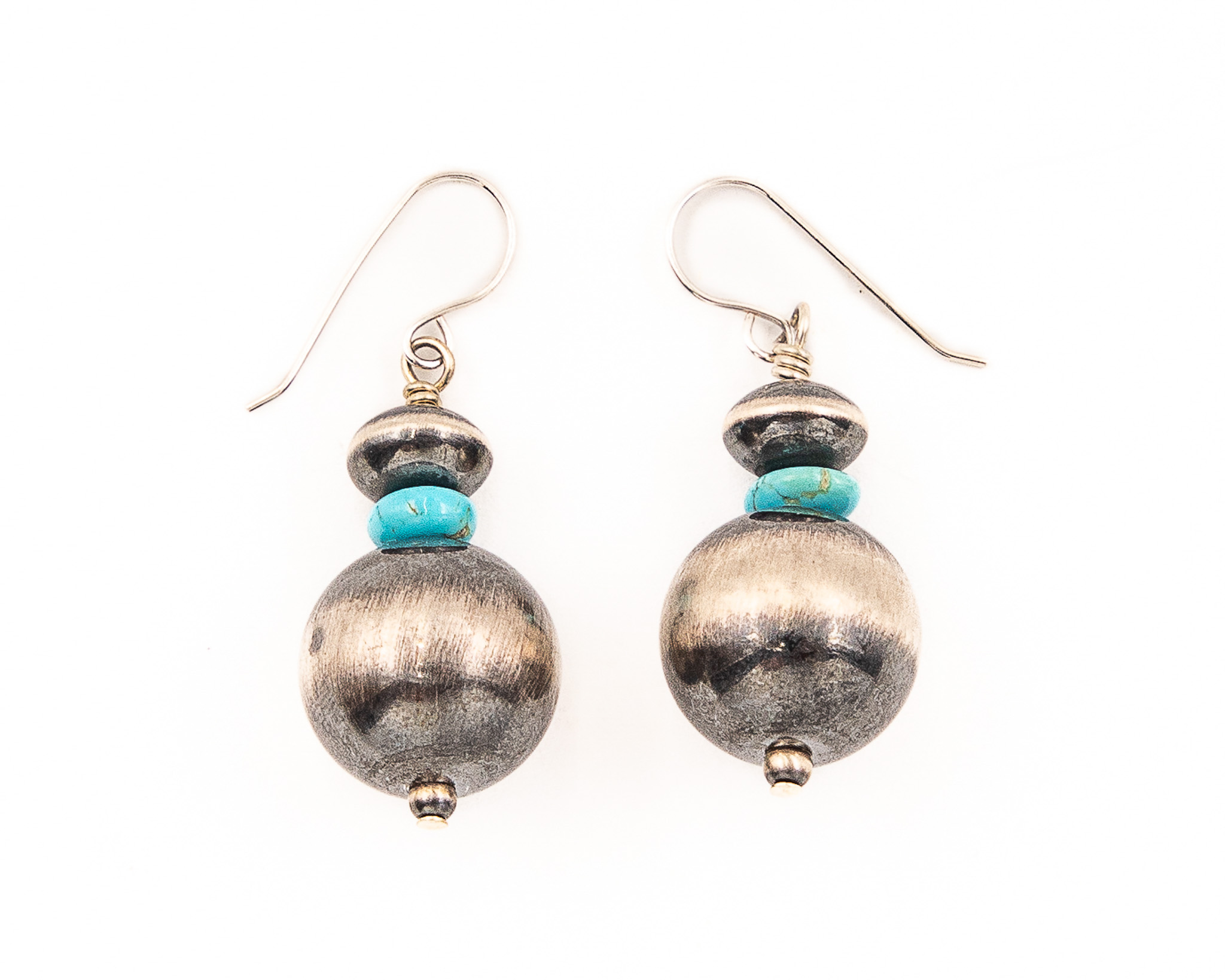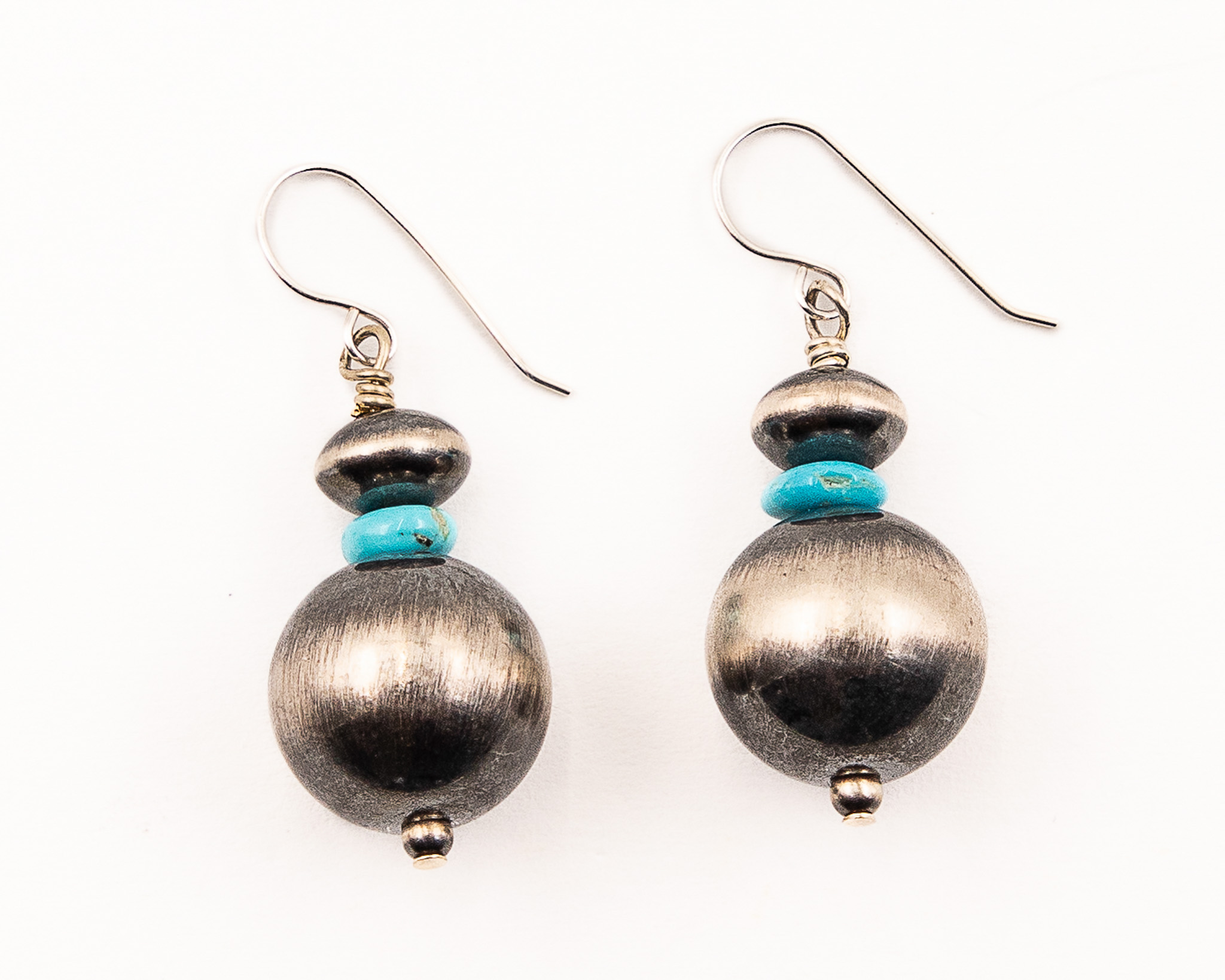 Navajo Sterling Bench Bead Turquoise Hook Earrings 9.5g